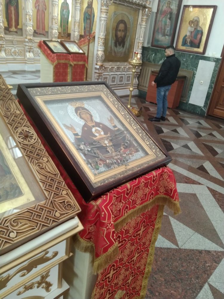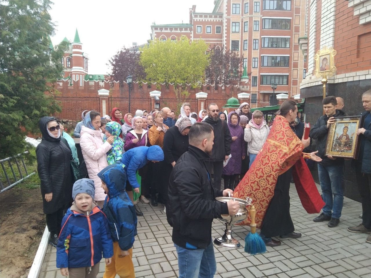 После Литургии был совершен водосвятный молебен с особыми прошениями о страждущих недугами винопития, наркомании, табакокурения и игромании. Верующие с иконой «Неупиваемая Чаша» прошли крестным ходом вокруг храма, затем пропели тропарь и вознесли молитву Пречистой Богоматери перед Ее празднуемым образом.