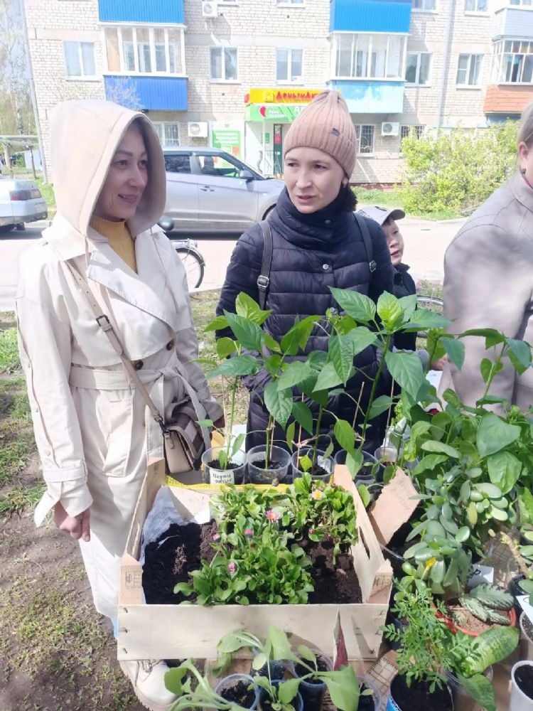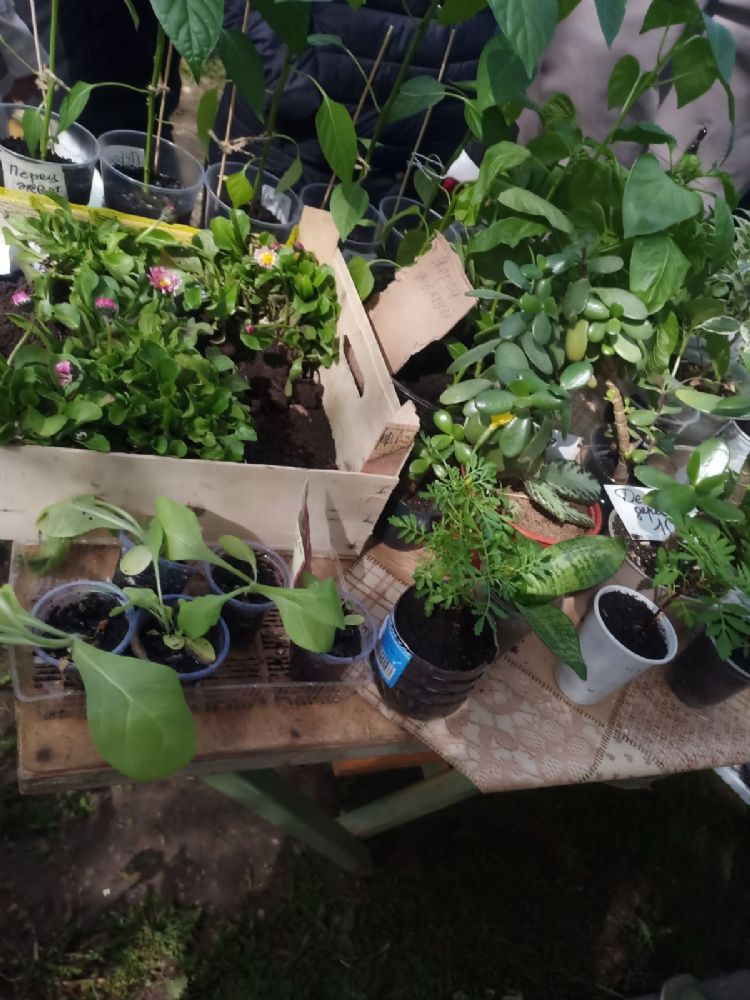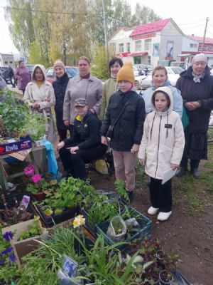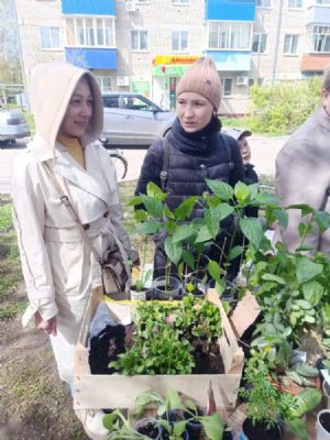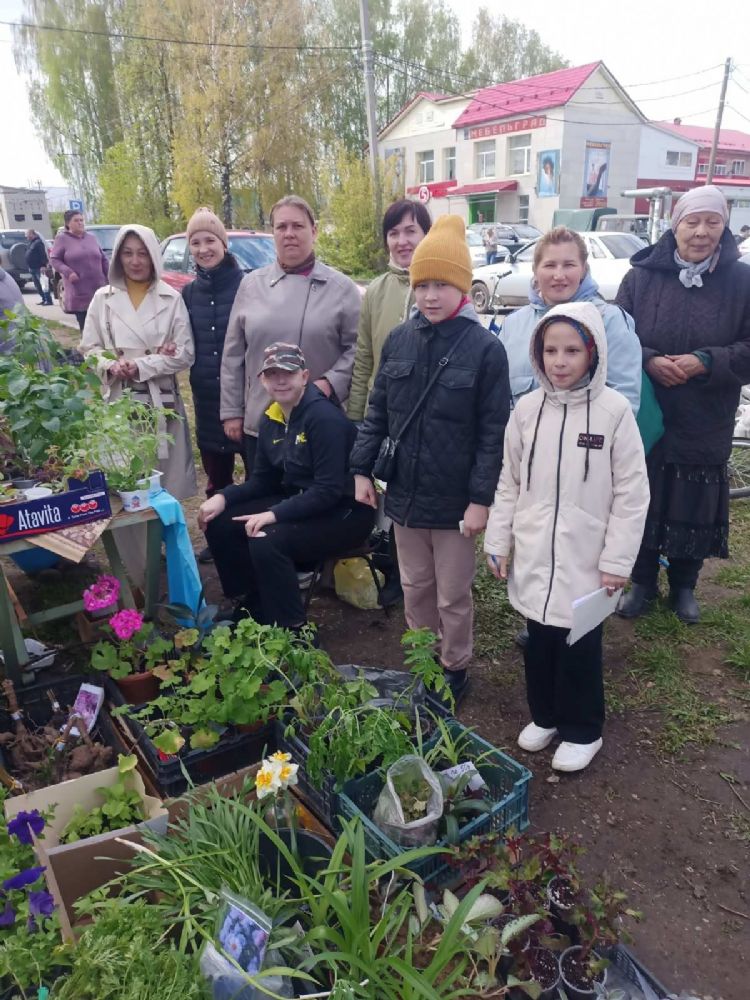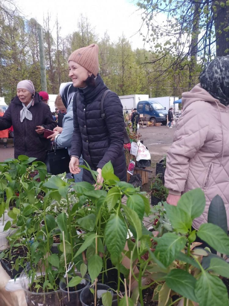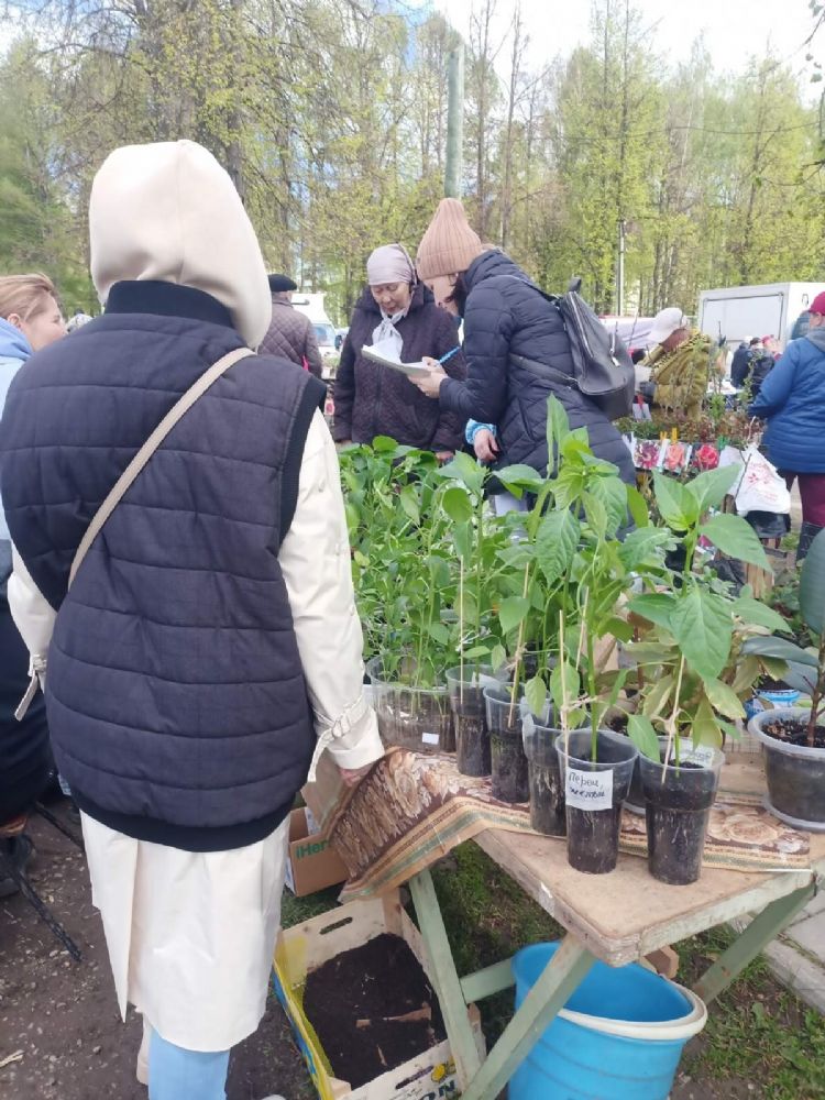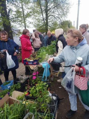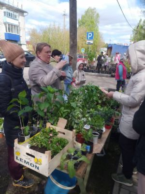 На ярмарке, расположившейся на рынке поселка, была представлена в большом ассортименте рассада различных цветов, овощей, многолетников, выращенная воспитанниками воскресной школы и их родителями. Многие семьи приняли участие в этом мероприятии. Семья Якаевых принесла большой стол, где продавцы удобно разложили товар и фотографии цветов, представленных пока в виде рассады, клубней, корневищ. Также глава семьи Александр Якаев на своей машине помог доставить на рынок растения тем, кто не имеет собственного автомобиля.