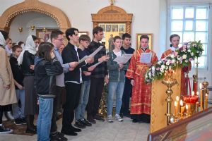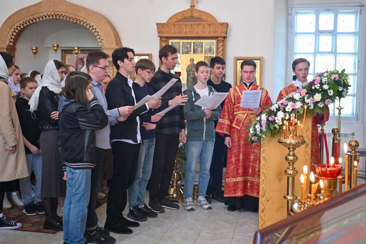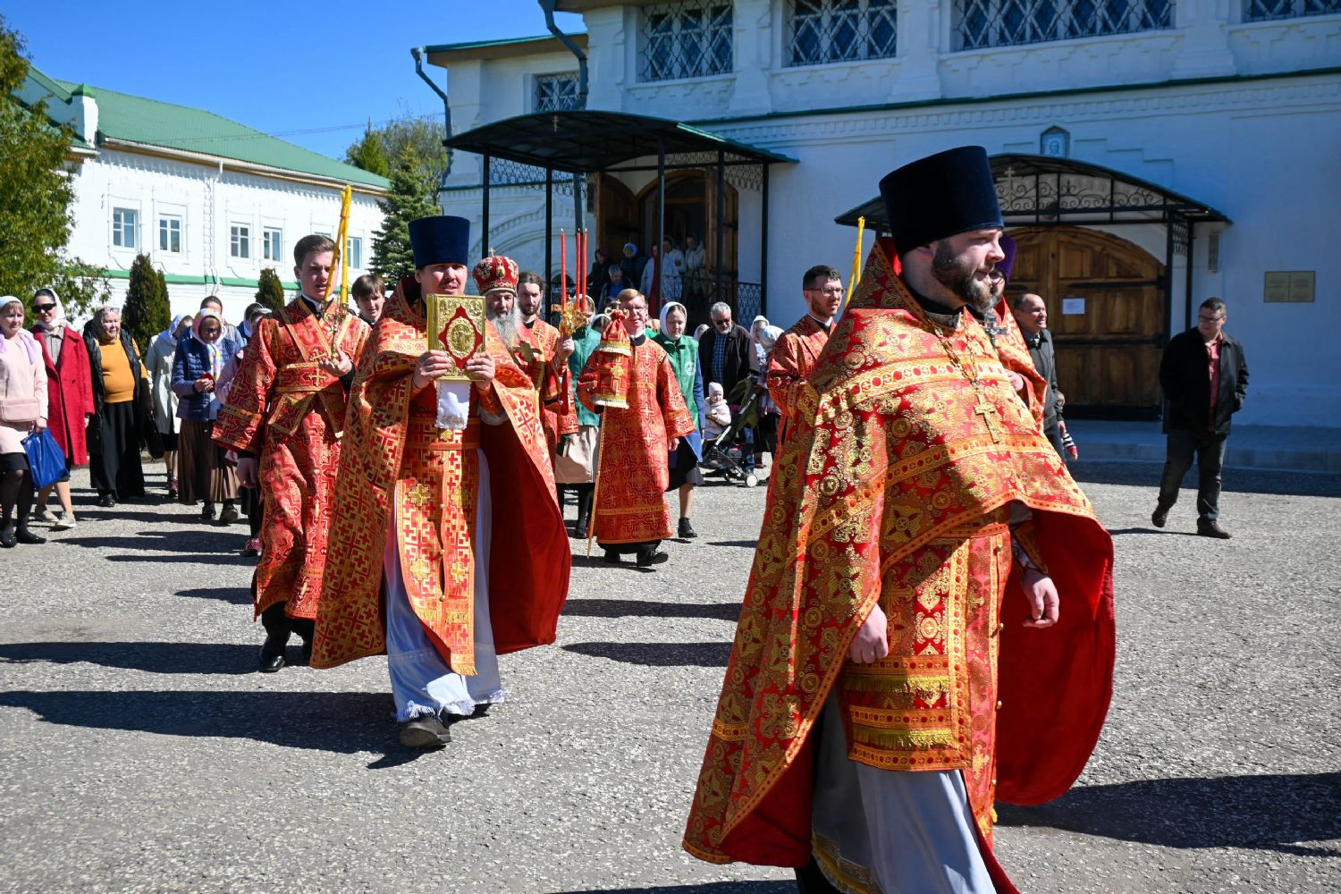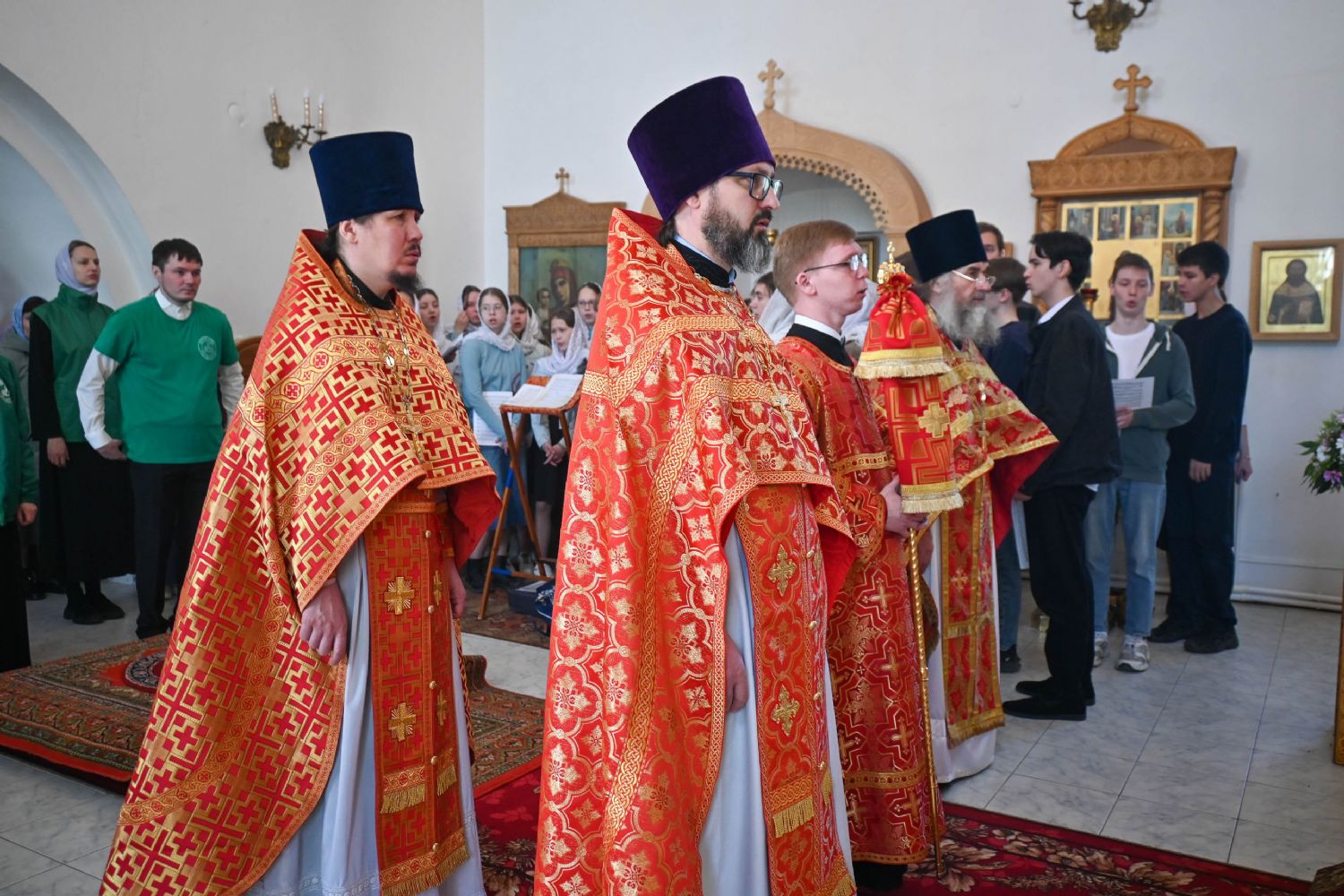 Владыке сослужили секретарь Йошкар-Олинского епархиального управления иерей Димитрий Дьяков, клирик монастыря иерей Михаил Лежнин и клирики храмов г. Йошкар-Олы. Песнопения исполнял детско-юношеский хор «Благовест» под управлением регента Татьяны Черновой.