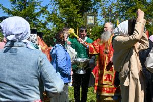 После Литургии верующие прошли крестным ходом до часовни с источником, где был совершен чин малого освящения воды. Затем владыка обратился к собравшимся с архипастырским словом, поздравив всех с праздником и подчеркнув, что святые жены-мироносицы показали пример, как сердце наше должно любить Господа, чтобы ничто не могло нас разлучить от любви к Сладчайшему Спасителю. Они сподобились великой милости Господней – первыми узреть Воскресшего Христа.