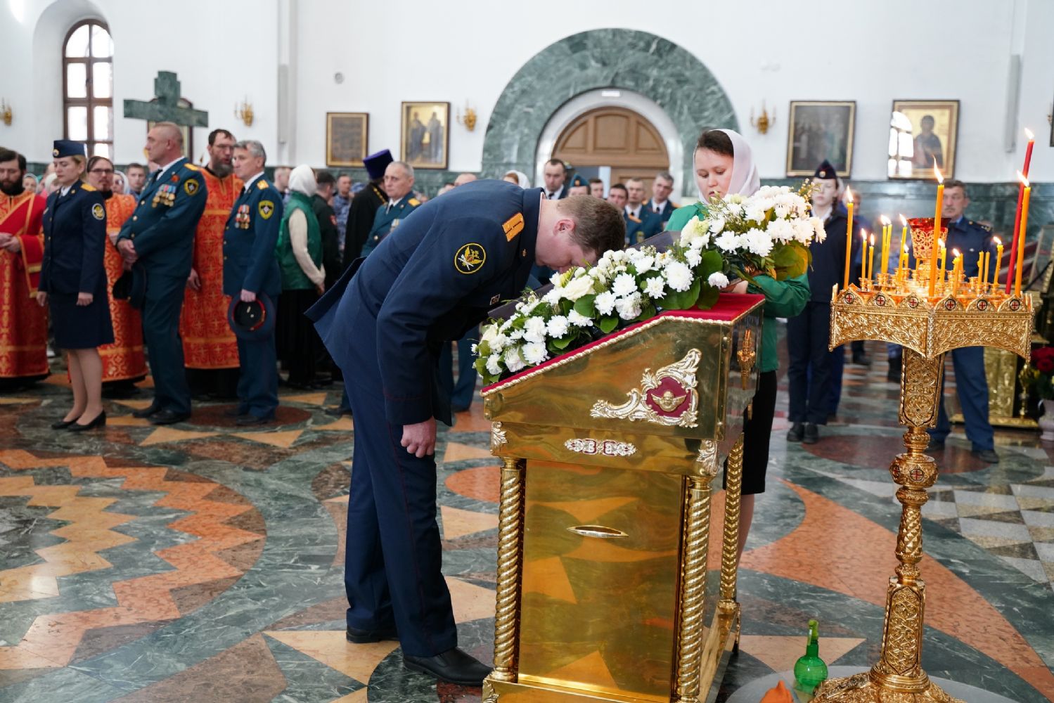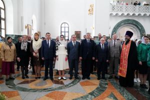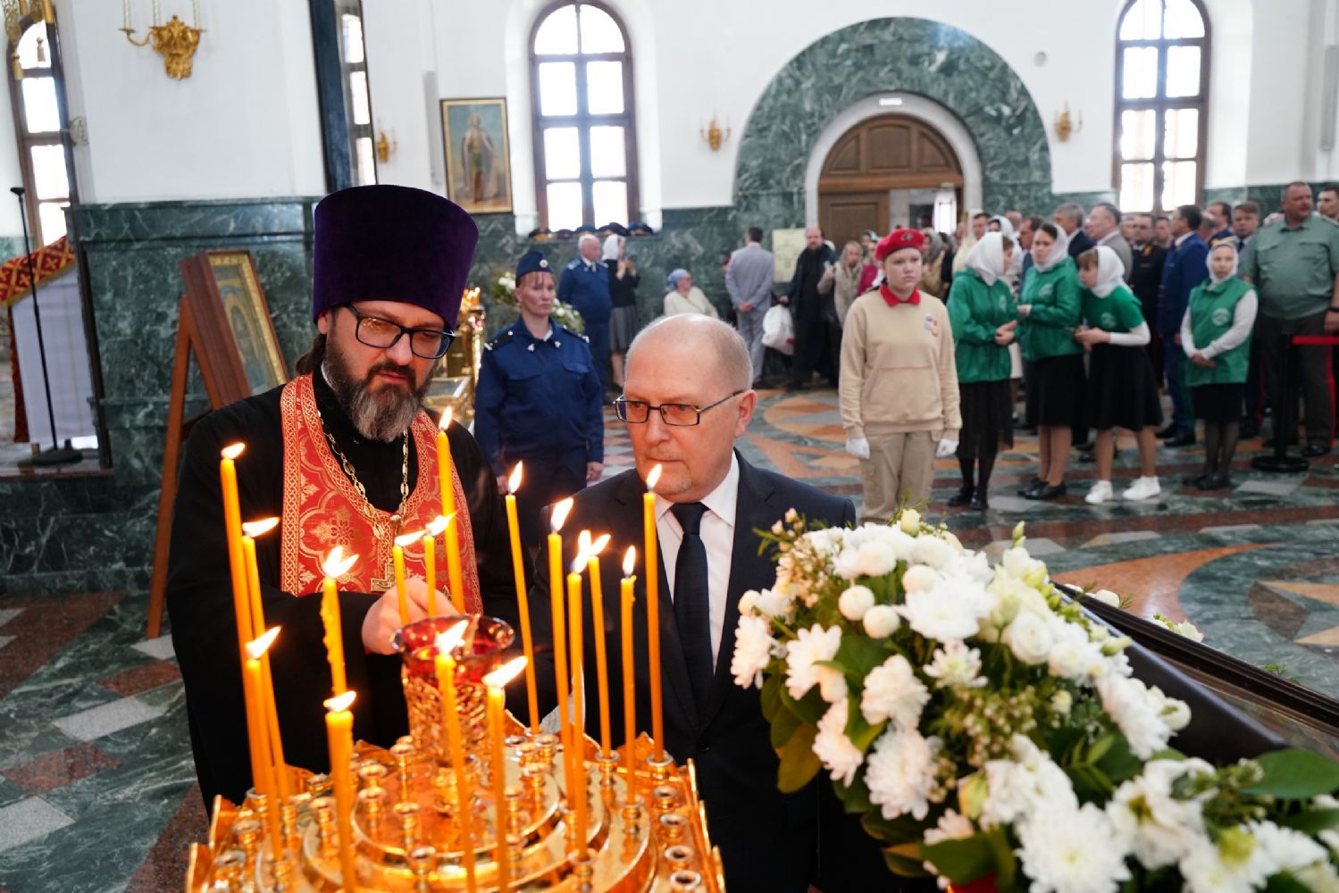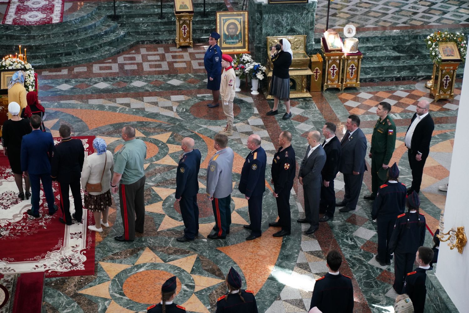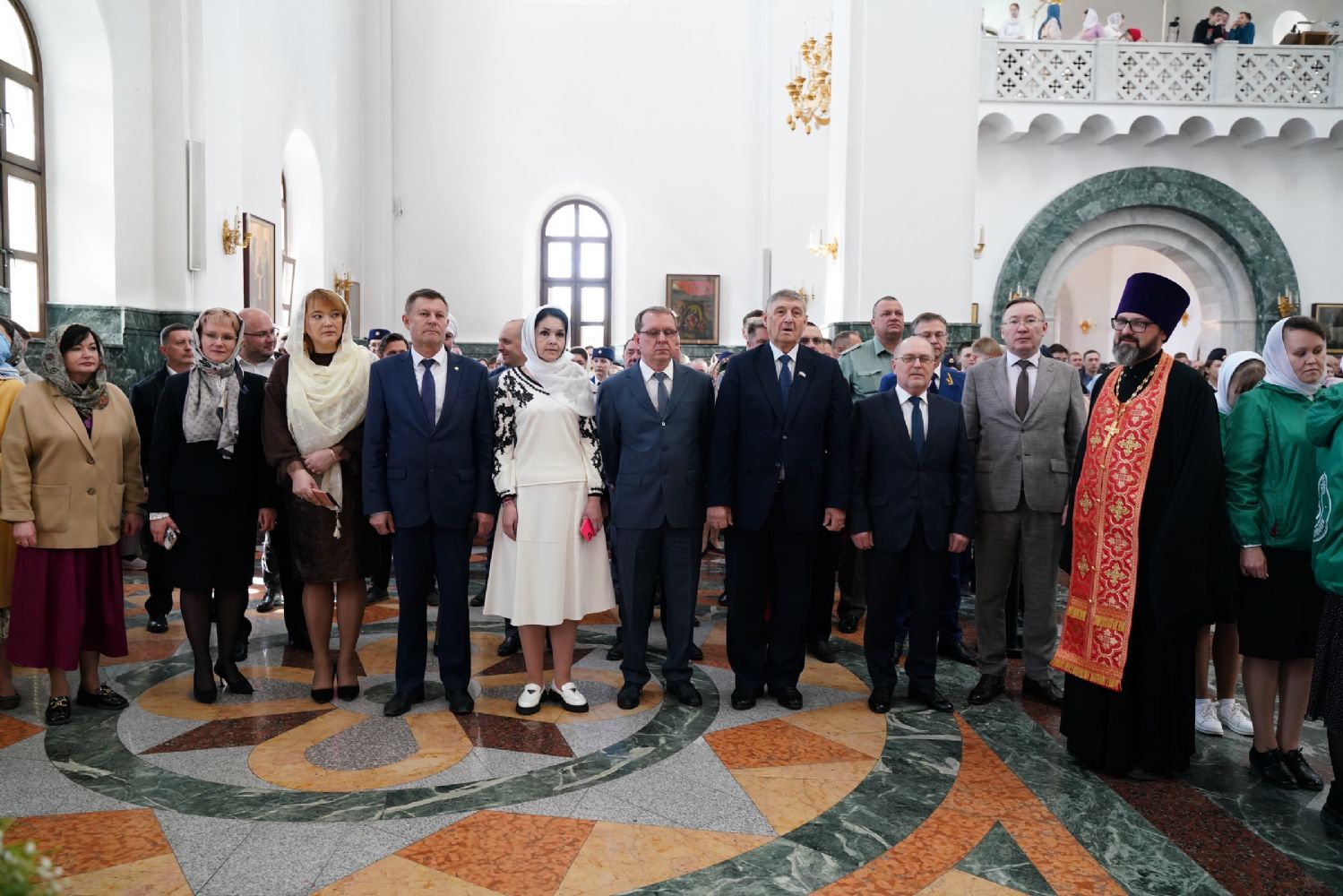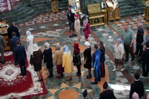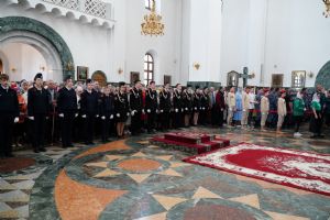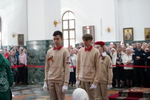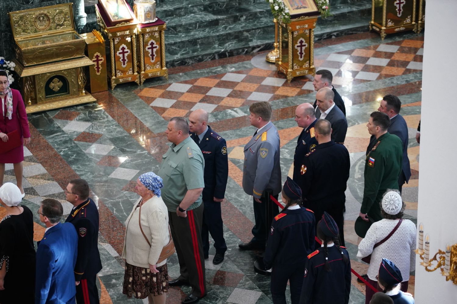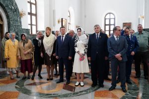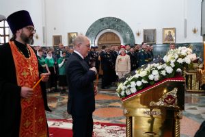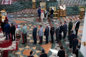 За богослужением молились Первый заместитель Председателя Правительства Республики Марий Эл Михаил Васютин, Председатель Госсобрания РМЭ Анатолий Смирнов, члены Правительства республики и администрации Йошкар-Олы, руководители министерств и ведомств, представители воинских частей и силовых структур, юнармейцы и кадеты.