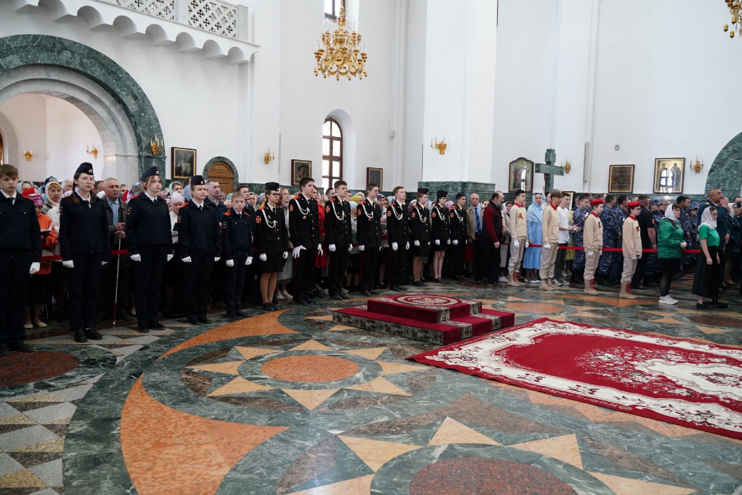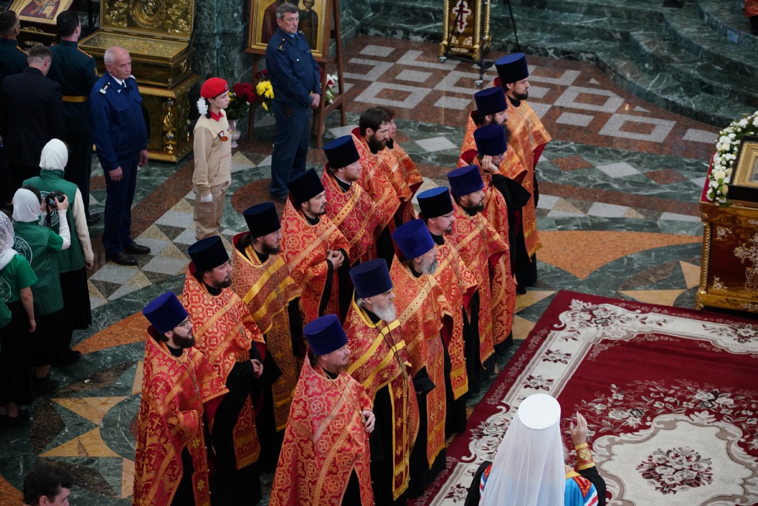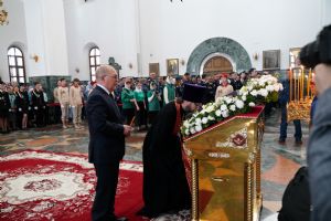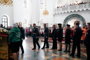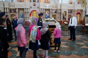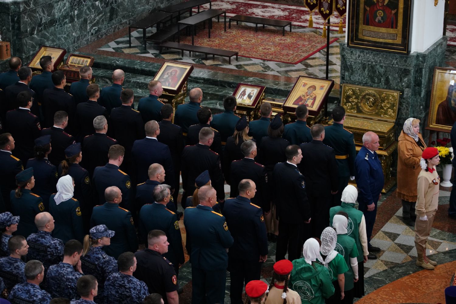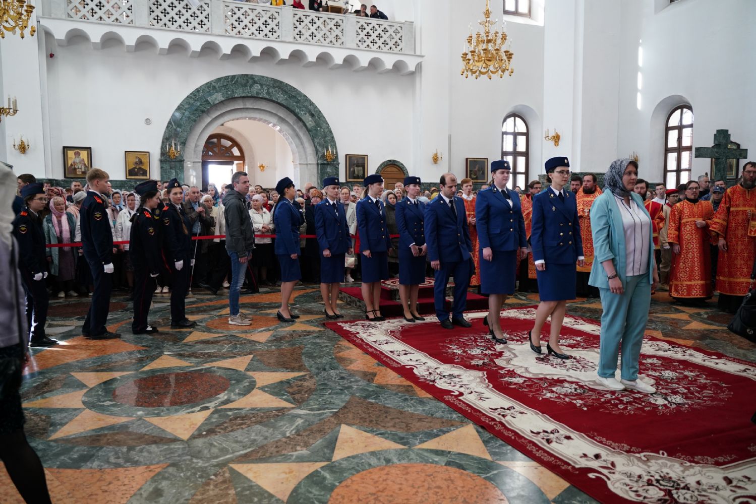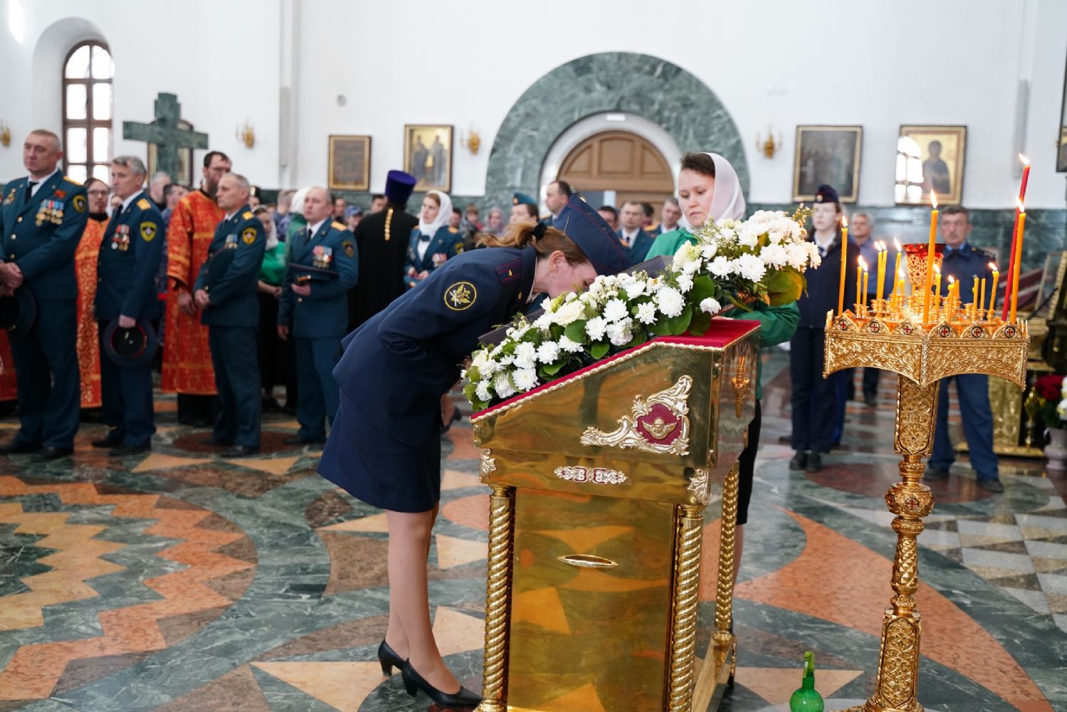 За богослужением молились Первый заместитель Председателя Правительства Республики Марий Эл Михаил Васютин, Председатель Госсобрания РМЭ Анатолий Смирнов, члены Правительства республики и администрации Йошкар-Олы, руководители министерств и ведомств, представители воинских частей и силовых структур, юнармейцы и кадеты.