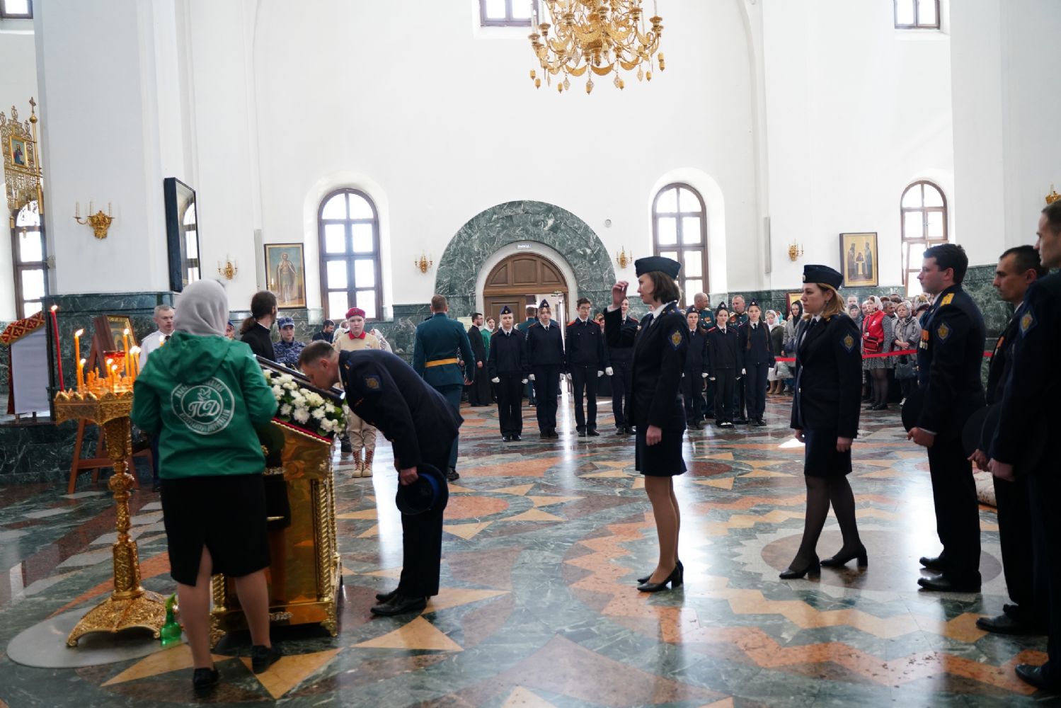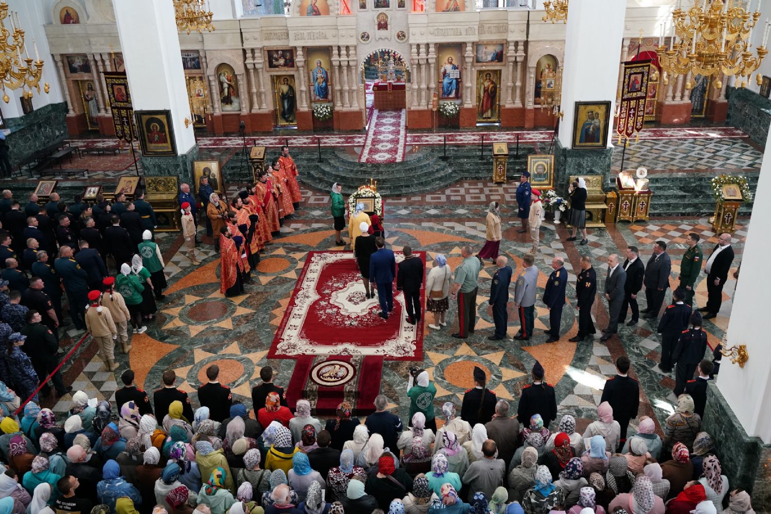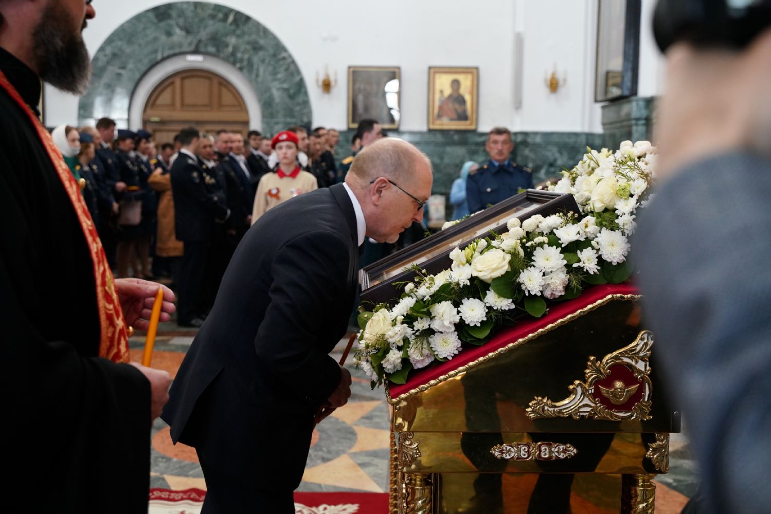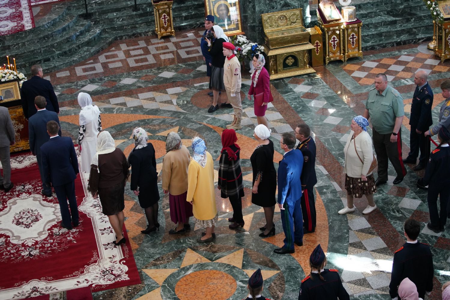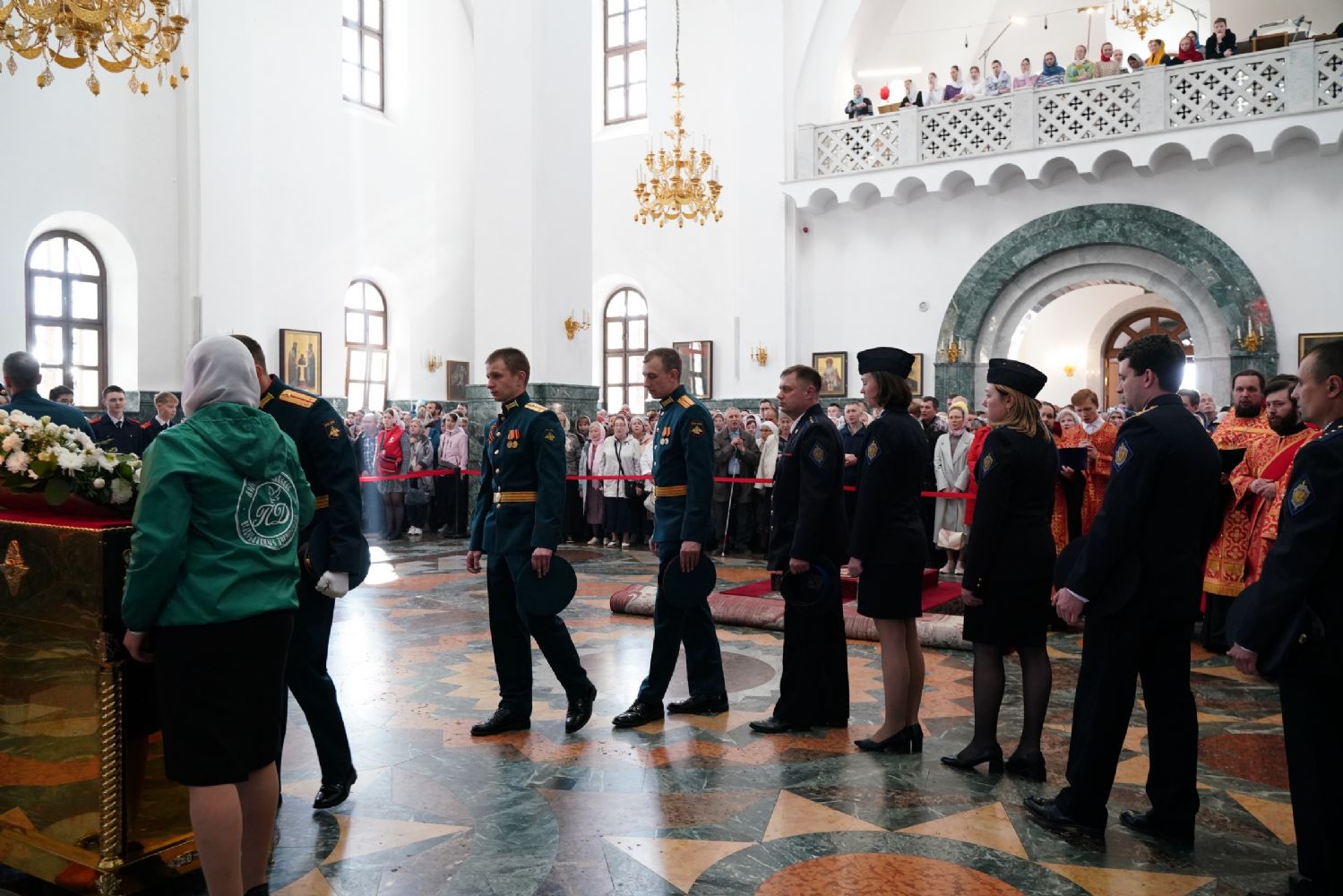 За богослужением молились Первый заместитель Председателя Правительства Республики Марий Эл Михаил Васютин, Председатель Госсобрания РМЭ Анатолий Смирнов, члены Правительства республики и администрации Йошкар-Олы, руководители министерств и ведомств, представители воинских частей и силовых структур, юнармейцы и кадеты.