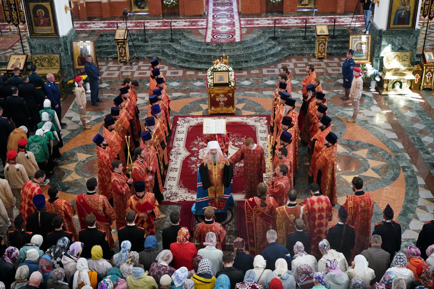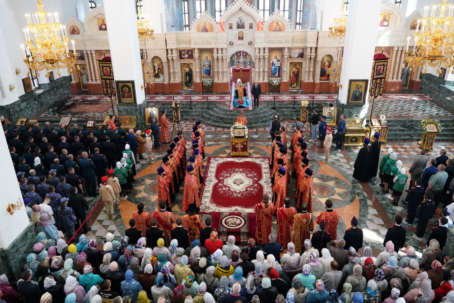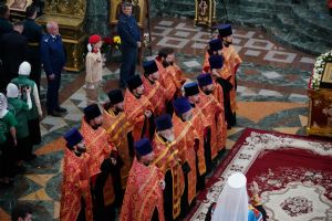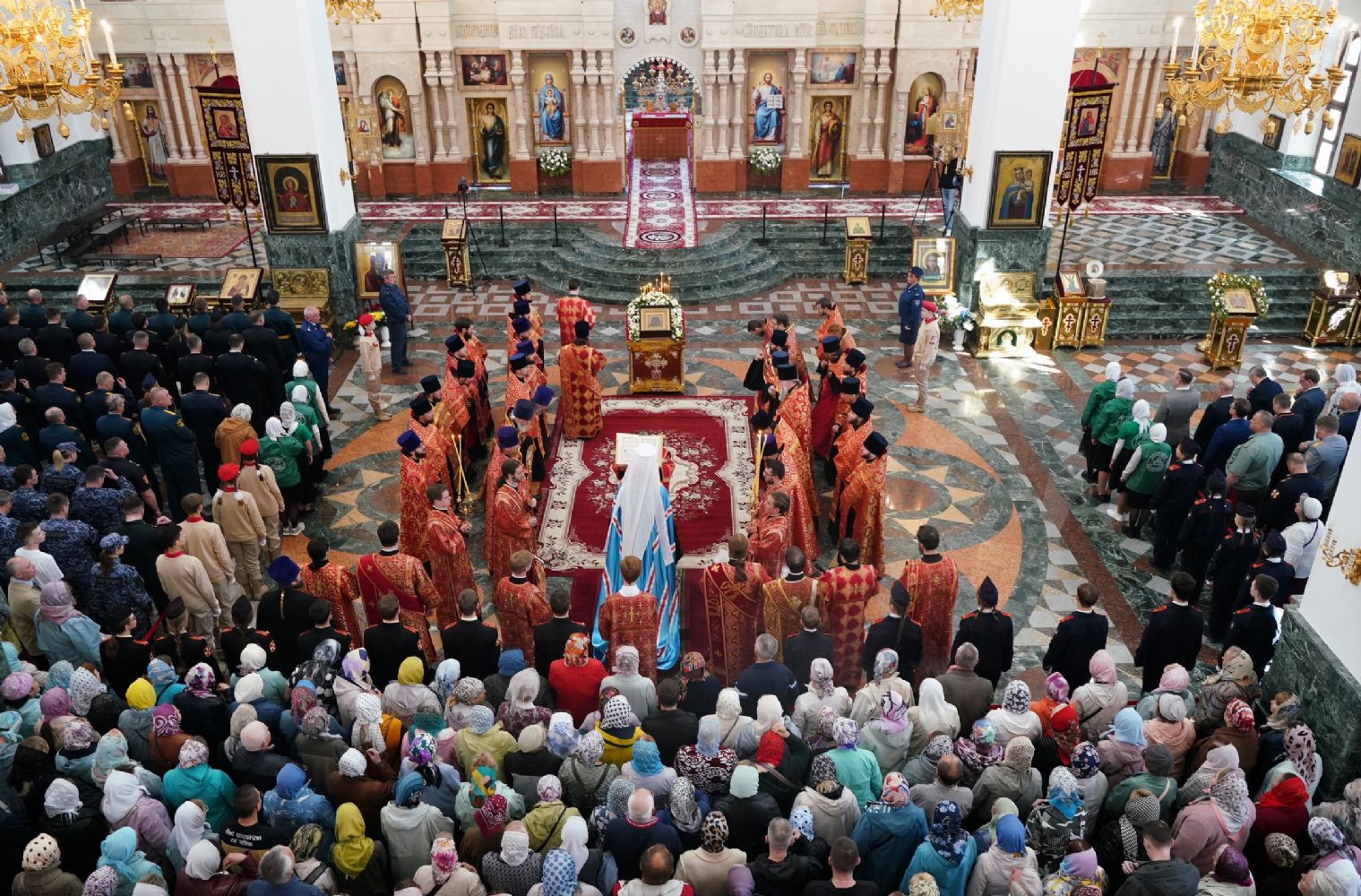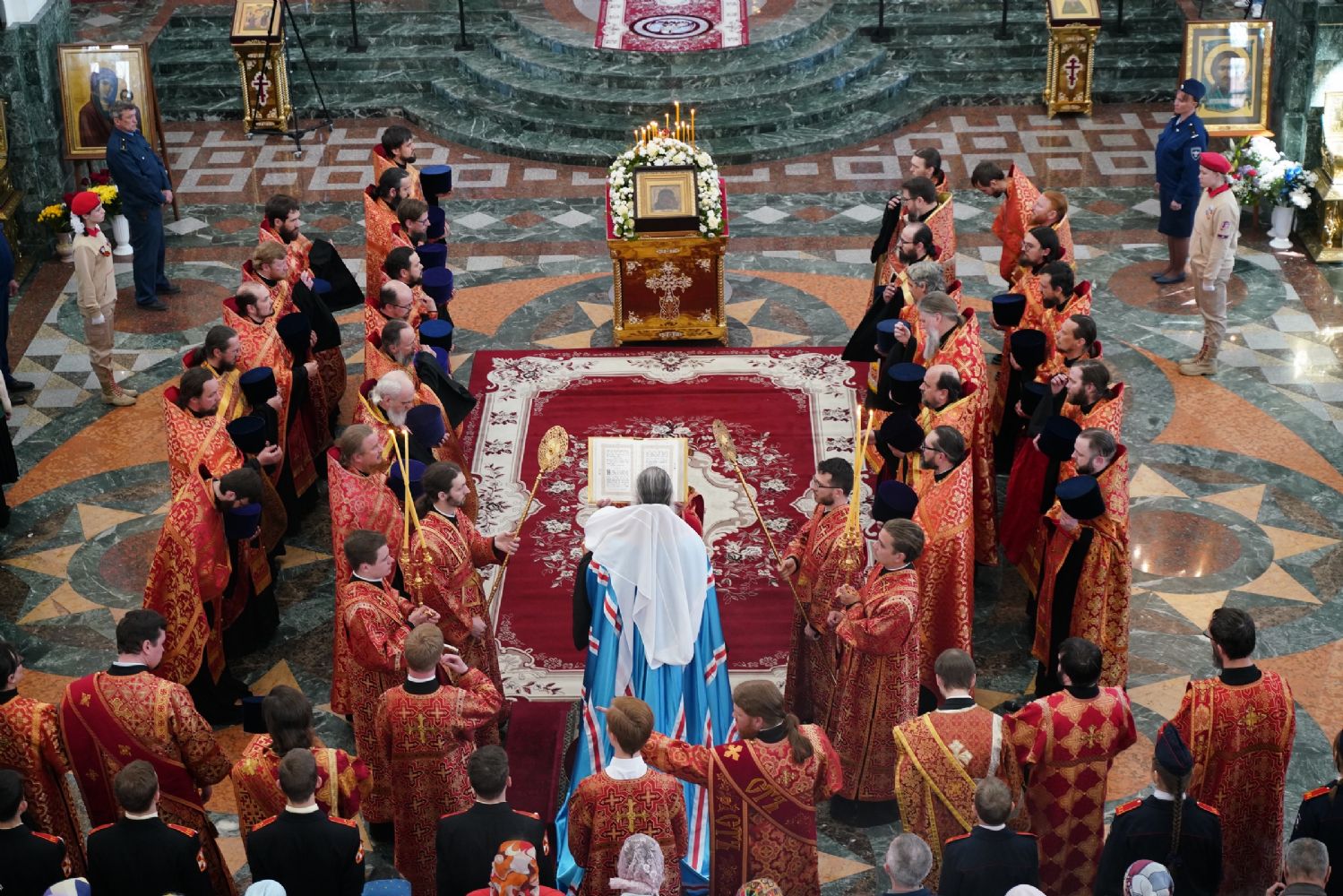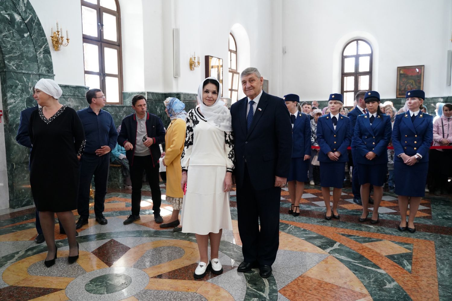 За богослужением молились Первый заместитель Председателя Правительства Республики Марий Эл Михаил Васютин, Председатель Госсобрания РМЭ Анатолий Смирнов, члены Правительства республики и администрации Йошкар-Олы, руководители министерств и ведомств, представители воинских частей и силовых структур, юнармейцы и кадеты.