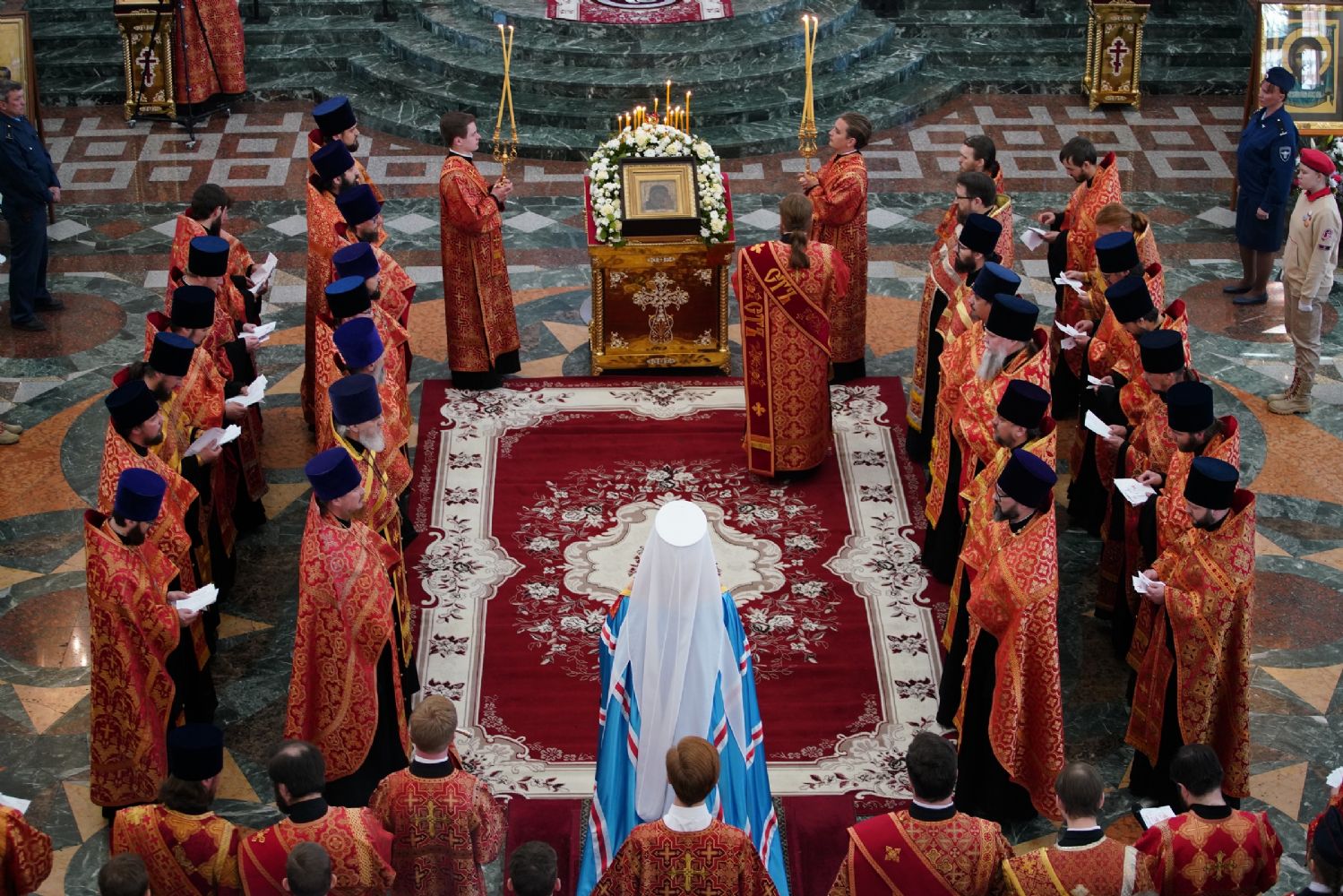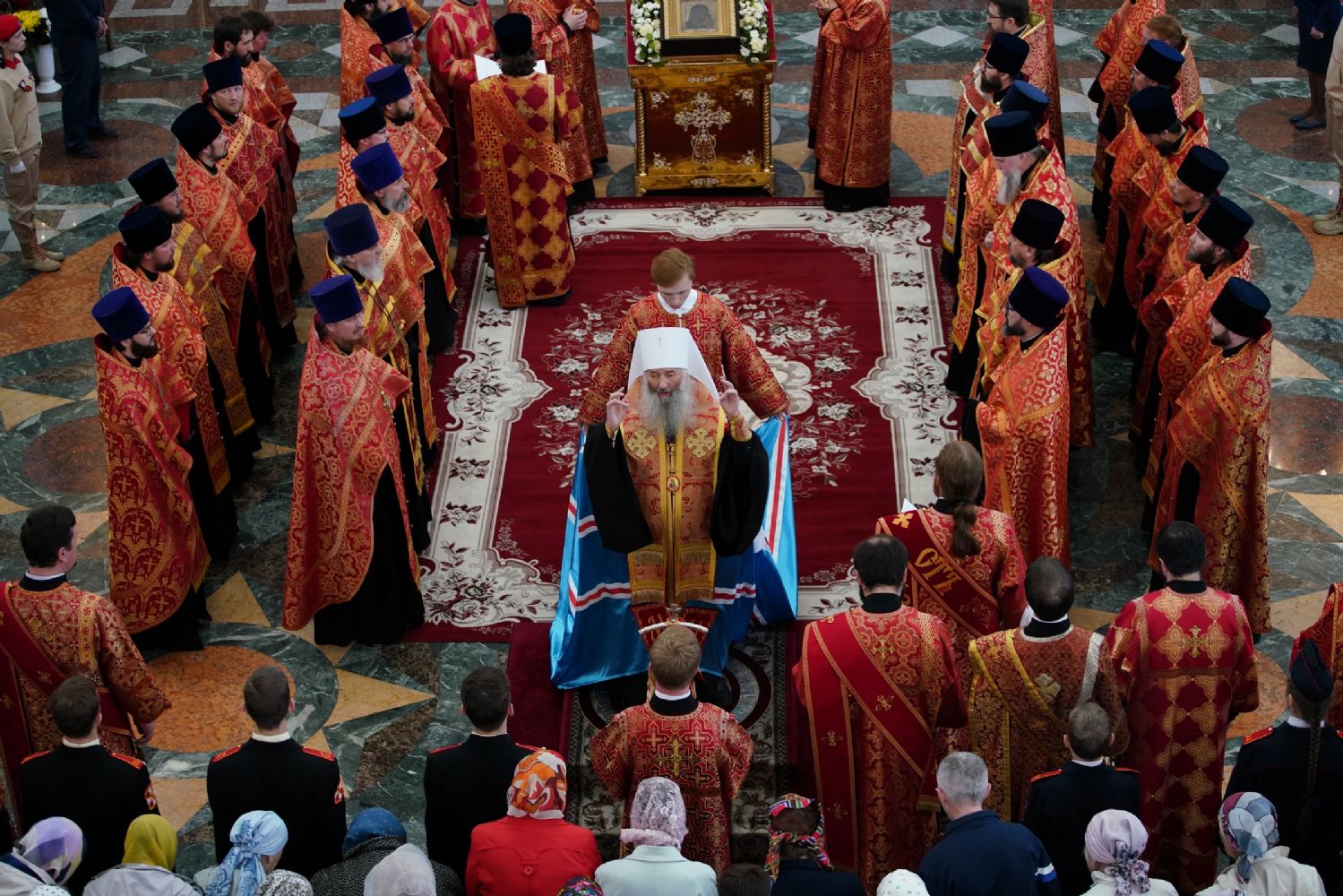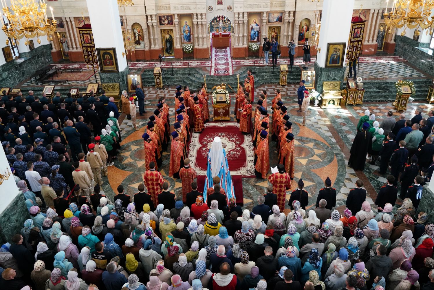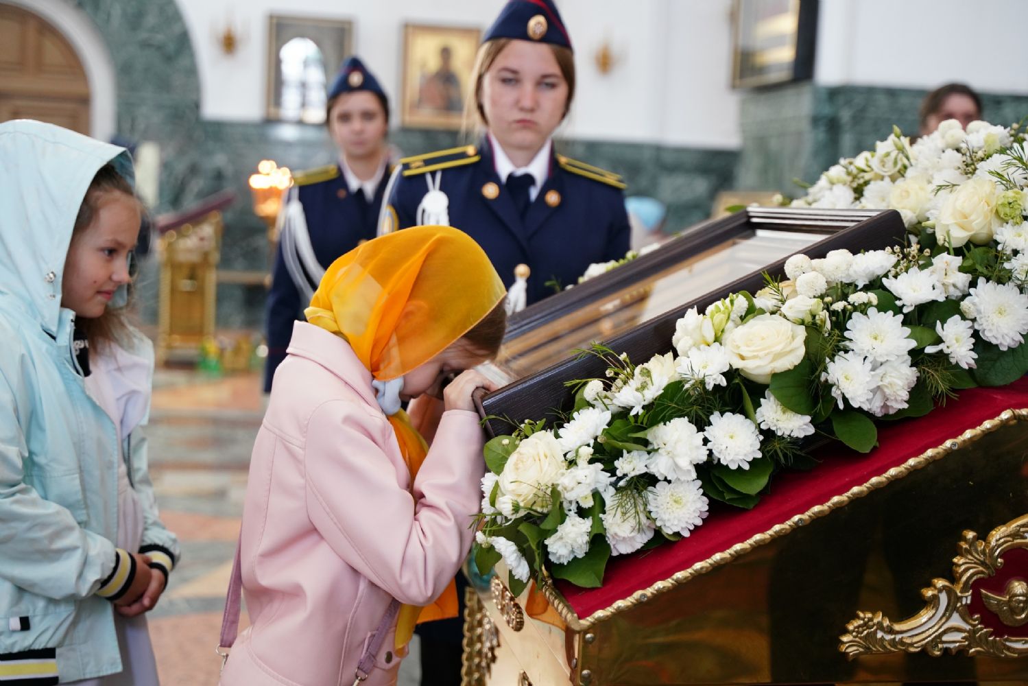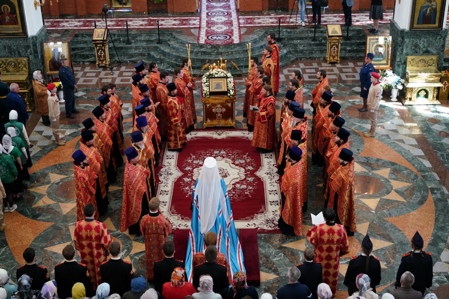 За богослужением молились Первый заместитель Председателя Правительства Республики Марий Эл Михаил Васютин, Председатель Госсобрания РМЭ Анатолий Смирнов, члены Правительства республики и администрации Йошкар-Олы, руководители министерств и ведомств, представители воинских частей и силовых структур, юнармейцы и кадеты.