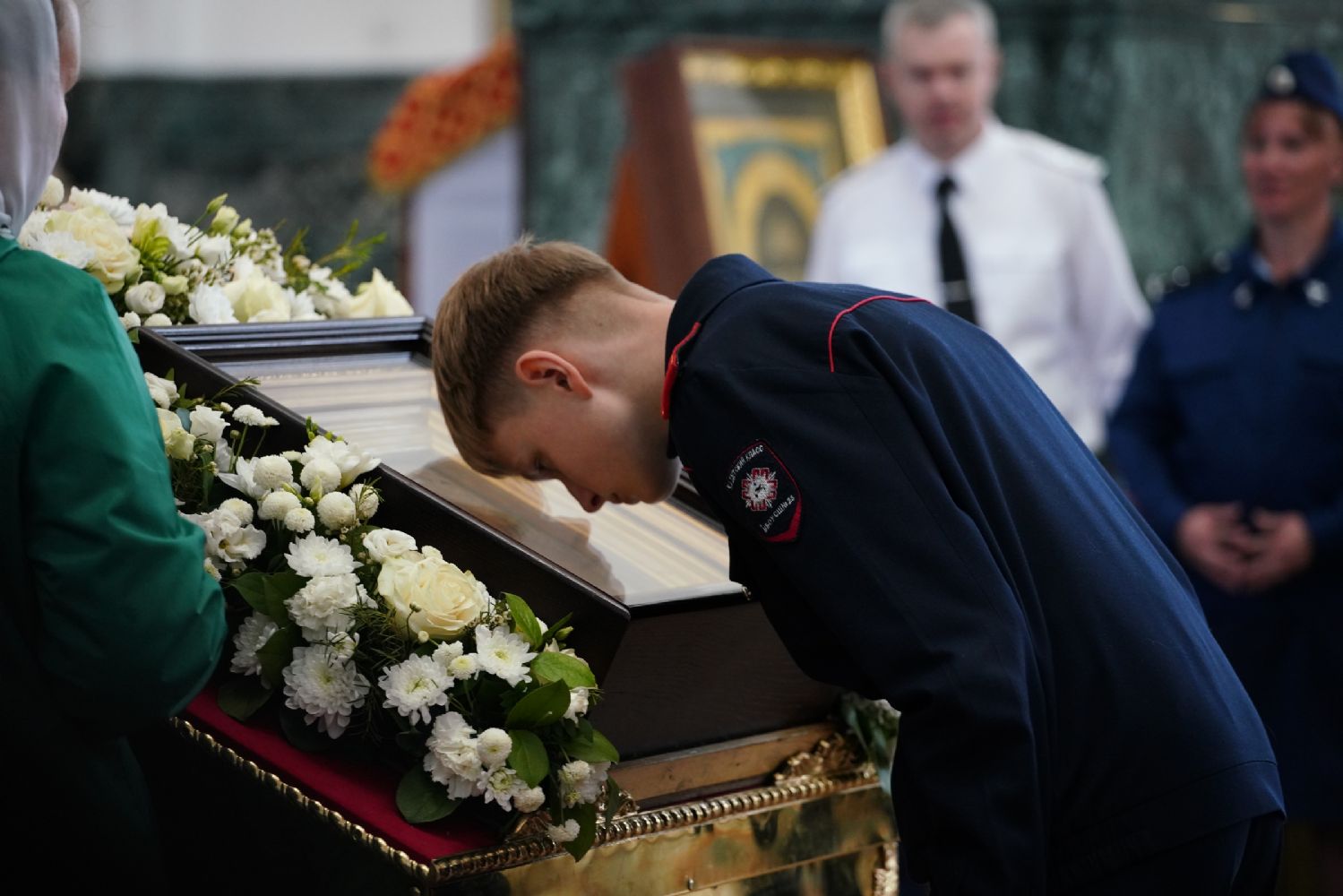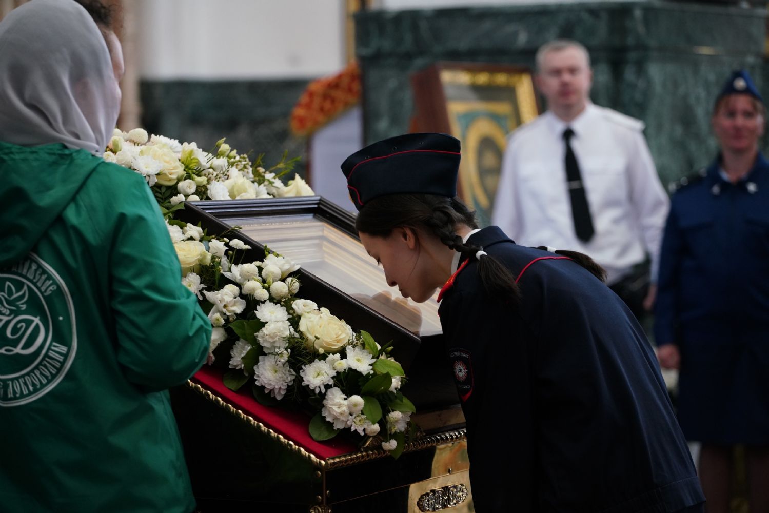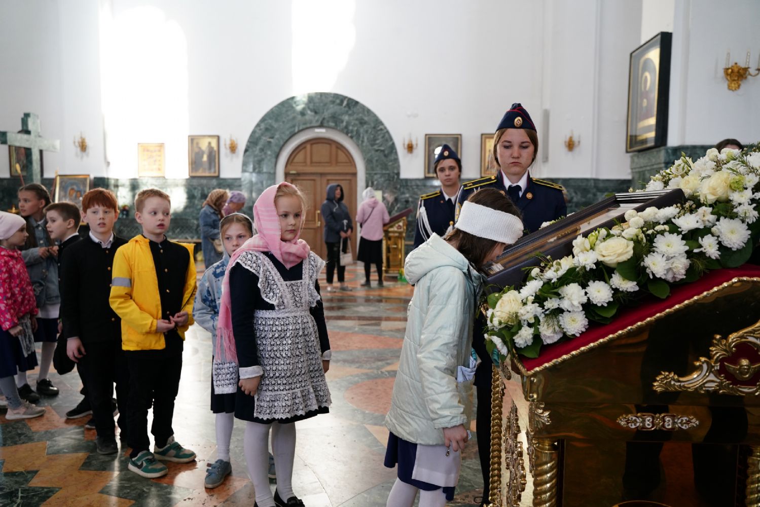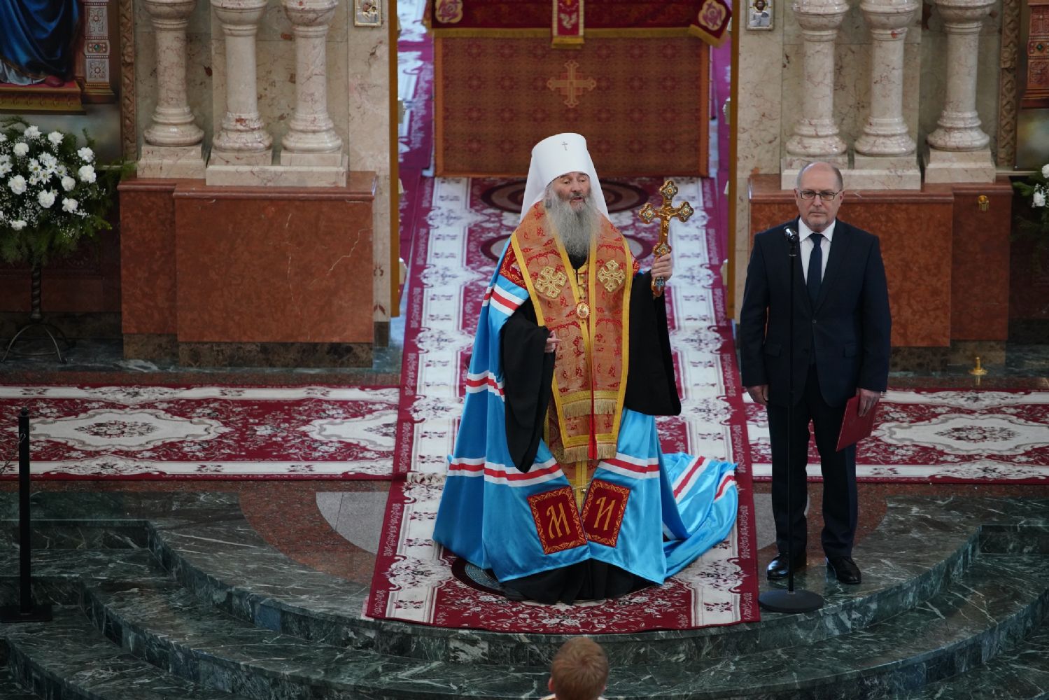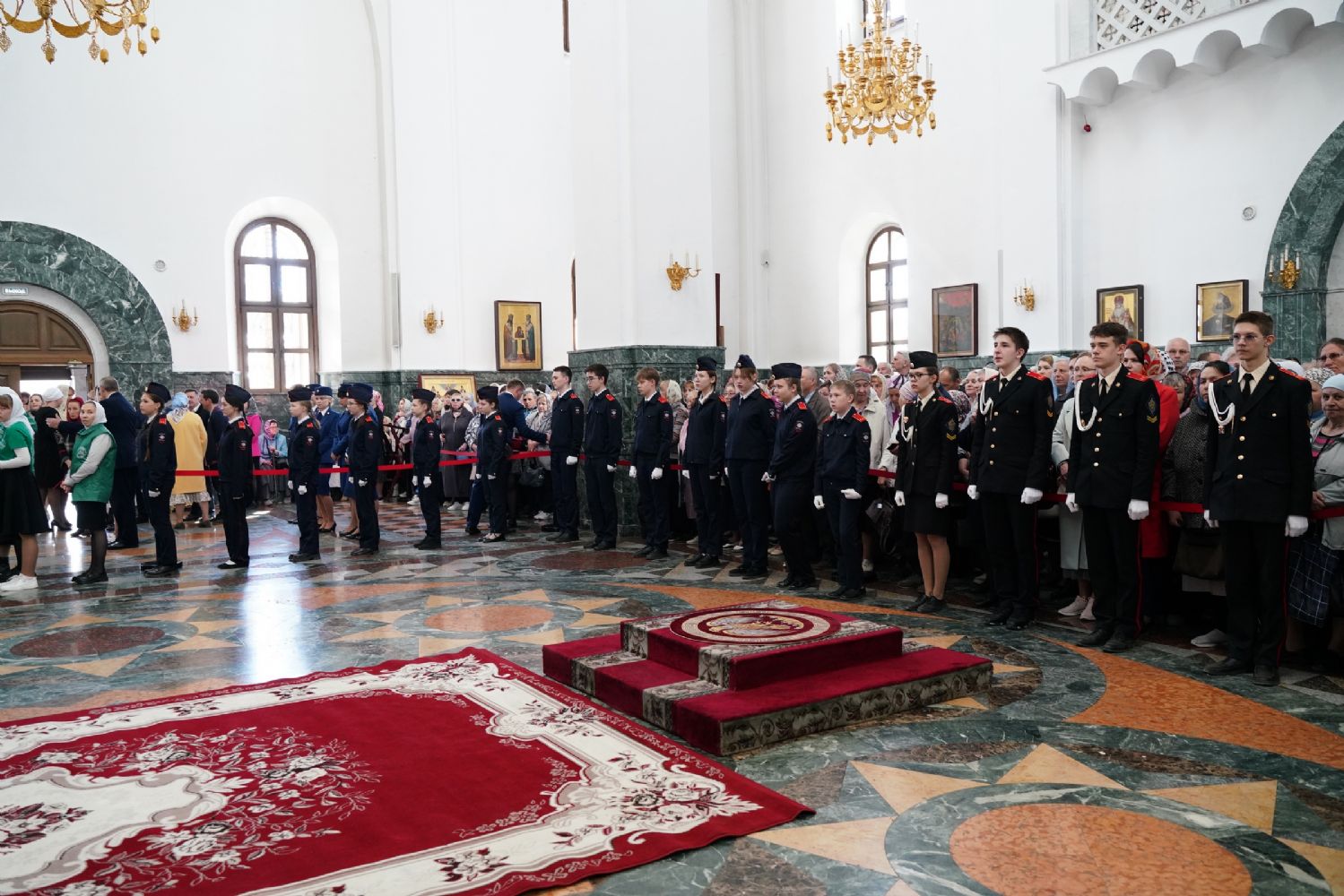 За богослужением молились Первый заместитель Председателя Правительства Республики Марий Эл Михаил Васютин, Председатель Госсобрания РМЭ Анатолий Смирнов, члены Правительства республики и администрации Йошкар-Олы, руководители министерств и ведомств, представители воинских частей и силовых структур, юнармейцы и кадеты.