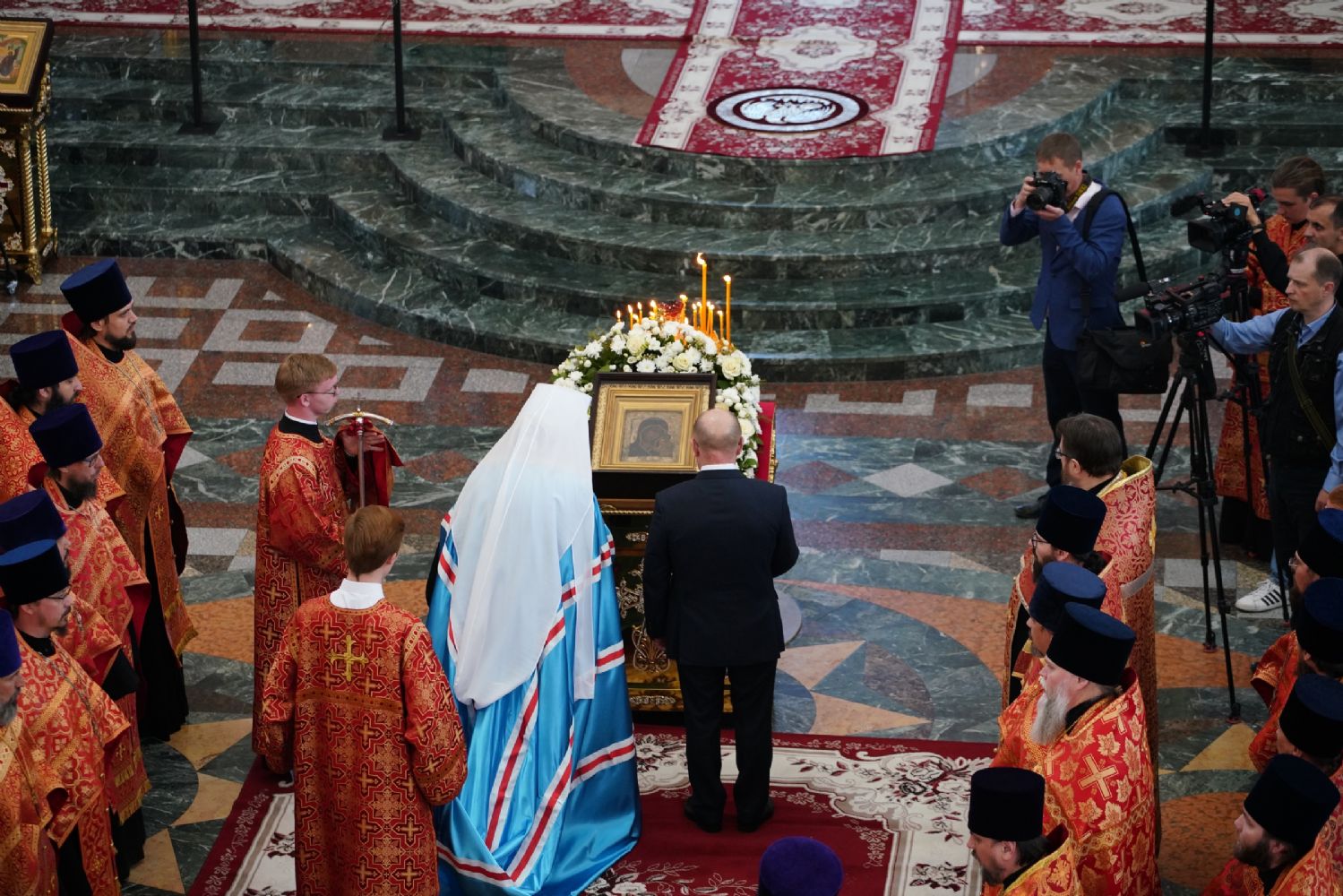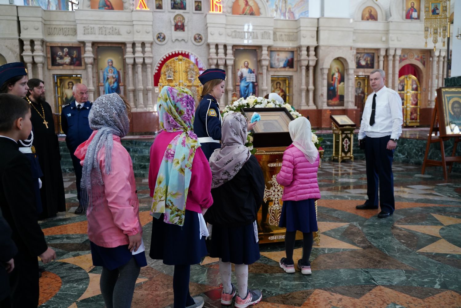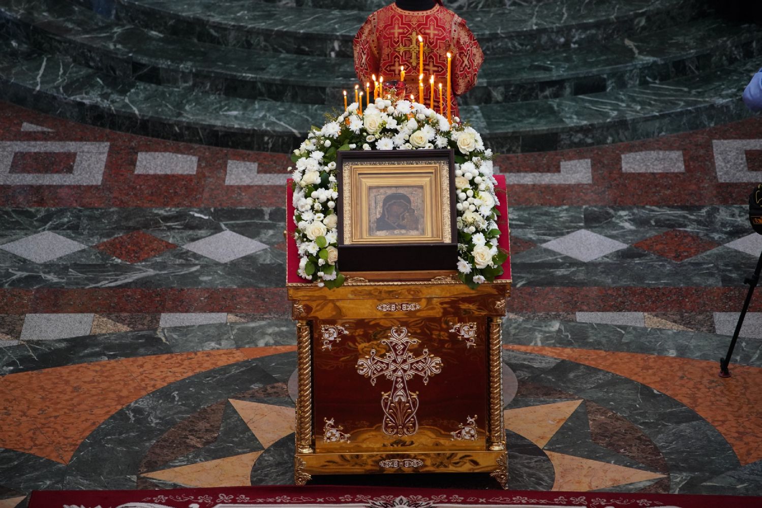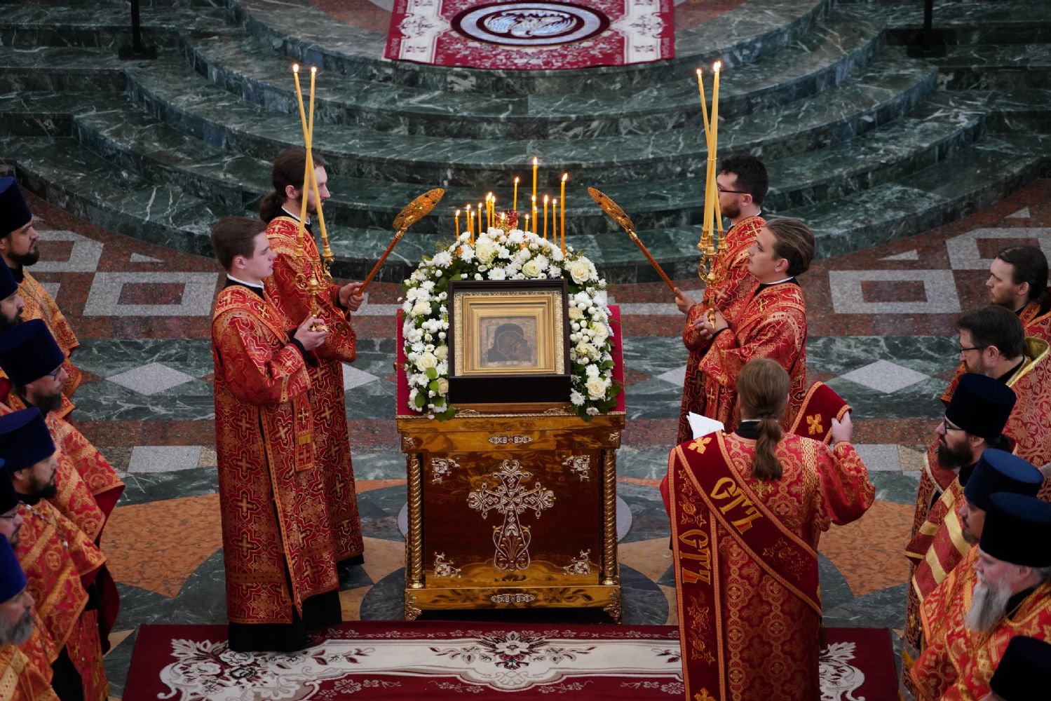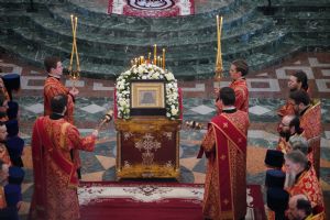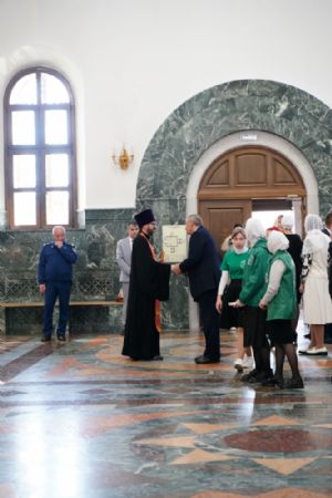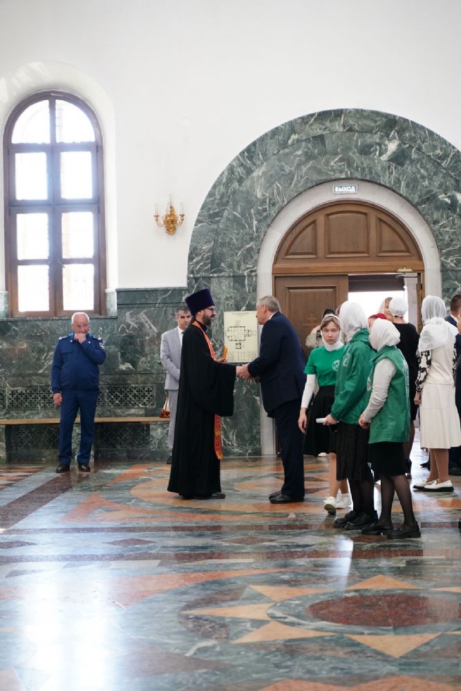 Клирик Сергиево-Посадской епархии священник Сергий Кирсанов, по благословению Святейшего Патриарха Московского и всея Руси Кирилла сопровождающий святыню в ее шествии по городам России, подарил митрополиту Иоанну и Михаилу Васютину иконы Пресвятой Богородицы в Ее образе «Казанская».