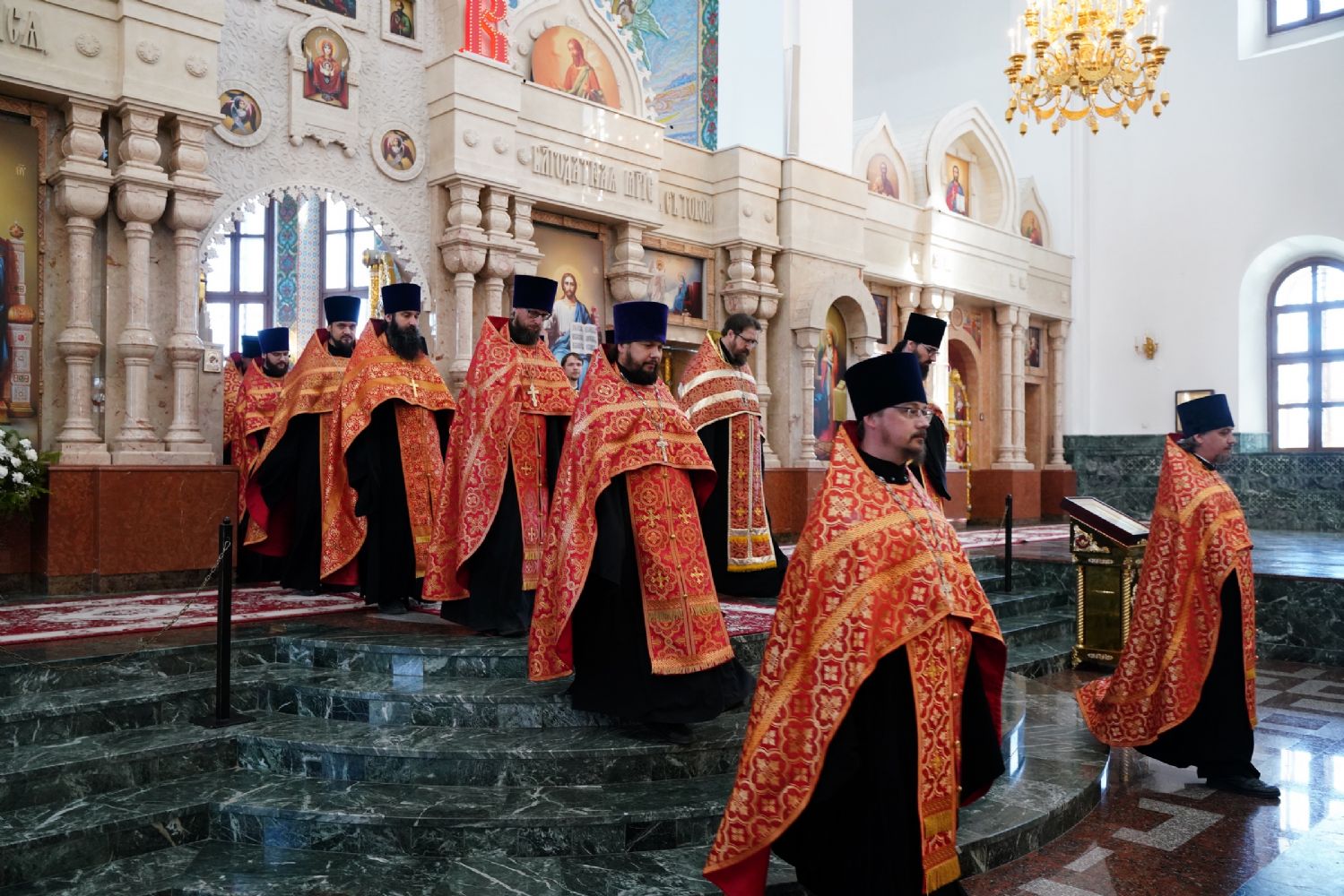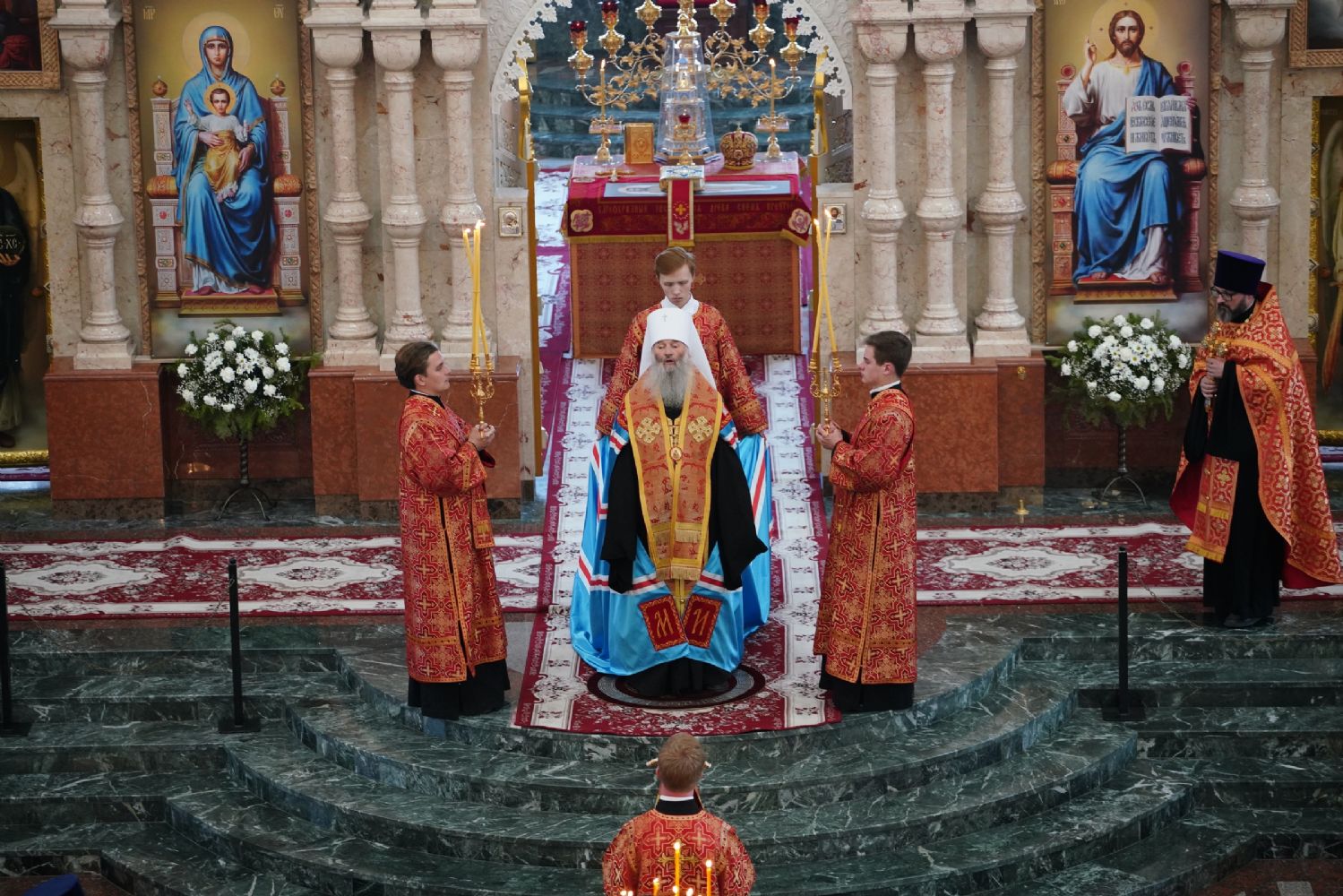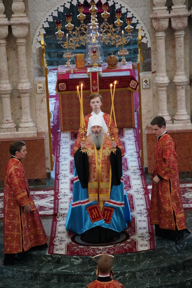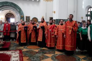 Архипастырю сослужили секретарь Йошкар-Олинского епархиального управления иерей Димитрий Дьяков и духовенство Йошкар-Олинской епархии. Песнопения исполнял детско-юношеский хор «Благовест» под управлением регента Татьяны Черновой.
