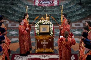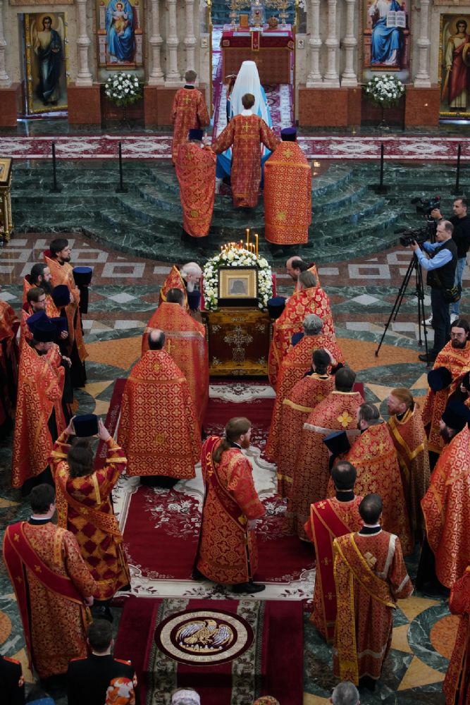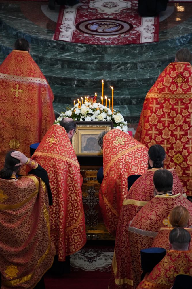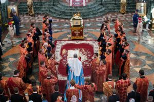 «И сегодня мы вновь и вновь обращаем к Пречистой Богоматери свои молитвенные взоры, ожидая, что Царица Небесная умиротворит Святую Русь, даст нашим воинам крепость и помощь небесную, и разрушит все адские греховные мерзости, которые изливаются извне на нашу страну. Но как бы ни был силен враг, Бог и Пречистая Богоматерь всегда со Святой Русью, лишь бы только мы были Ее достойными чадами и соблюдали заповеди Ее Сына – Господа нашего Иисуса Христа»