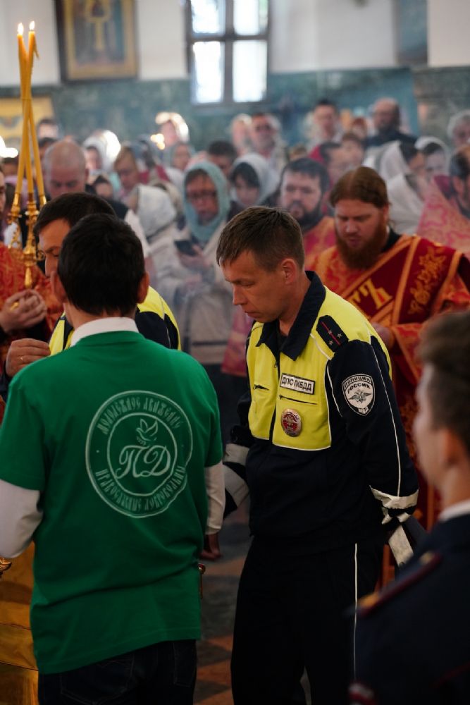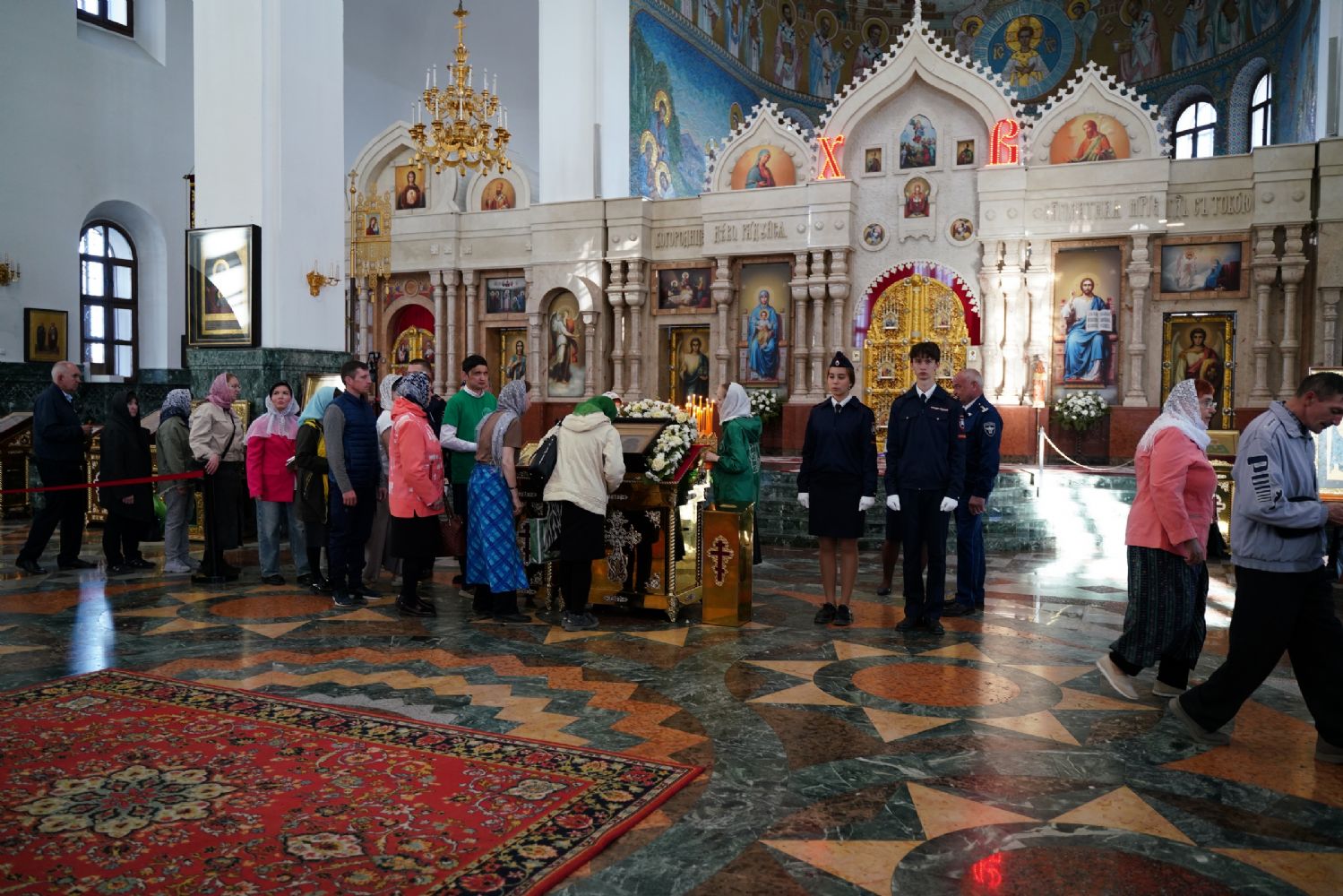 Храм был переполнен – поклониться Заступнице Усердной рода христианского, попросить Ее заступничества за нашу страну, за ребят, выполняющих воинский долг, собралось множество верующих, в том числе военнослужащие, кадеты.
