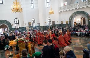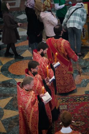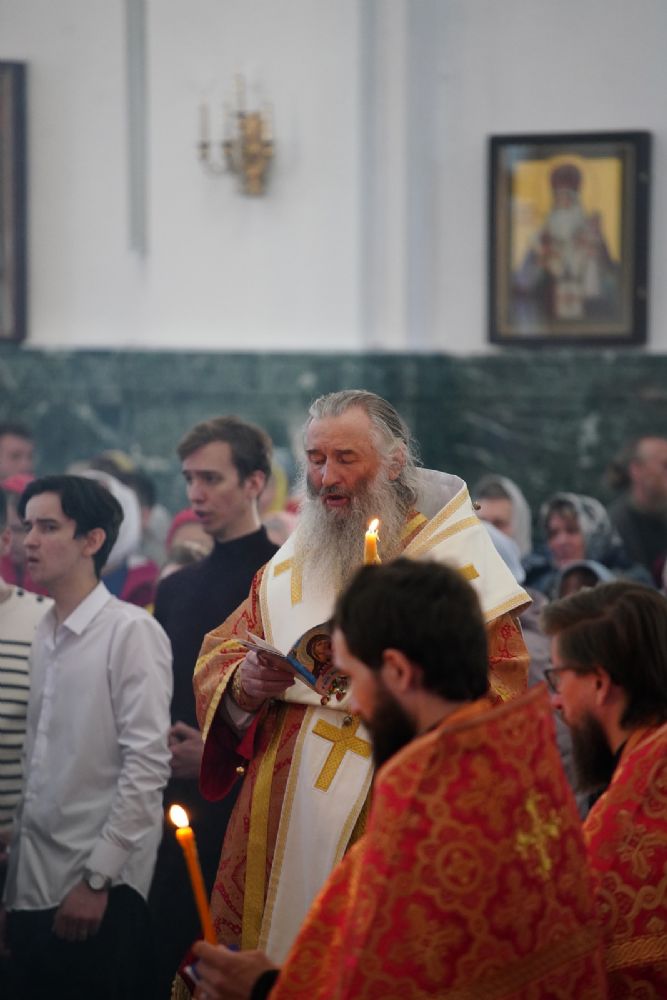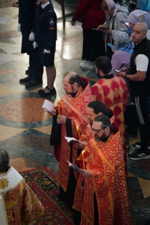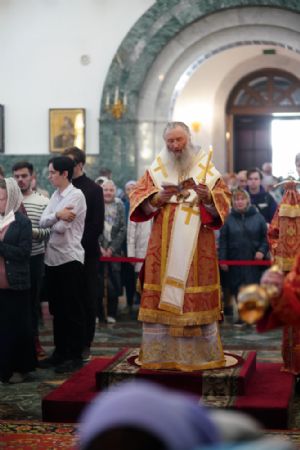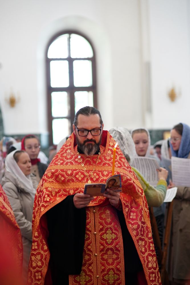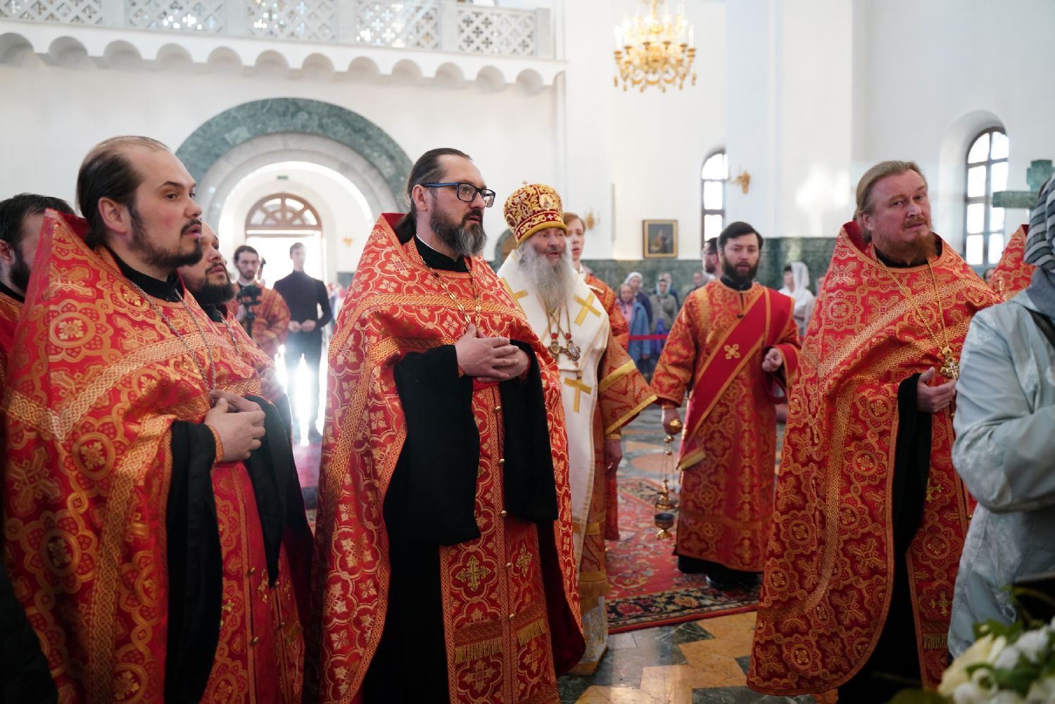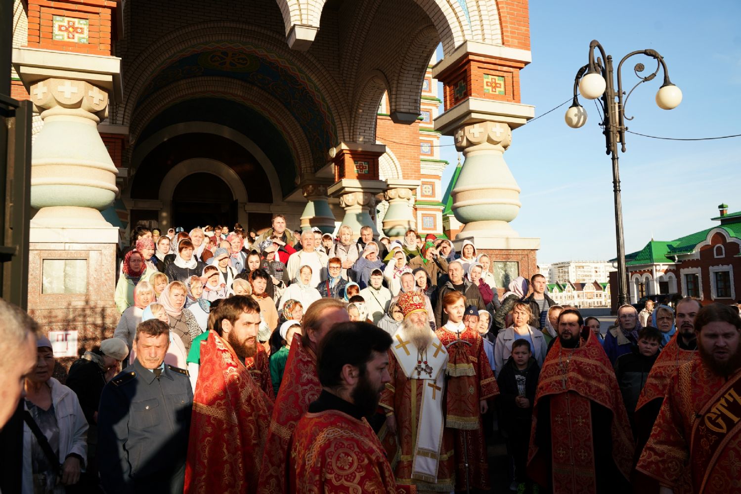 Архипастырю сослужили секретарь Йошкар-Олинского епархиального управления иерей Димитрий Дьяков и духовенство кафедрального собора, пел хор «Благовест» под управлением Татьяны Черновой.