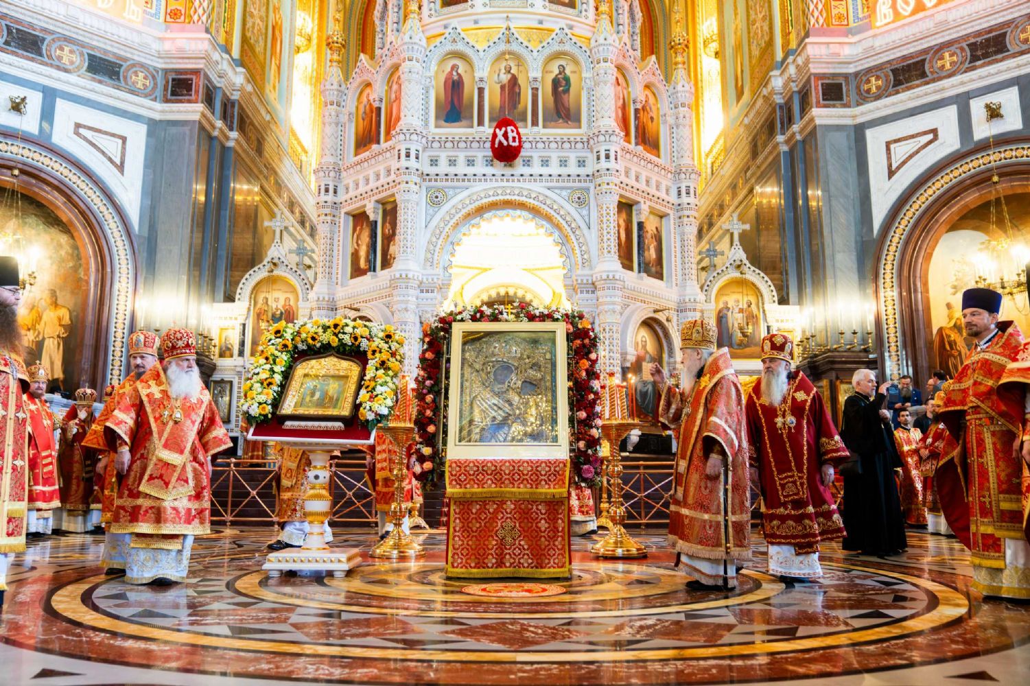 По прибытии в Храм Христа Спасителя Святейший Патриарх Кирилл поклонился чудотворной Тихвинской иконе Божией Матери, установленной в центре храма. Чудотворный образ 21 мая по благословению Его Святейшества был принесен в Москву из Тихвинского Богородичного Успенского мужского монастыря.