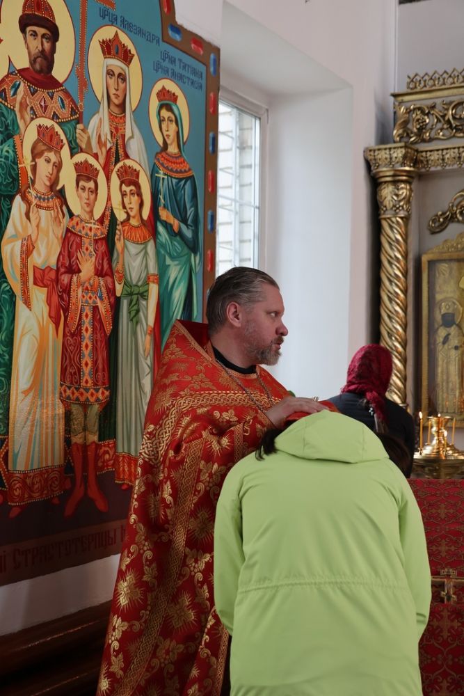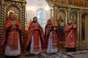 По благословению епископа Волжского и Сернурского Феофана Литургию возглавил настоятель храма иконы Божией Матери «Всех скорбящих Радость» г. Волжска протоиерей Александр Михайлов. Ему сослужили настоятель храма преподобномученика Андрея Критского с. Елембаево протоиерей Сергий Бажанов, клирики Никольского кафедрального собора иерей Сергий Першаков и диакон Иоанн Захаров. Богослужебные песнопения исполнял народный хор под управлением Евгения Чигарова.