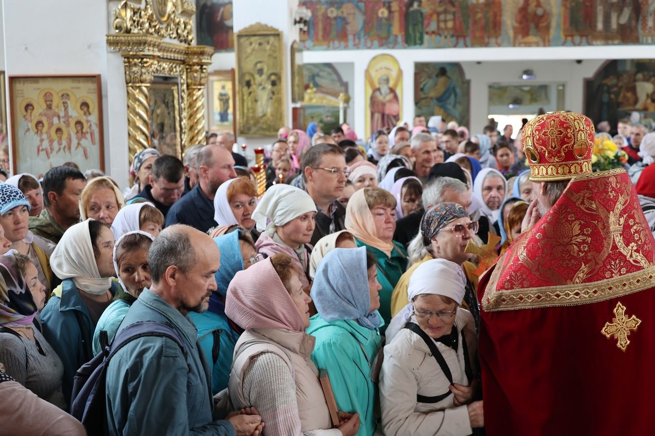 По окончании Божественной литургии протоиерей Александр Михайлов обратился к многочисленным верующим со словами проповеди и напутствием на начало крестного шествия.