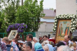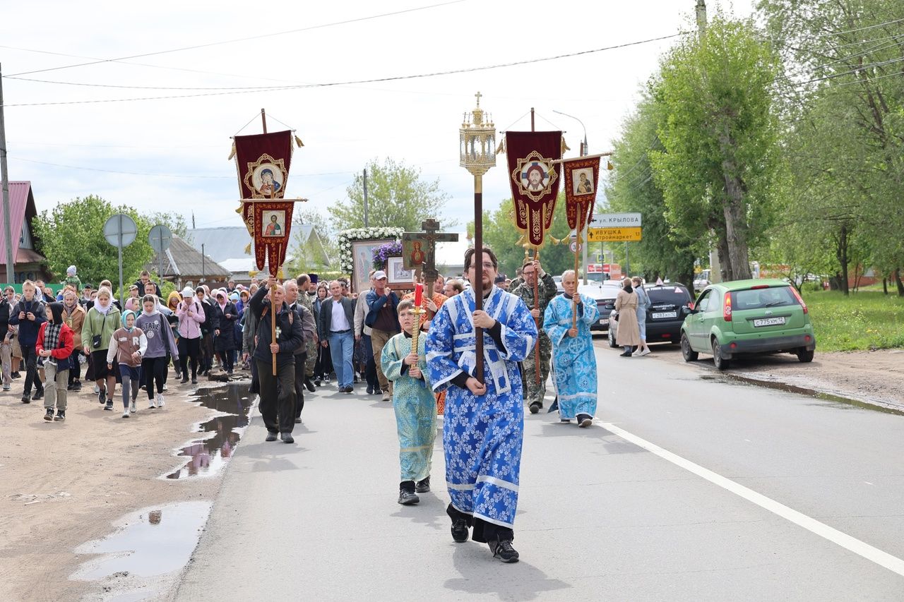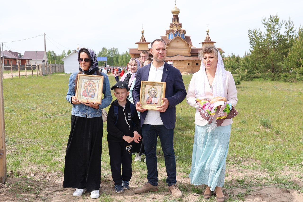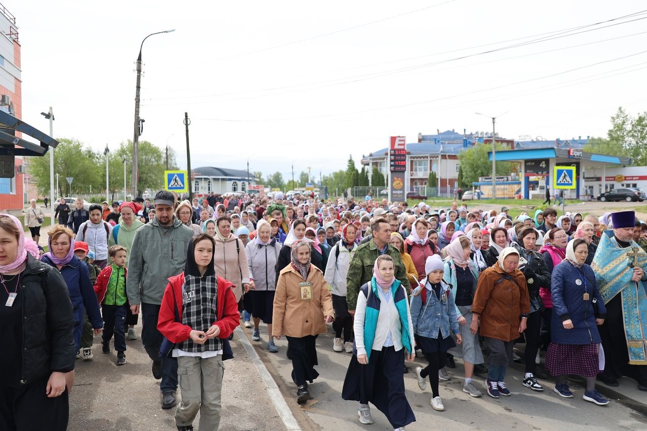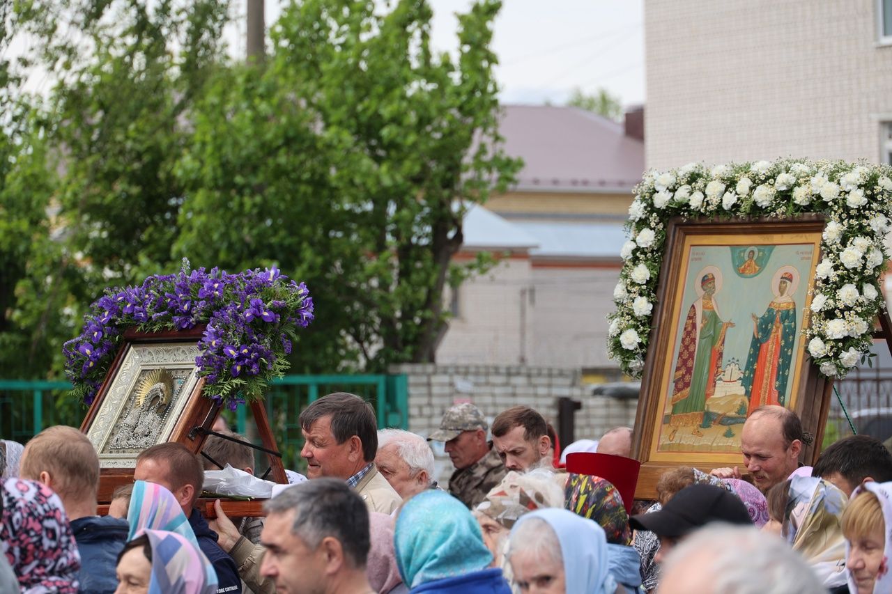 В этом году участники крестного хода молитвенно пронесут по территории Волжской епархии две иконы: Смоленскую Седмиезерную икону Божией Матери и икону святых благоверных князей Петра и Февронии, которая незадолго до начала крестного хода была освящена на мощах этих святых угодников Божиих в Муроме и в дальнейшем будет постоянно пребывать в храме Рождества Христова с. Арино.