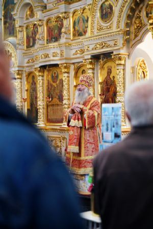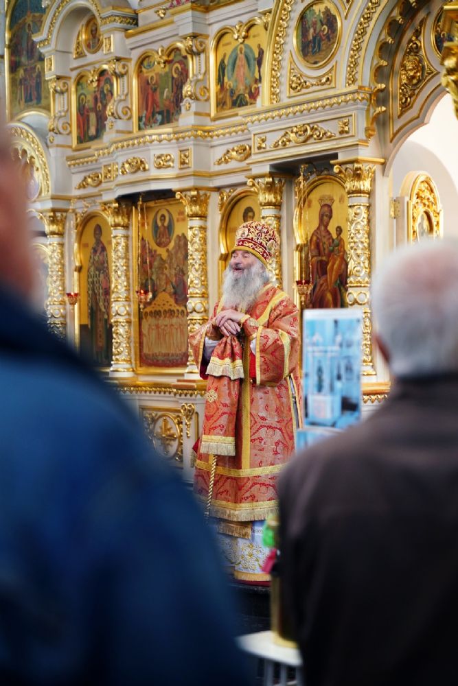 По окончании Литургии митрополит Иоанн обратился к собравшимся с архипастырским словом, разъяснив духовный смысл прочитанного за богослужением евангельского зачала об исцелении Христом около Силоамской купели в Иерусалиме парализованного человека, пролежавшего в болезни 38 лет. И за все это время никто из окружающих не помог ему опуститься в купель, когда в ней возмутится вода...