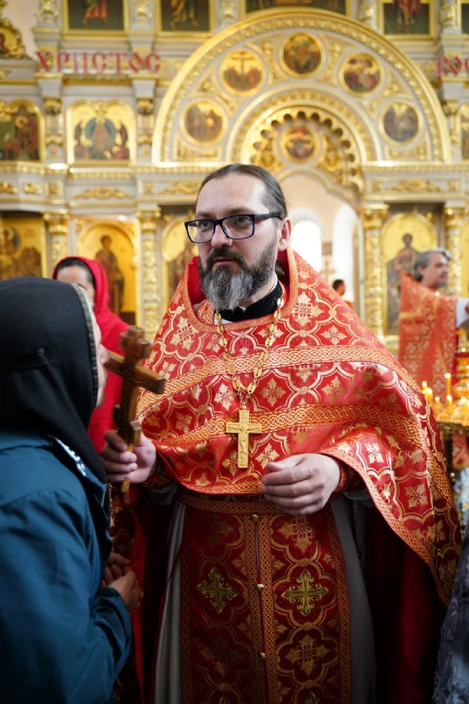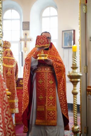 Его Высокопреосвященству сослужили секретарь Йошкар-Олинского епархиального управления иерей Димитрий Дьяков, настоятель храма иерей Александр Лоскутов и клирик Благовещенского кафедрального собора диакон Андрей Дружинин. Песнопения исполнял хор храма под управлением Наталии Поповой.