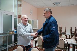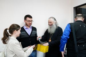Встреча проходила в трапезной Благовещенского кафедрального собора. Владыку сопровождал руководитель информационно-издательского отдела Йошкар-Олинской епархии диакон Александр Жирнов.
