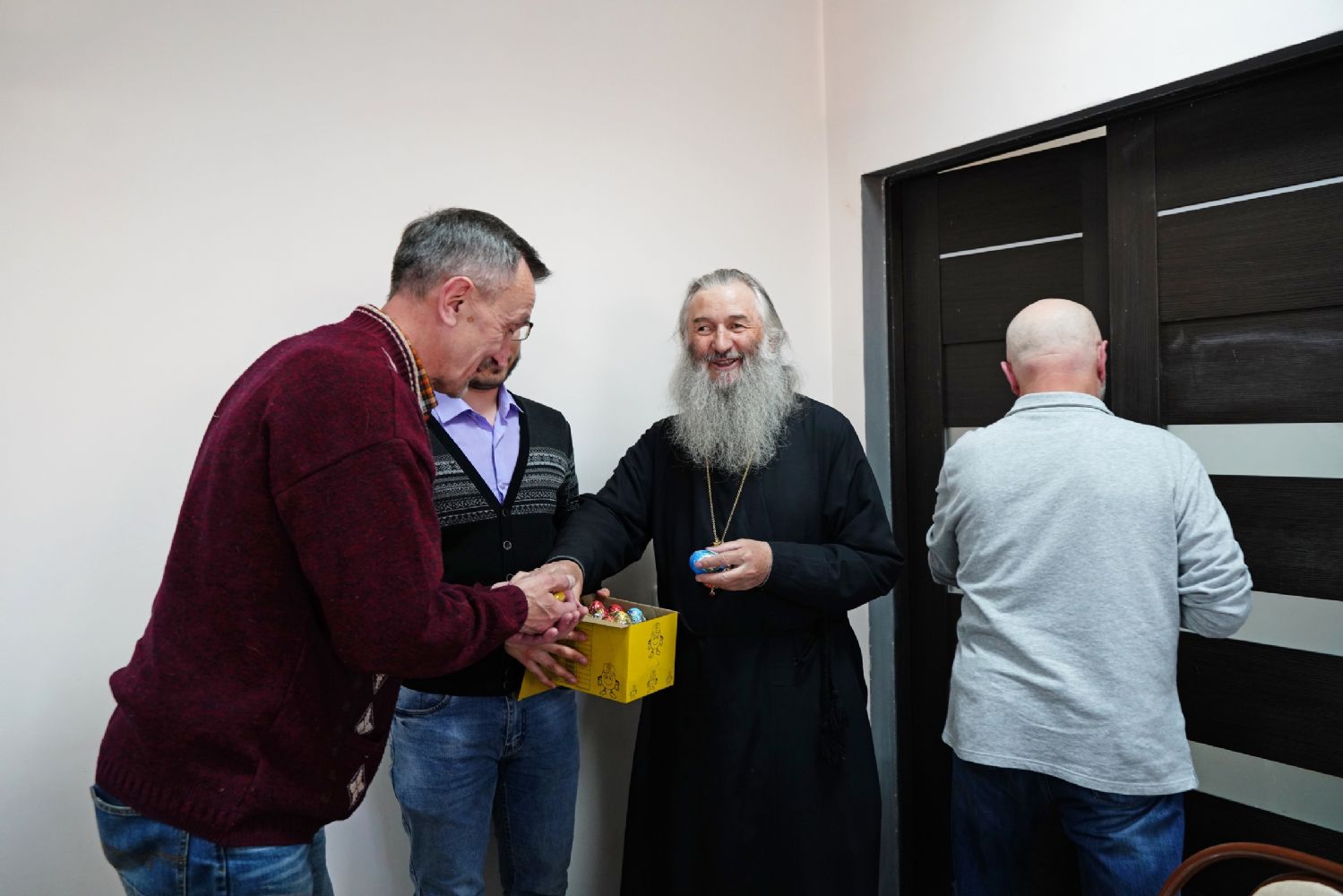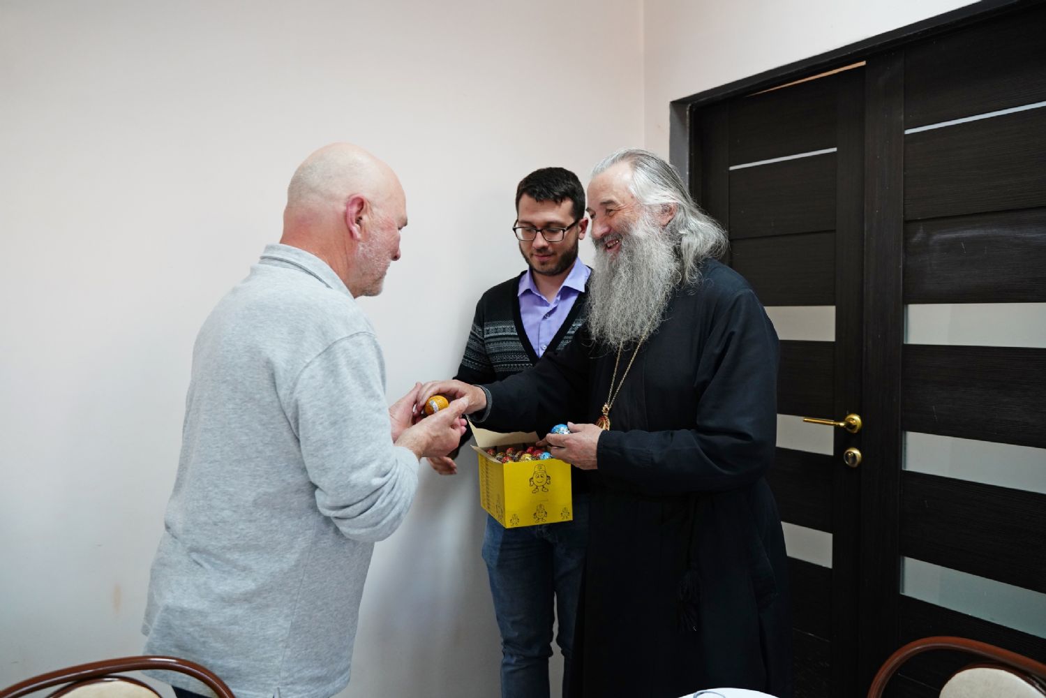 Время пролетело незаметно. На прощание владыка благословил собравшихся и вручил пасхальные шоколадные яйца. И все вместе сделали фото на память.