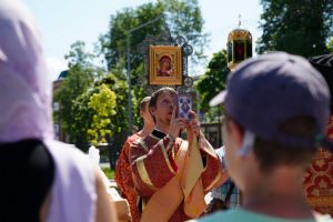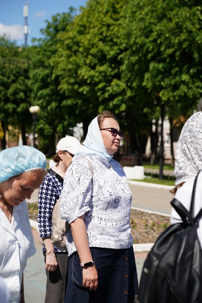Молитвенное шествие возглавили руководитель социального отдела иерей Алексей Михеев, сотрудник социального отдела иерей Александр Староверов и руководитель молодежного движения «Православные добровольцы» диакон Владимир Лихачев. По пути верующие воспевали в молитвах Пресвятую Богородицу – Небесную Матерь всех христиан.