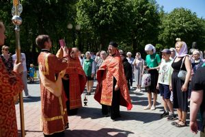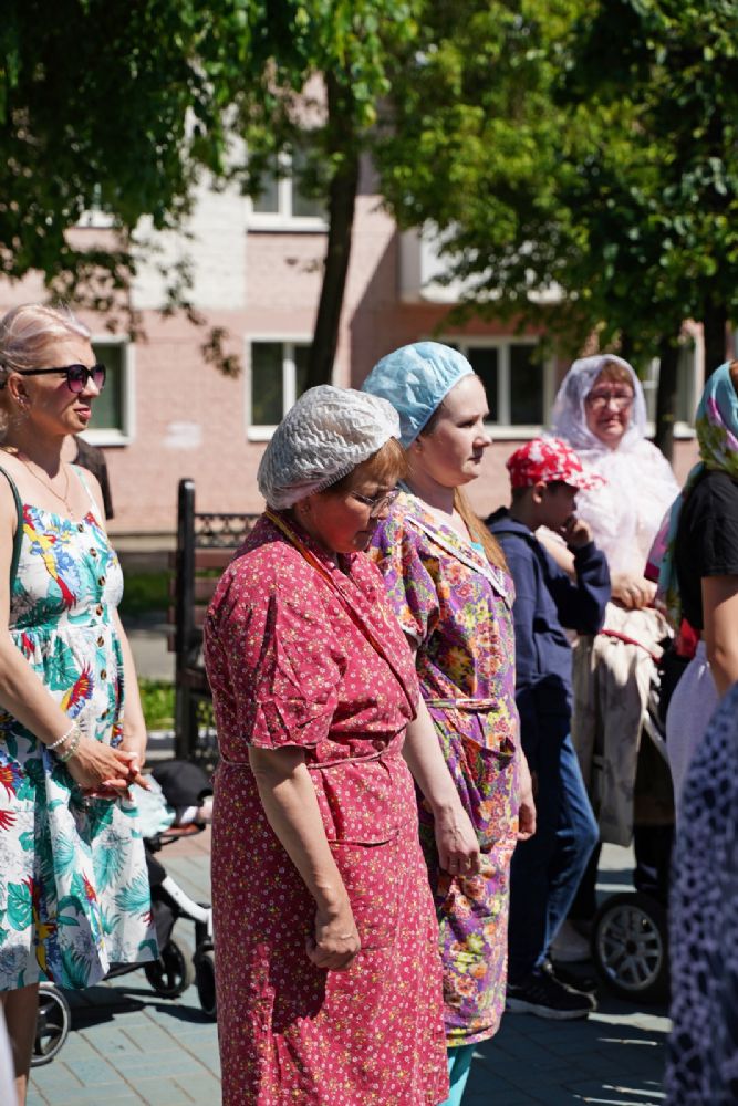 У памятника «Счастливая семья» напротив Перинатального центра крестоходцев встречали медицинский персонал и сестры милосердия молебной комнаты данного учреждения. Отец Алексий возглавил молебен Пресвятой Богородице, все вместе помолились о здравии рожениц и младенцев, о том, чтобы каждый ребёнок был желанным в семье, а абортов стало как можно меньше.