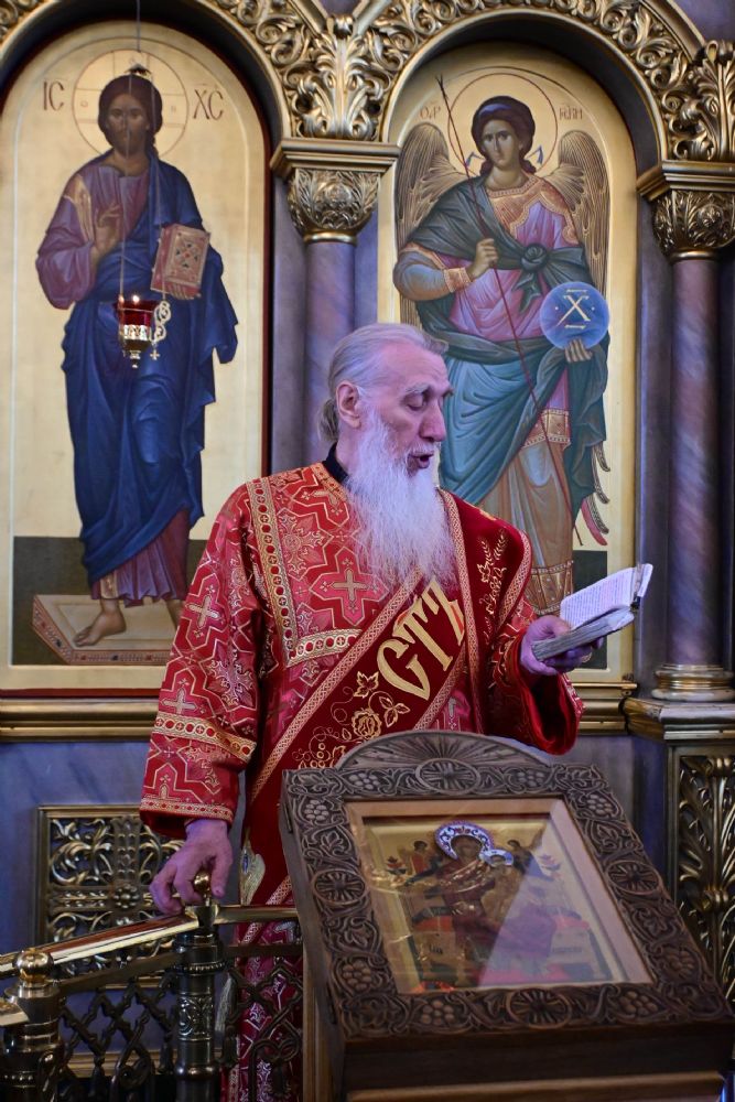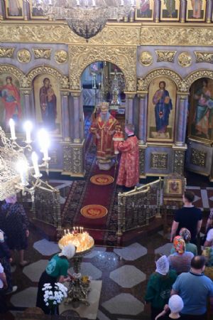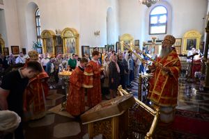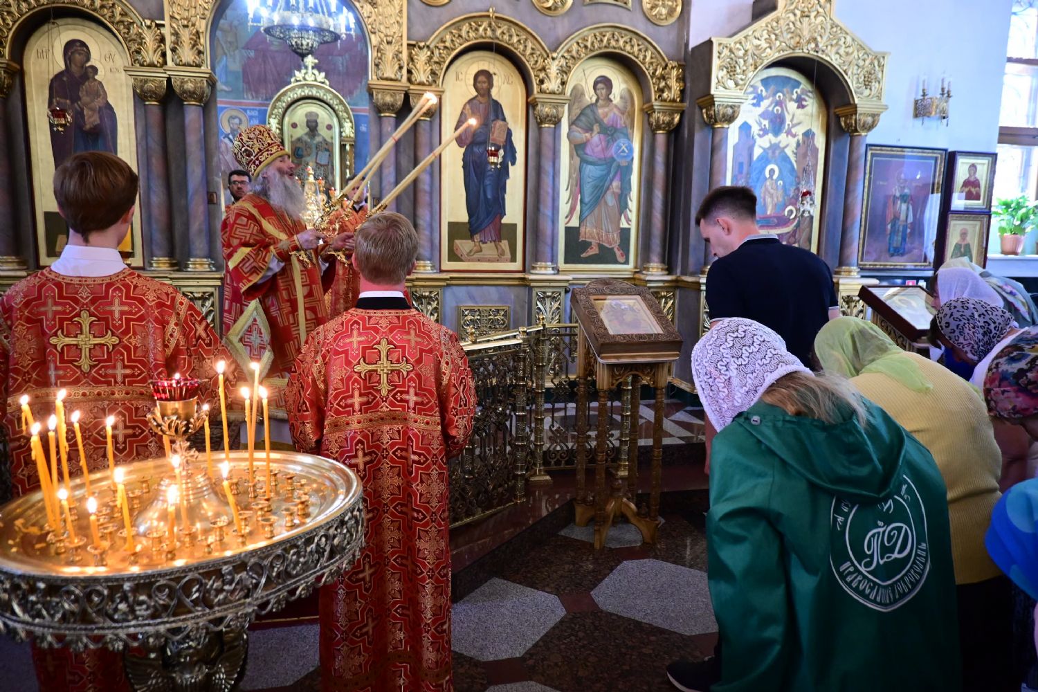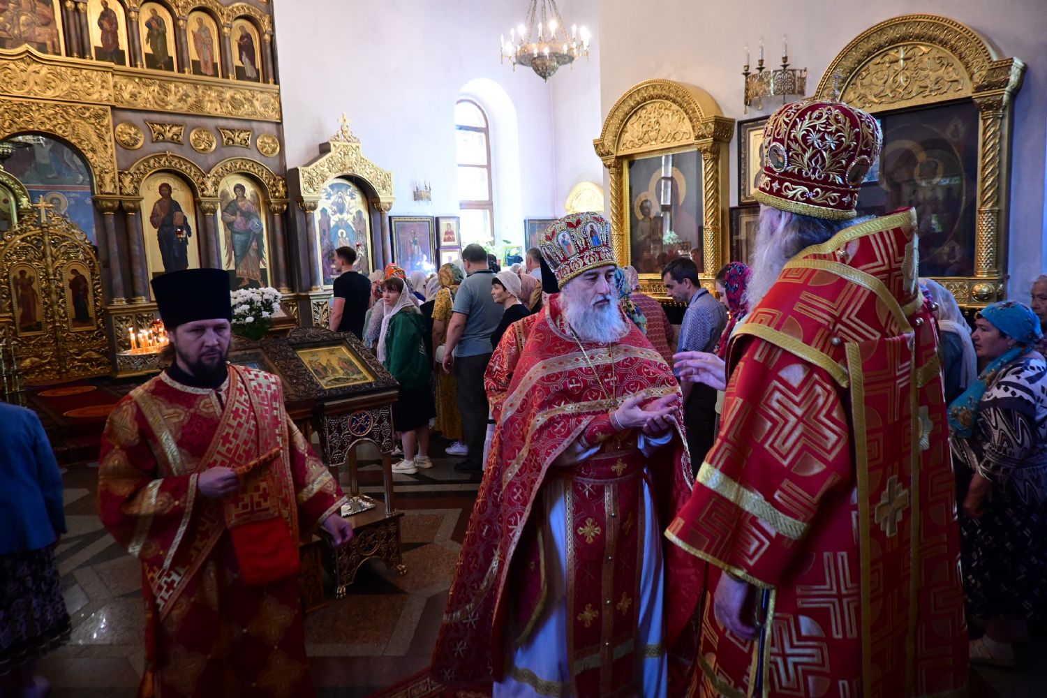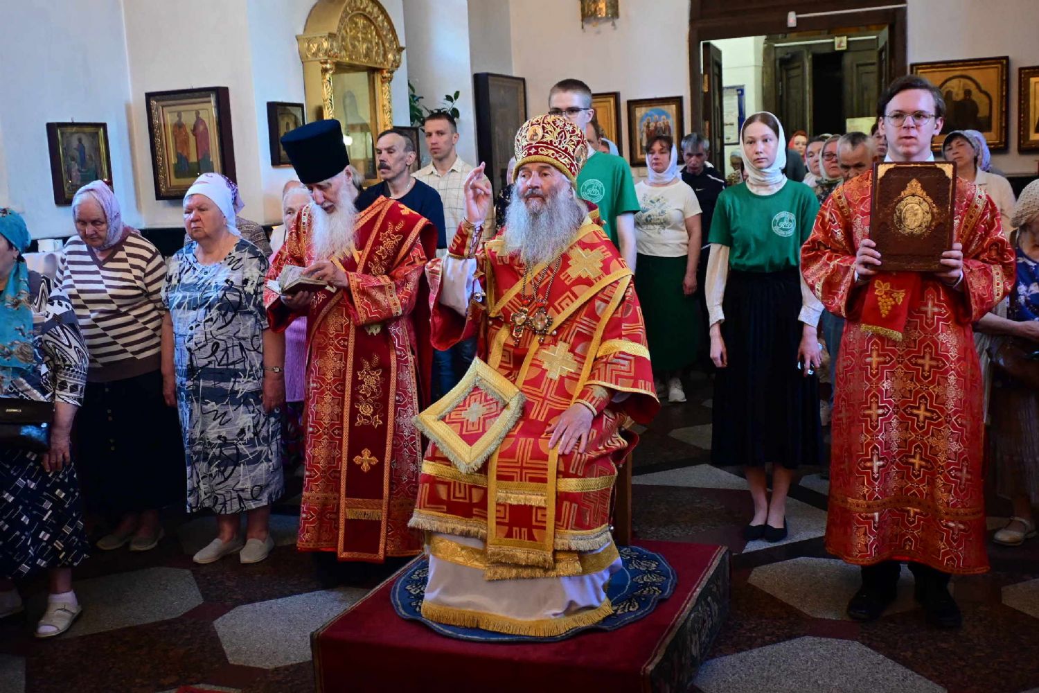 Его Высокопреосвященству сослужили настоятель храма протоиерей Сергий Филонов, клирики храма и протодиакон Михаил Козловский. Песнопения исполнял хор храма под управлением регента Ольги Акилбаевой.