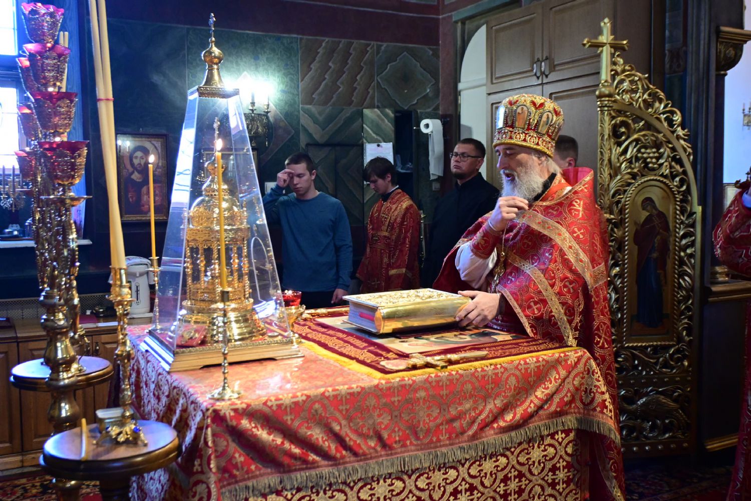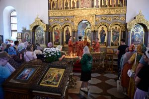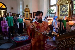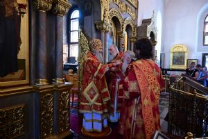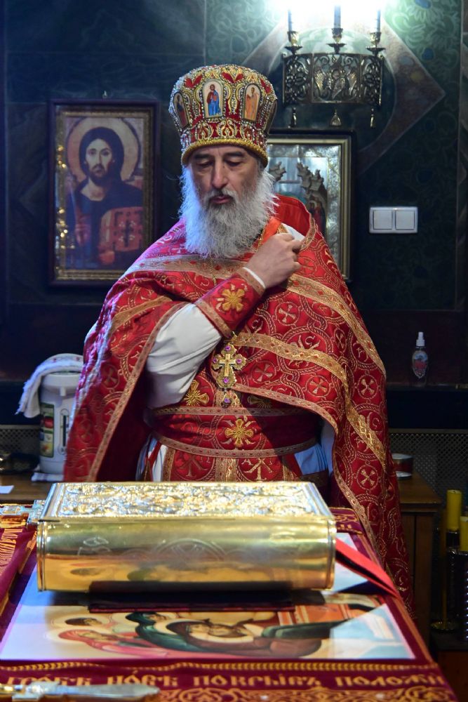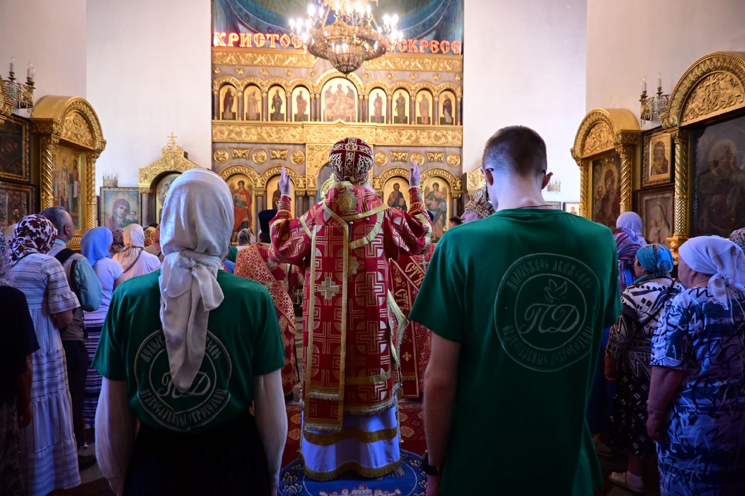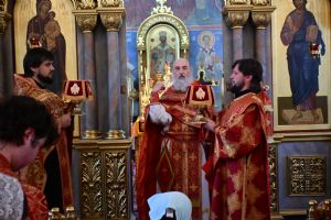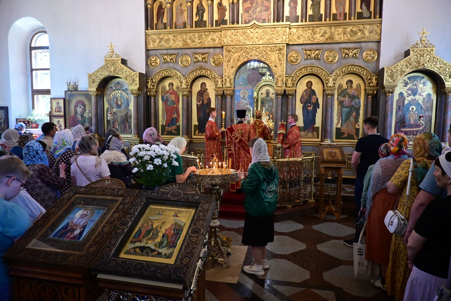 Его Высокопреосвященству сослужили настоятель храма протоиерей Сергий Филонов, клирики храма и протодиакон Михаил Козловский. Песнопения исполнял хор храма под управлением регента Ольги Акилбаевой.