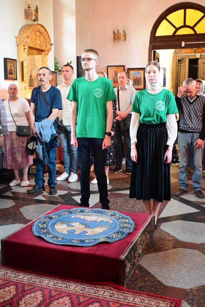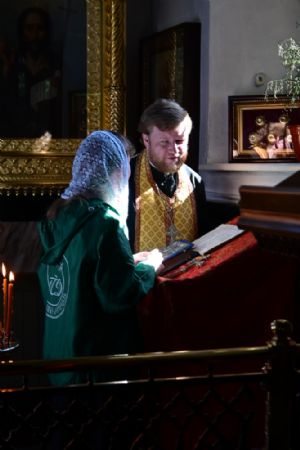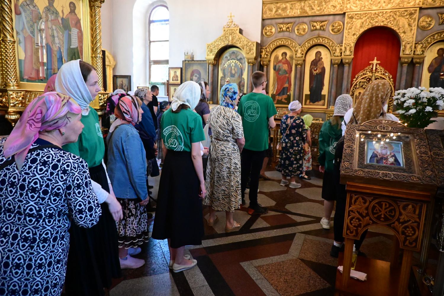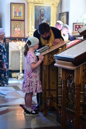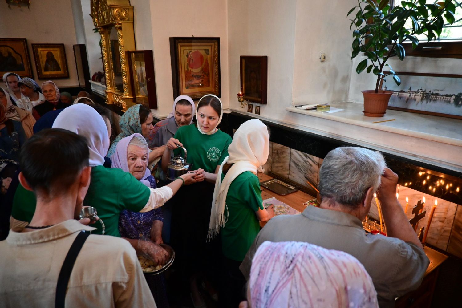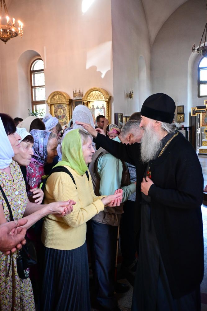 Его Высокопреосвященству сослужили настоятель храма протоиерей Сергий Филонов, клирики храма и протодиакон Михаил Козловский. Песнопения исполнял хор храма под управлением регента Ольги Акилбаевой.