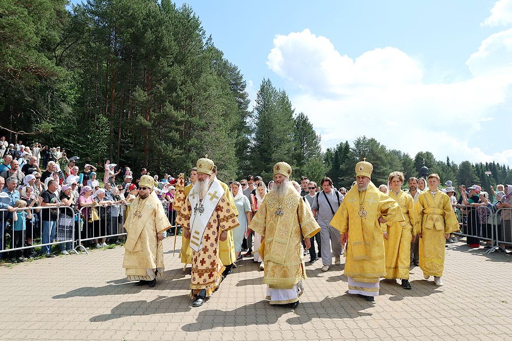 – Возлюбленные о Господе, Ваше Высокопреосвященство, Ваши Преосвященства, дорогие отцы, братья и сестры, всех вас поздравляю с праздником принесения Великорецкого образа к месту его явления. Совершая молитвенное шествие и богослужения на берегу реки Великой, мы с вами сегодня молились о нашем с вами Российском государстве, о котором шла слава по всему лицу земли как о Руси Святой.
