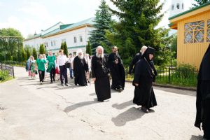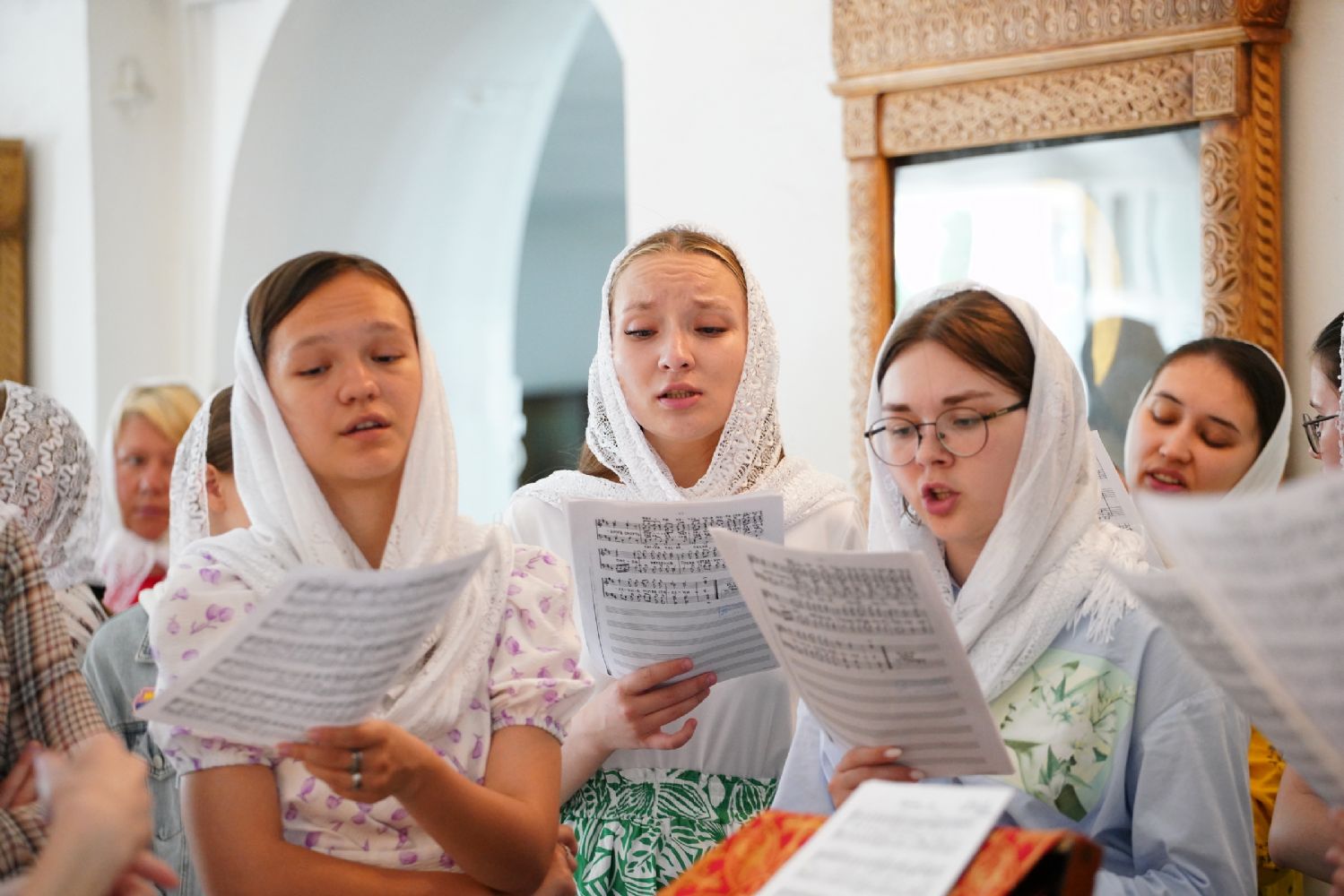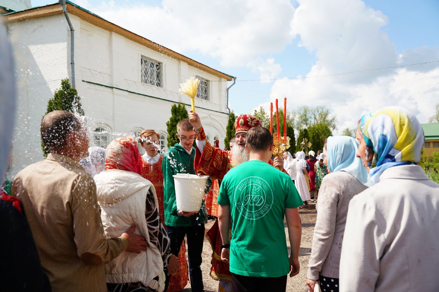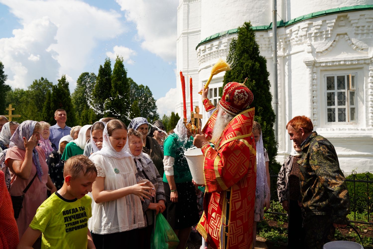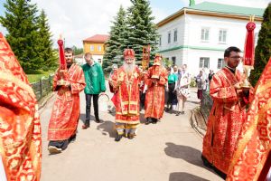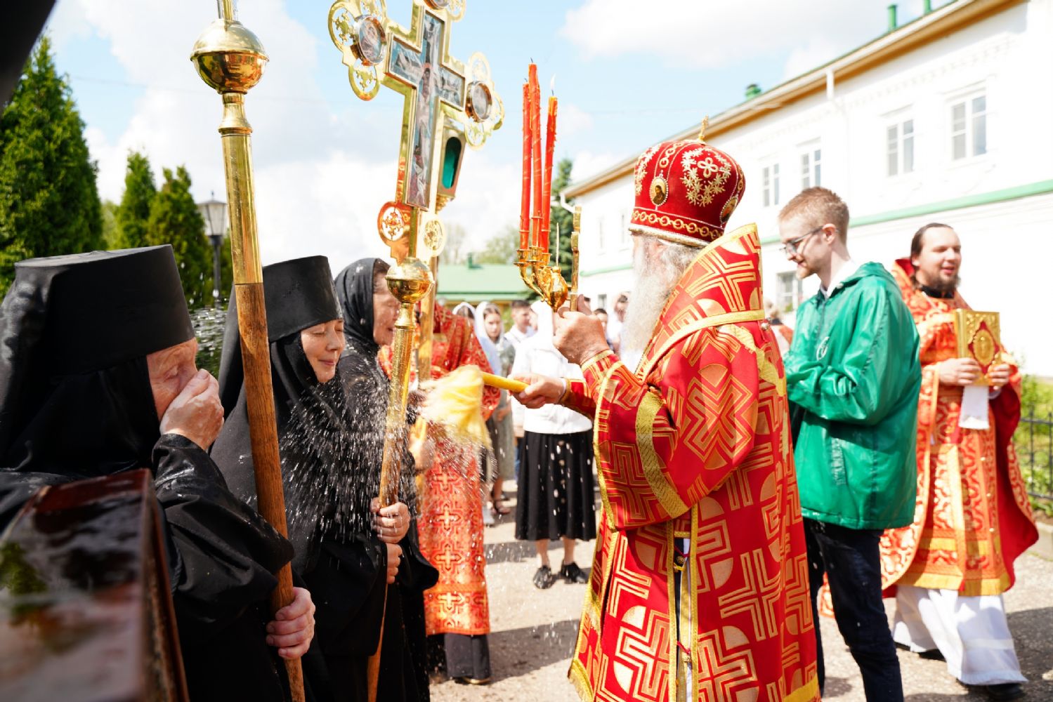 Его Высокопреосвященству сослужили секретарь Йошкар-Олинского епархиального управления иерей Димитрий Дьяков, клирик монастыря иерей Михаил Лежнин, клирик храма иконы «Всех скорбящих Радость» г. Йошкар-Олы иерей Игорь Коваль и протодиакон Михаил Козловский. Песнопения исполнял детско-юношеский хор «Благовест» под управлением регента Татьяны Черновой.