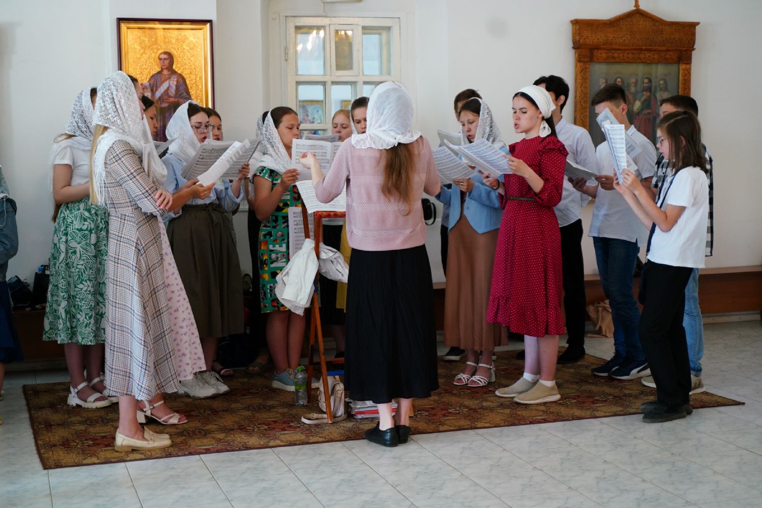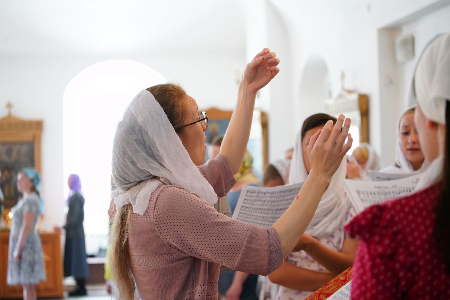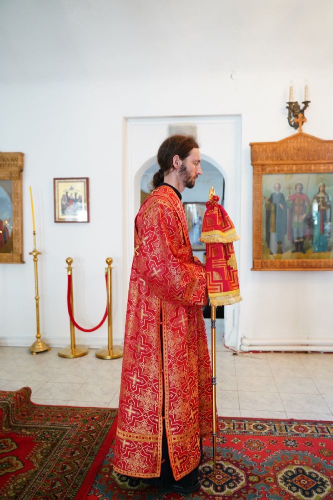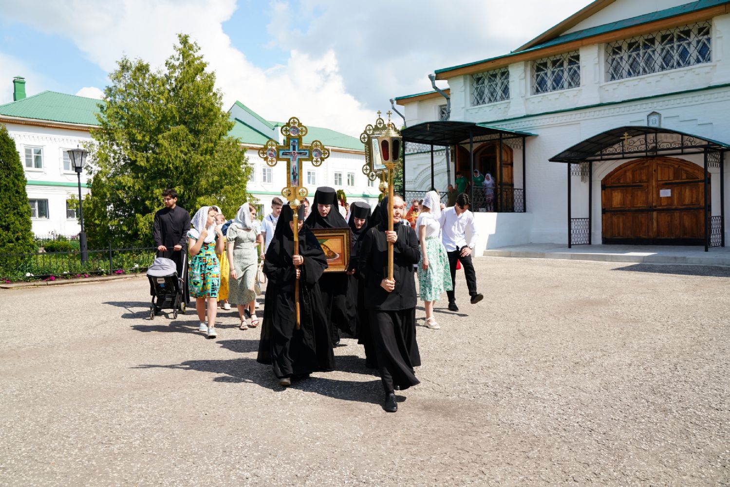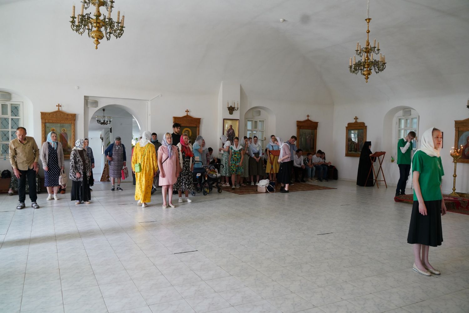 Его Высокопреосвященству сослужили секретарь Йошкар-Олинского епархиального управления иерей Димитрий Дьяков, клирик монастыря иерей Михаил Лежнин, клирик храма иконы «Всех скорбящих Радость» г. Йошкар-Олы иерей Игорь Коваль и протодиакон Михаил Козловский. Песнопения исполнял детско-юношеский хор «Благовест» под управлением регента Татьяны Черновой.