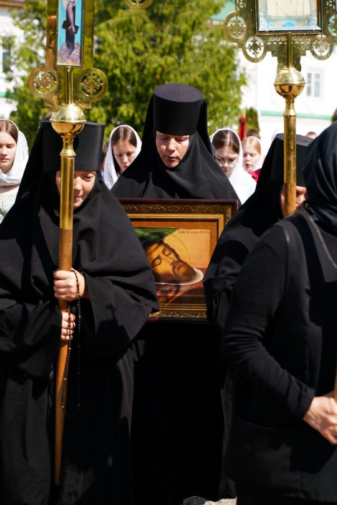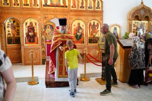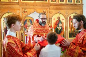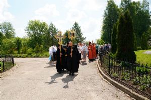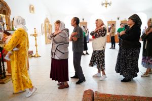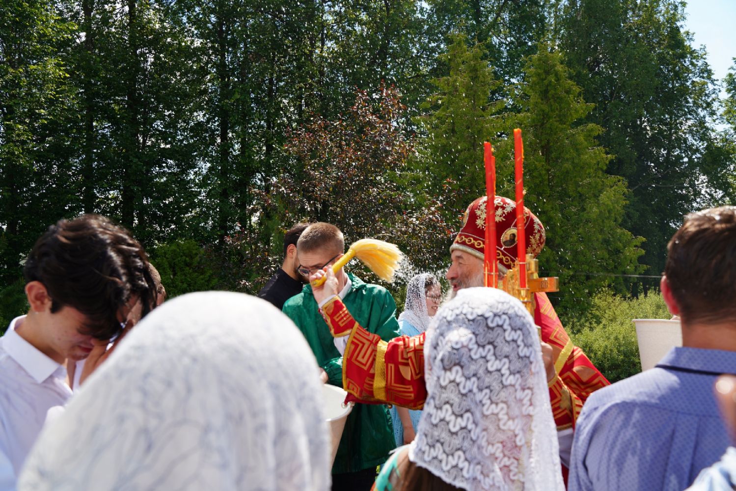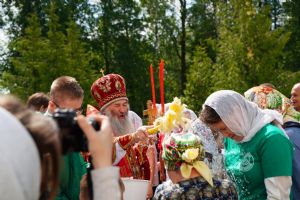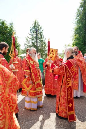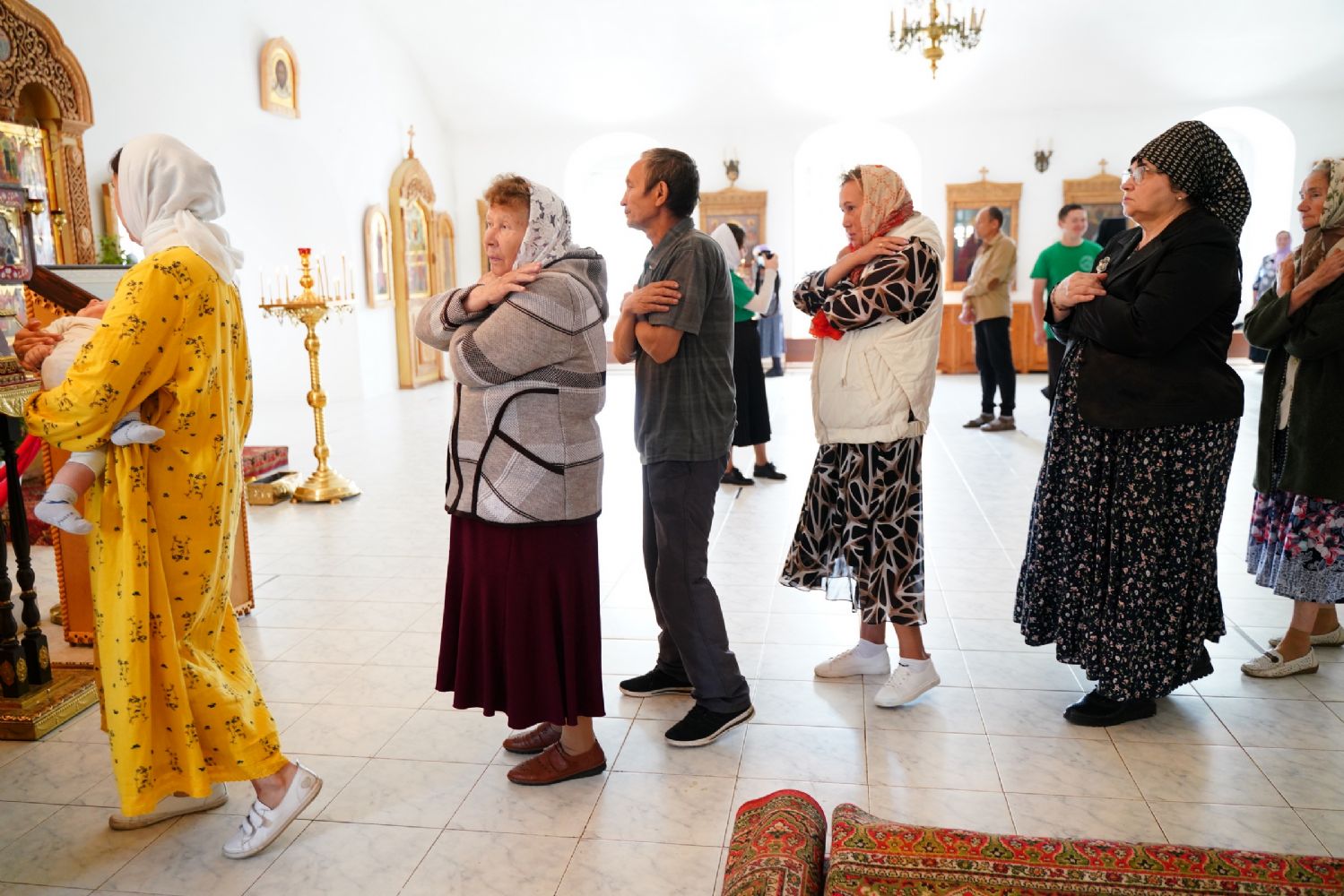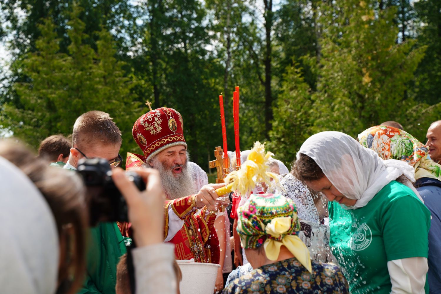 После Литургии прошел крестный ход вокруг храма со чтением Евангелия и кроплением святой водой.