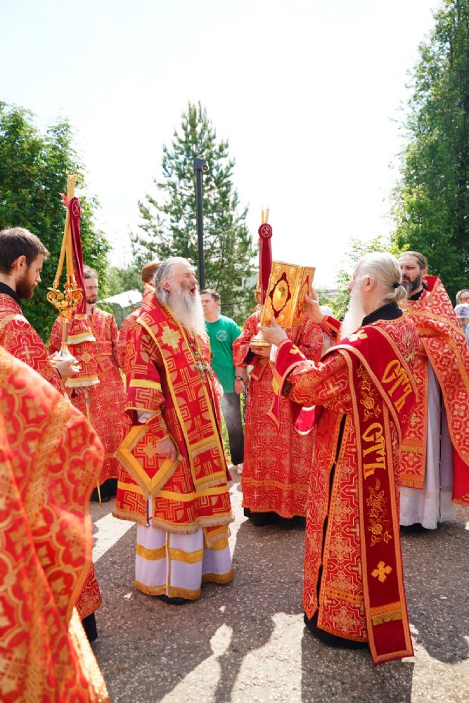 По возвращении в храм митрополит Иоанн обратился к собравшимся с архипастырским словом, поздравив всех с престольным праздником.