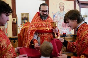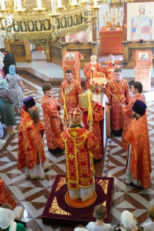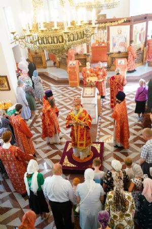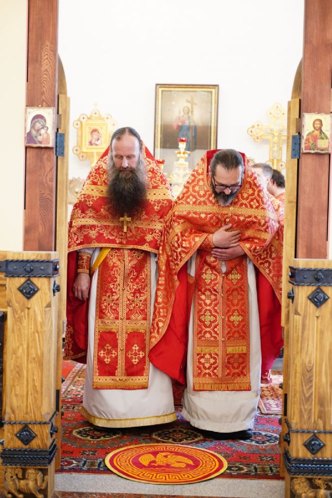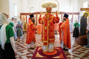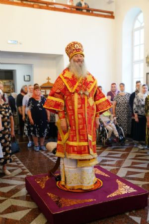 Архипастырю сослужили секретарь Йошкар-Олинского епархиального управления иерей Димитрий Дьяков, настоятель храма иерей Михаил Горицкий и протодиакон Михаил Козловский. Песнопения исполнял малый состав хора «Благовест» под управлением регента Татьяны Черновой.