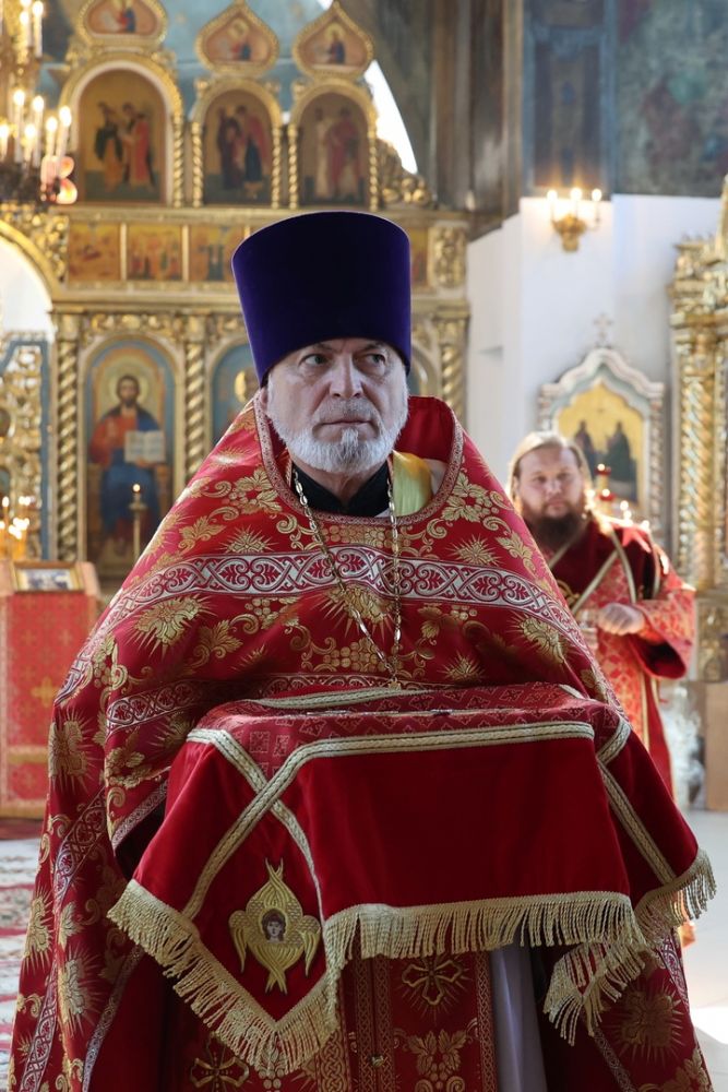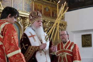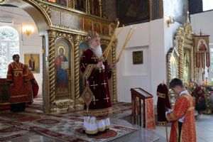 Его Преосвященству сослужили клирики кафедрального собора иерей Иоанн Лапшинский, диакон Иоанн Захаров, диакон Герман Михайлов. Песнопения исполнял архиерейский хор под управлением Любови Михеевой.