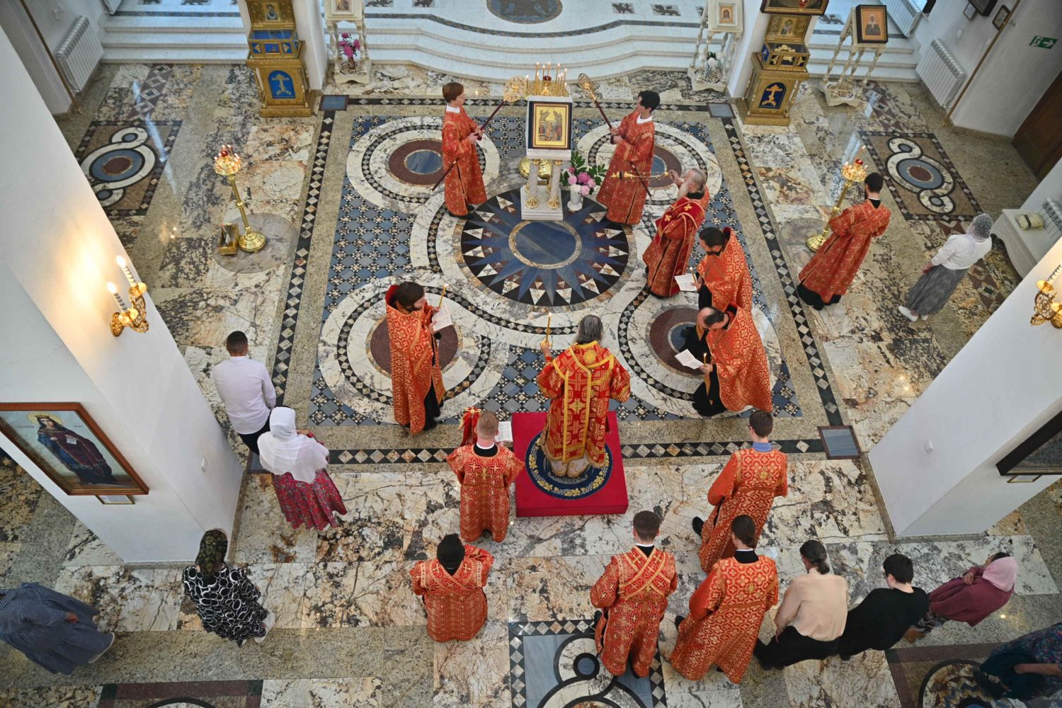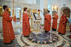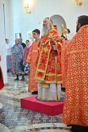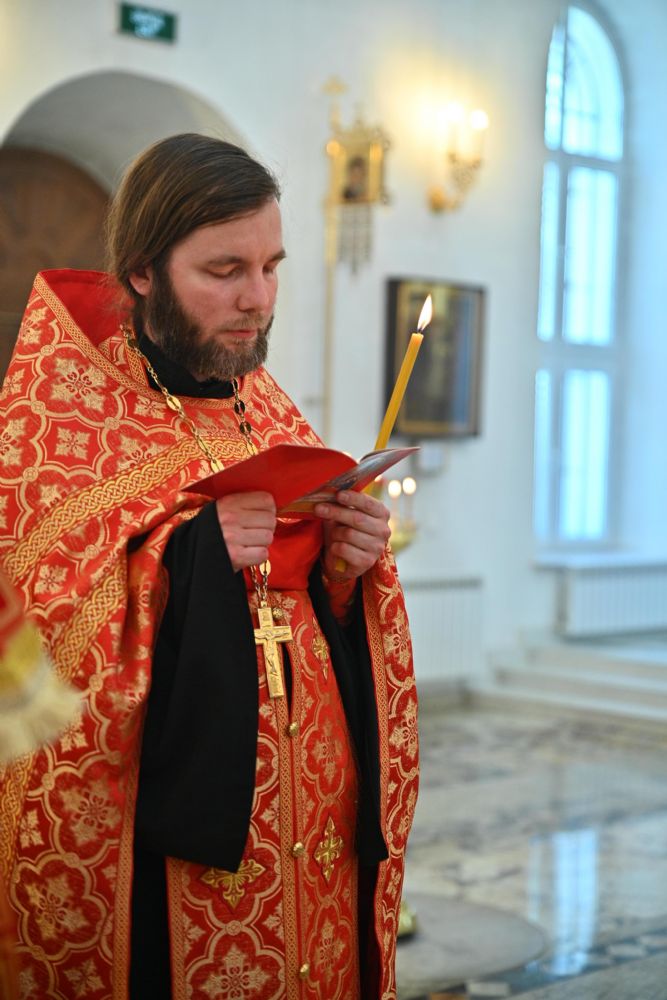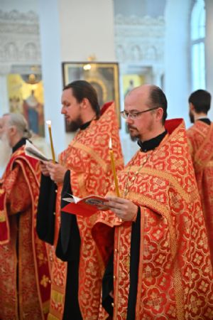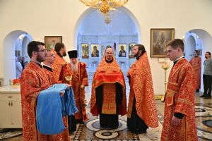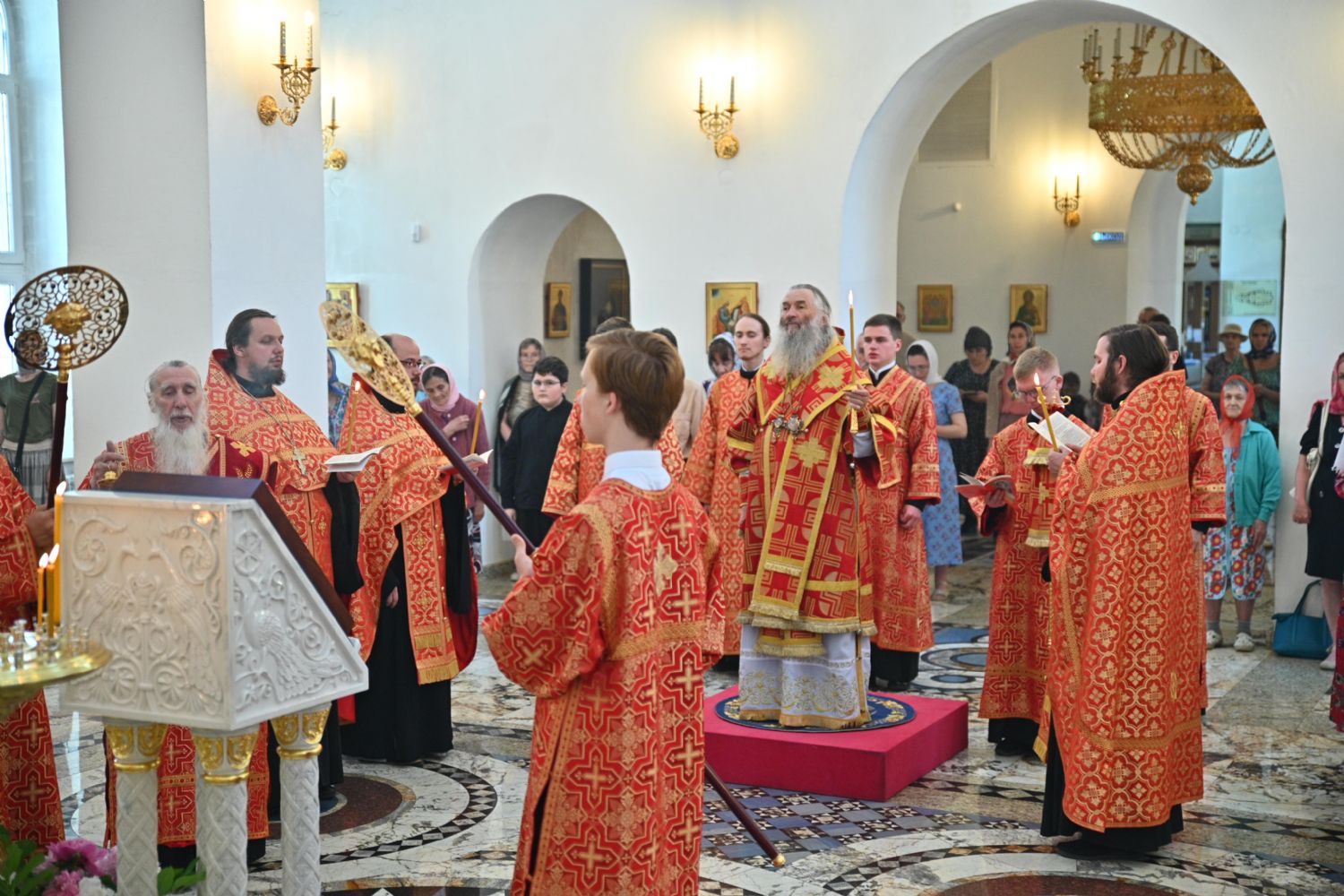 Владыке сослужили настоятель храма иерей Алексий Михеев, клирики храма иереи Алексий Кирюшкин, Игорь Коваль, а также протодиакон Михаил Козловский. Песнопения исполнял хор храма под управлением Александры Ивановой.