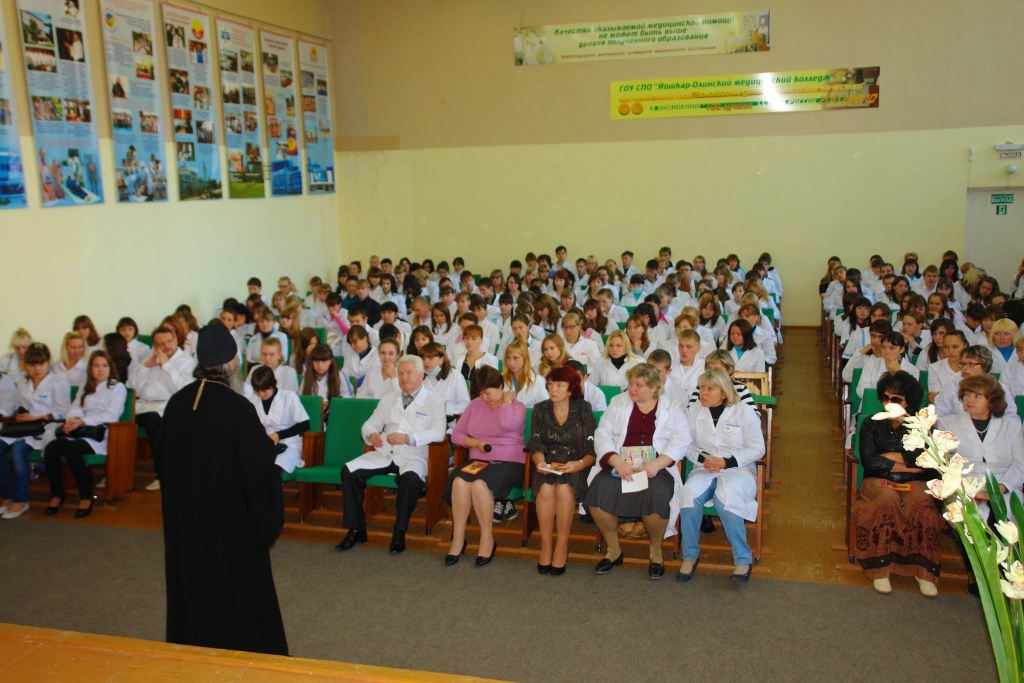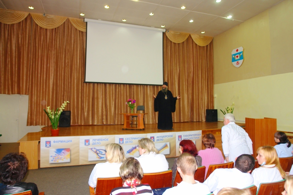 Во вторник, 20 сентября, владыка Иоанн по приглашению директора медицинского колледжа Рыжкова Леонида Викторовича выступил в актовом зале перед учащимися и преподавателями.