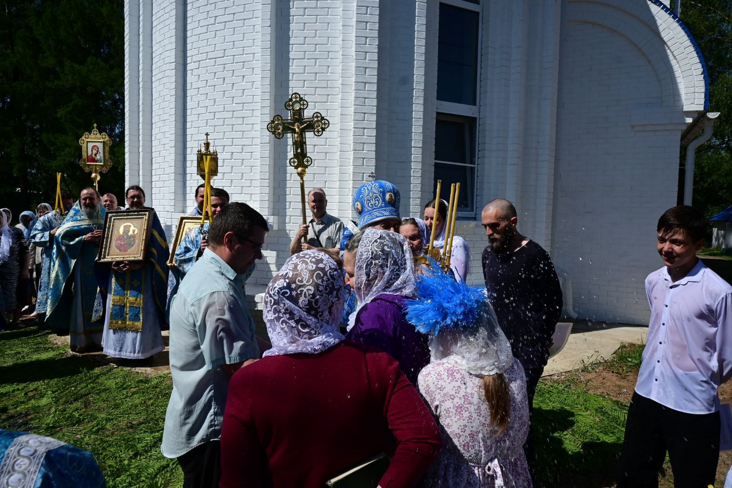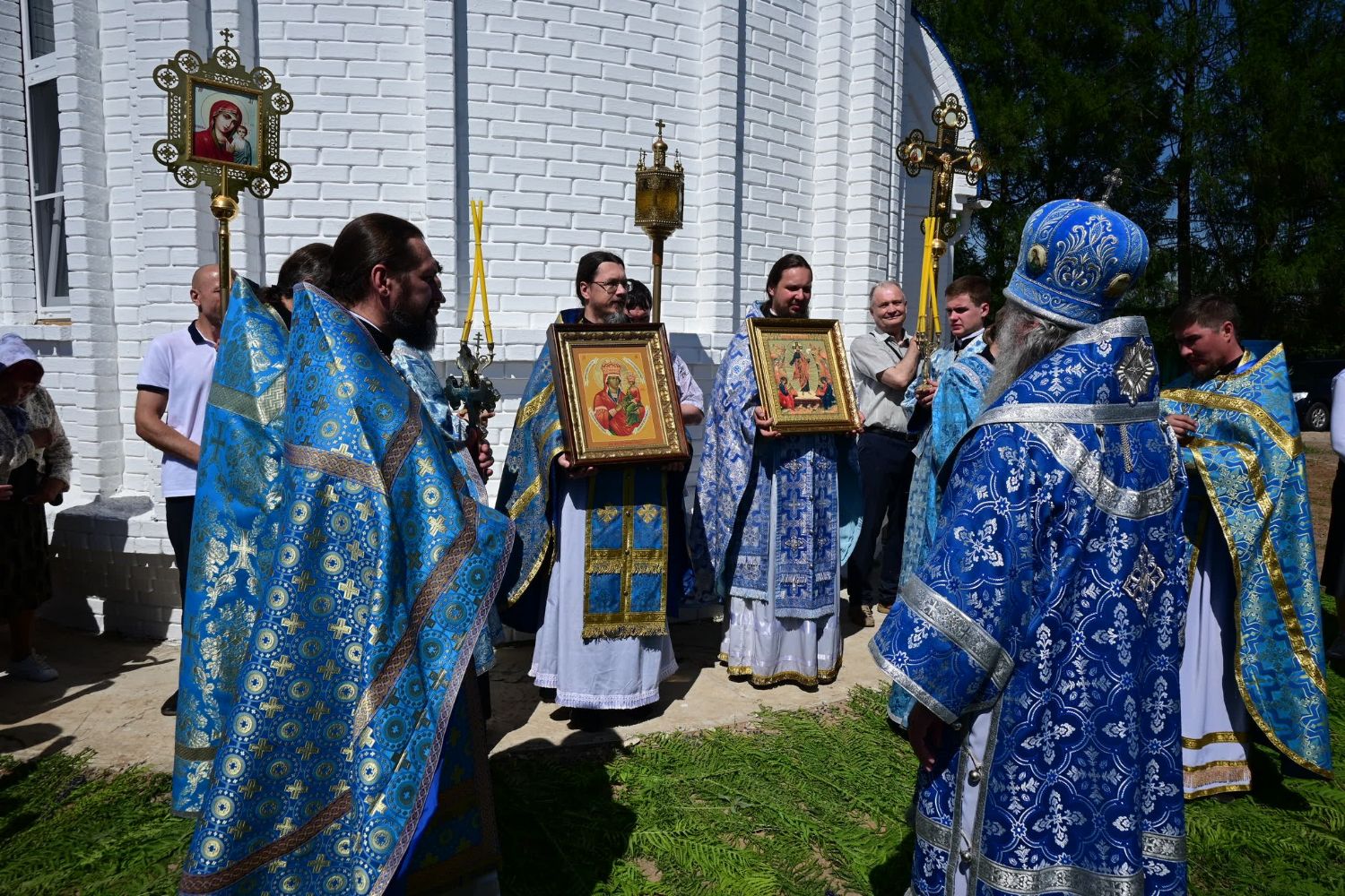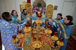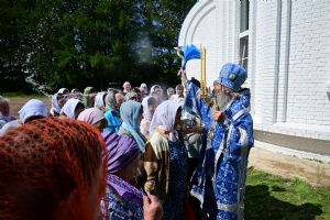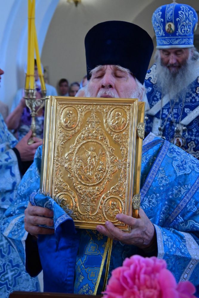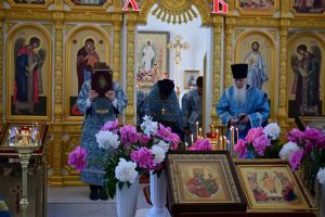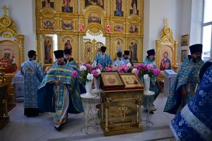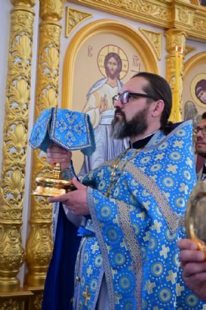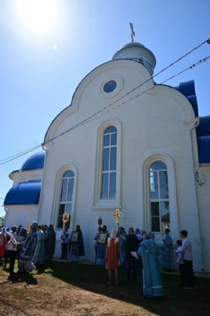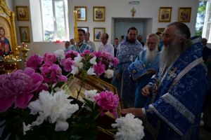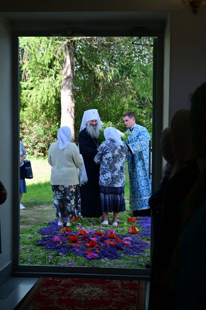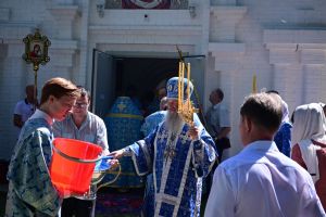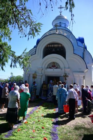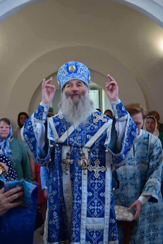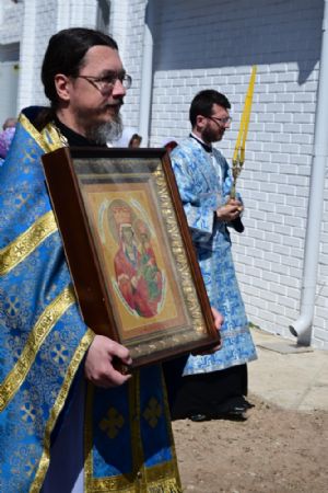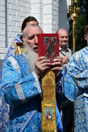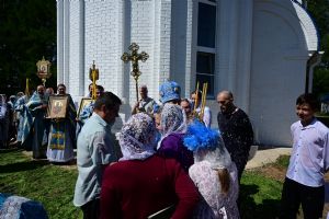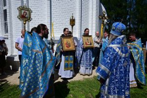 После Литургии по традиции престольных праздников прошел крестный ход вокруг храма со чтением Евангелия и кроплением святой водой. Затем митрополит Иоанн вознес молитву Пресвятой Богородице и обратился к верующим с проповедью.