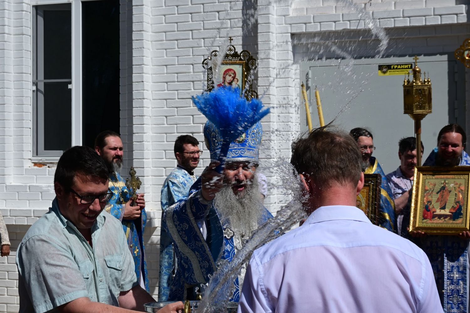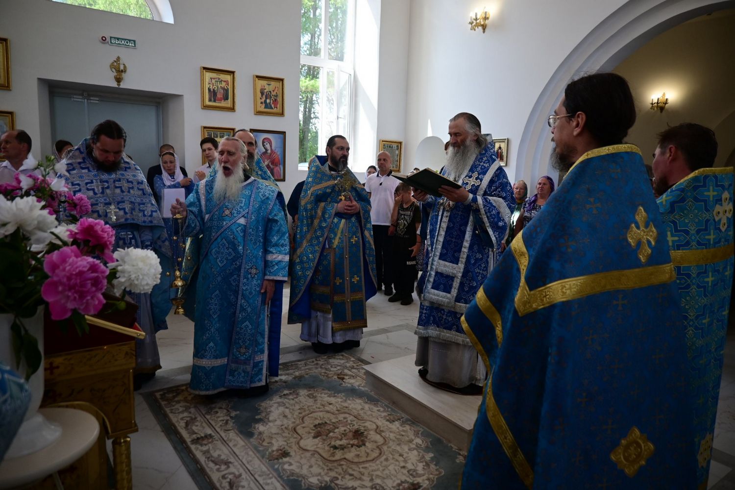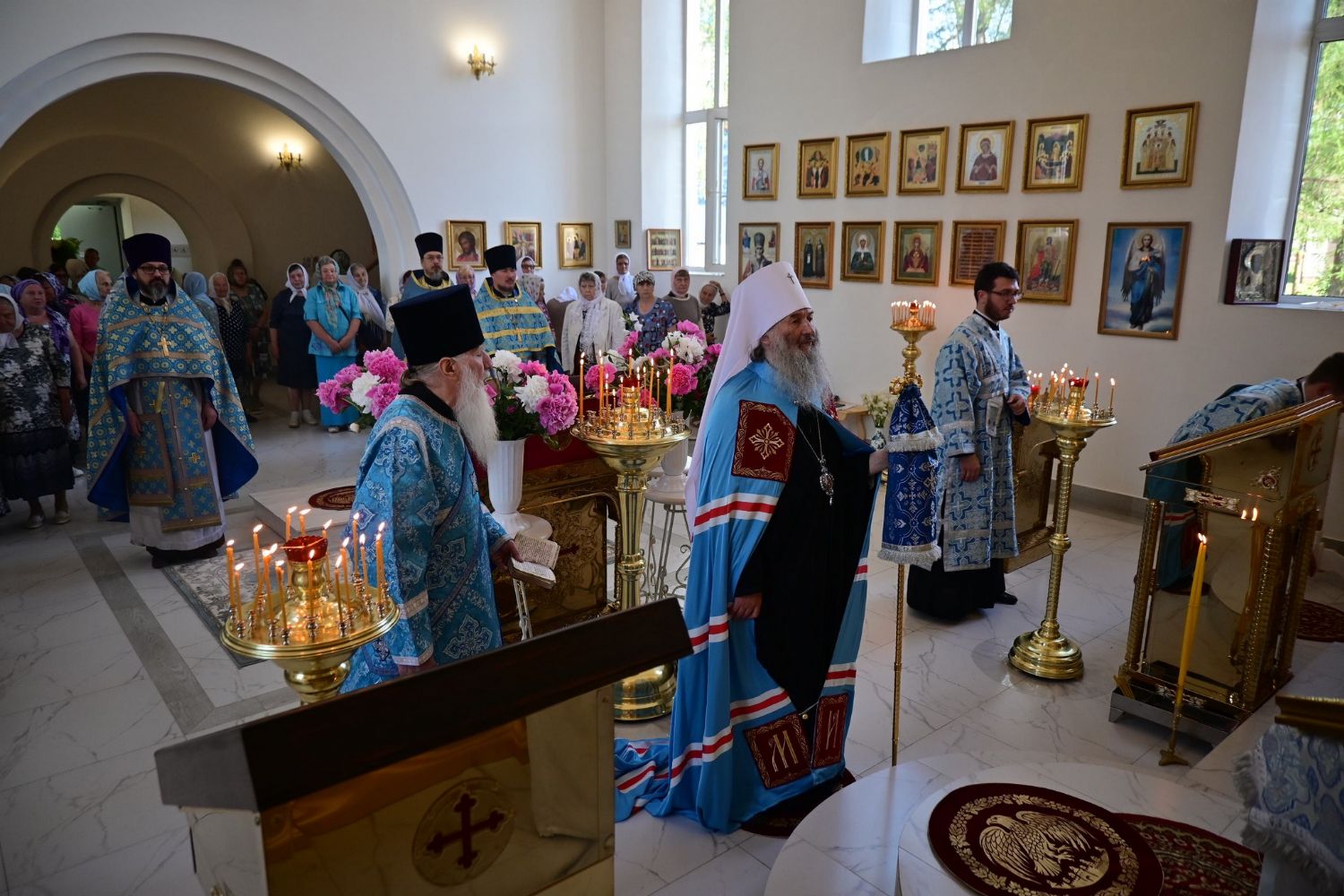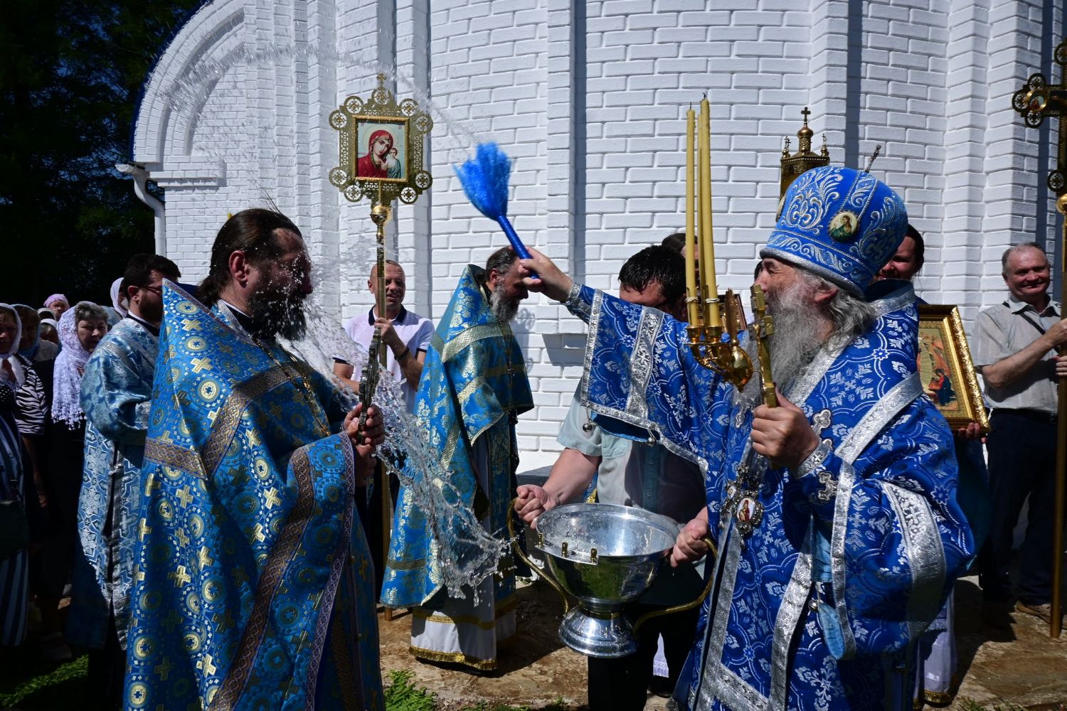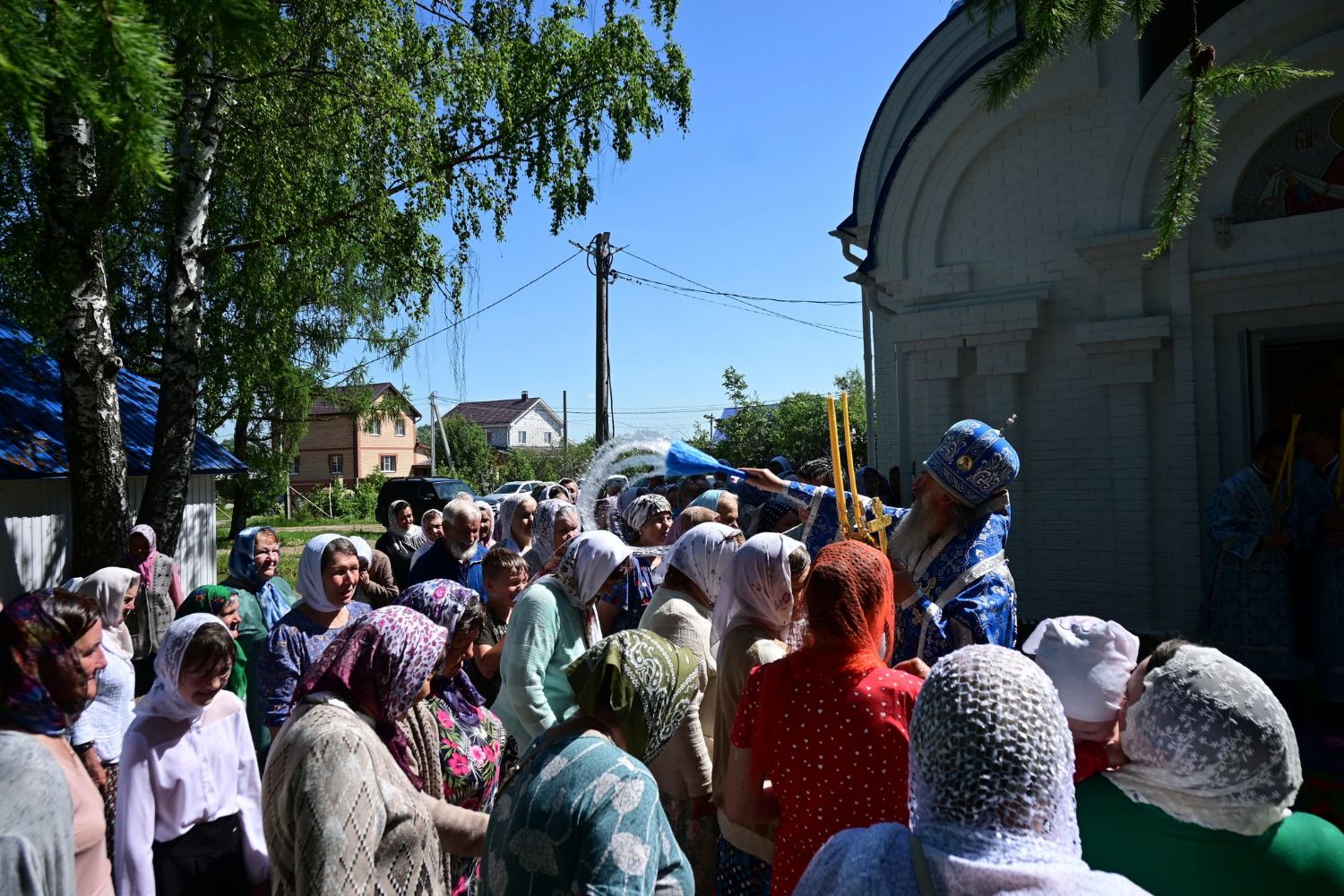 После Литургии по традиции престольных праздников прошел крестный ход вокруг храма со чтением Евангелия и кроплением святой водой. Затем митрополит Иоанн вознес молитву Пресвятой Богородице и обратился к верующим с проповедью.