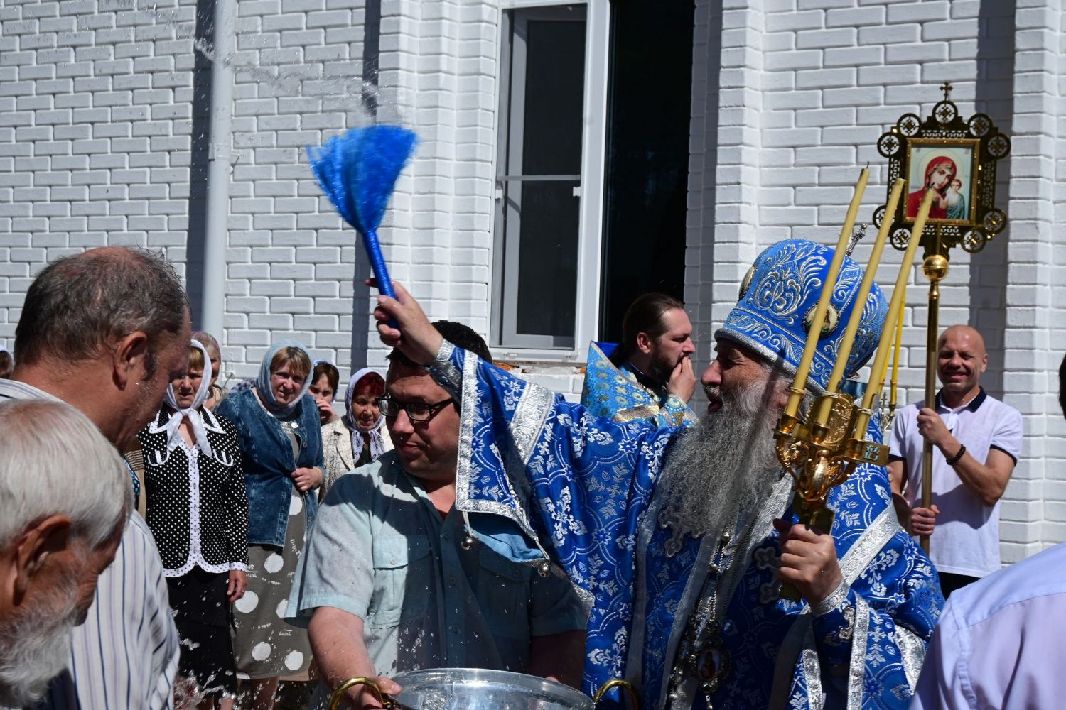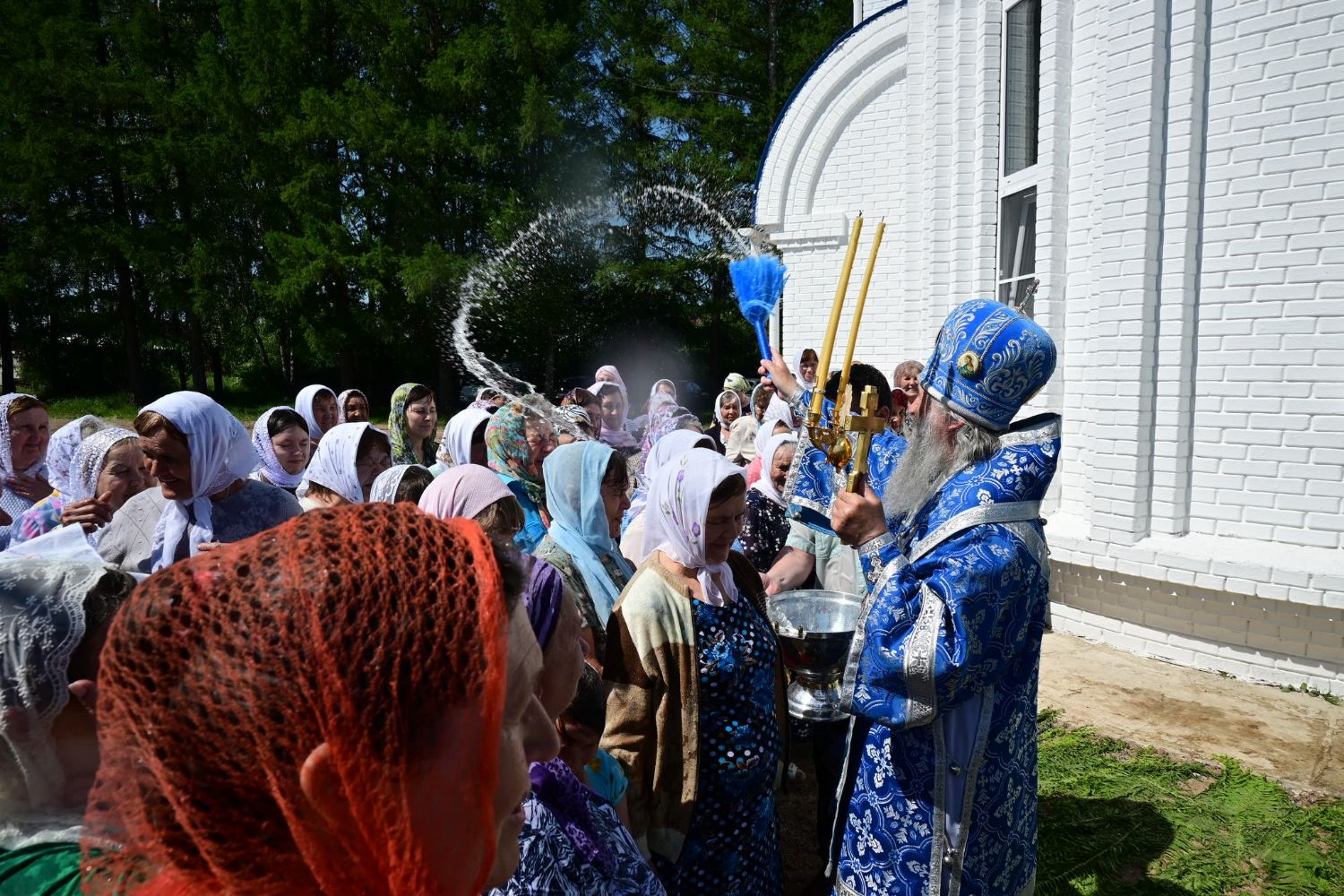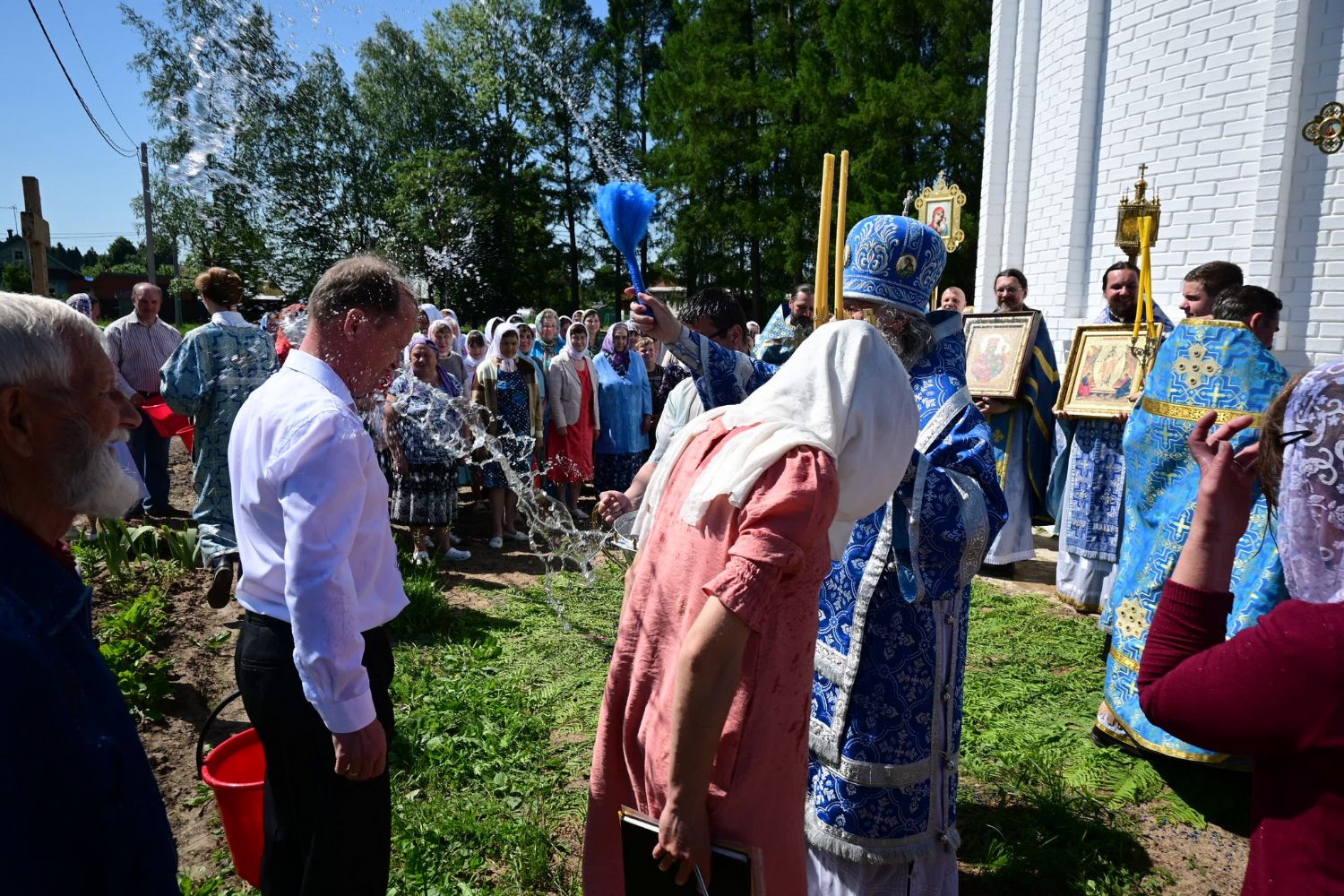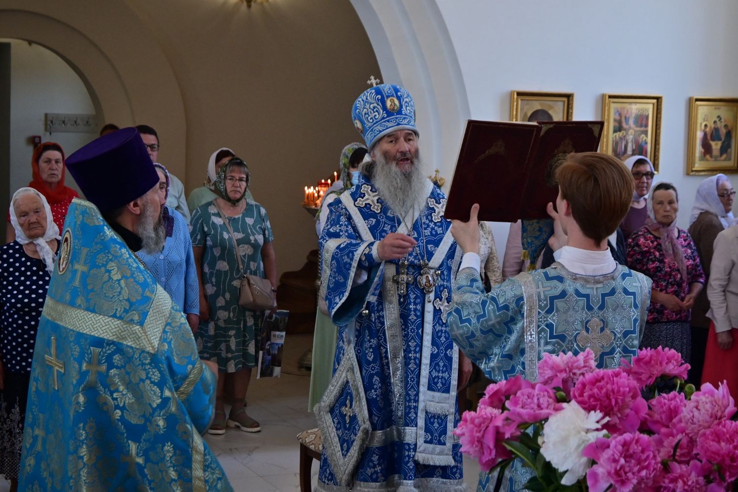 После Литургии по традиции престольных праздников прошел крестный ход вокруг храма со чтением Евангелия и кроплением святой водой. Затем митрополит Иоанн вознес молитву Пресвятой Богородице и обратился к верующим с проповедью.