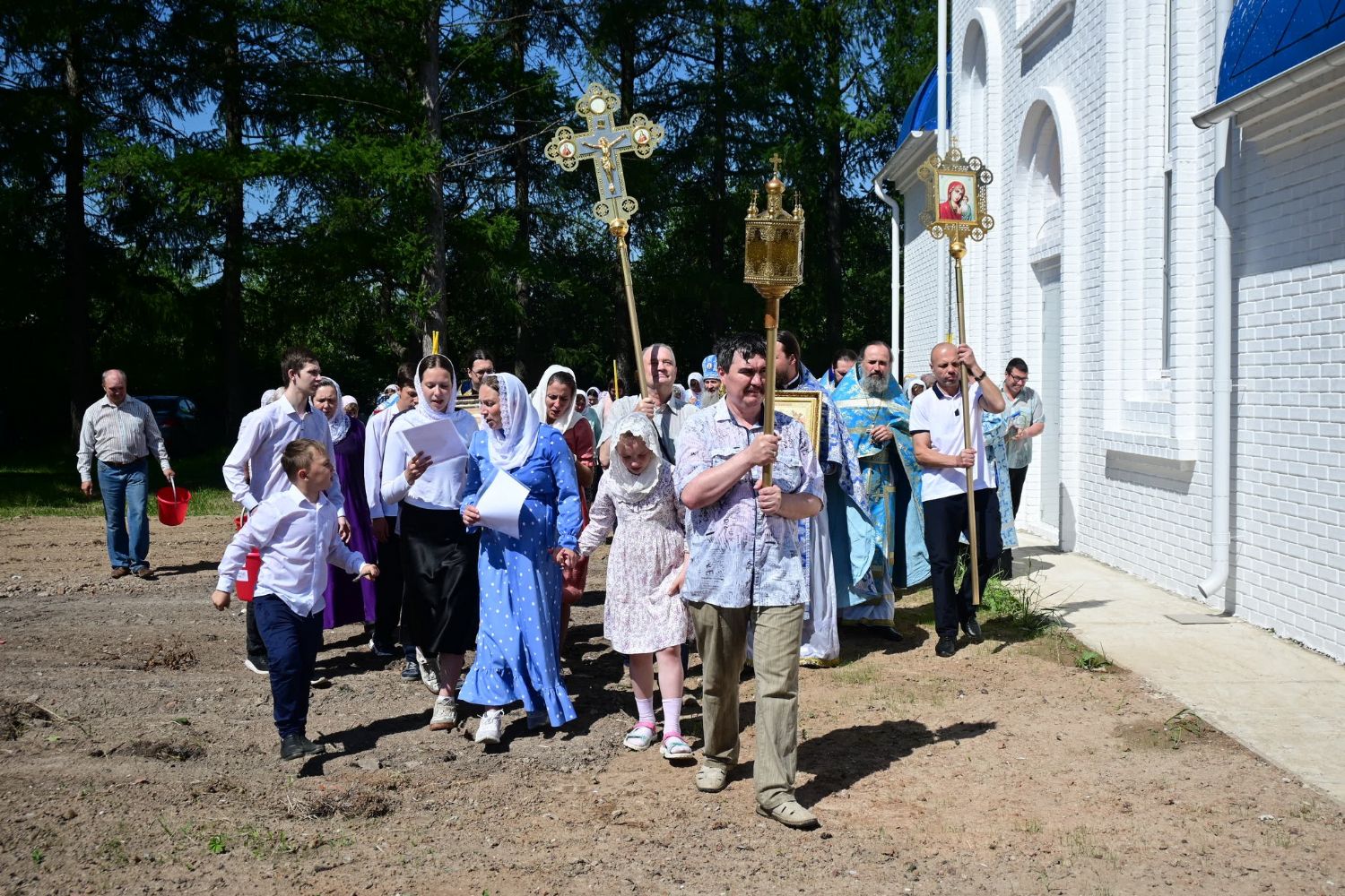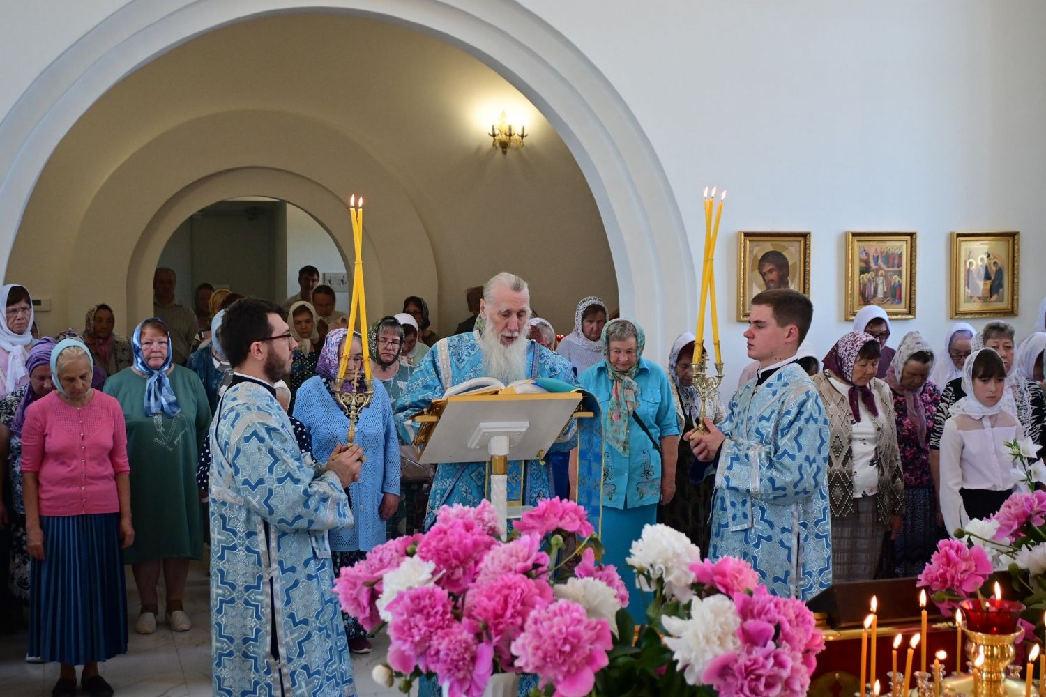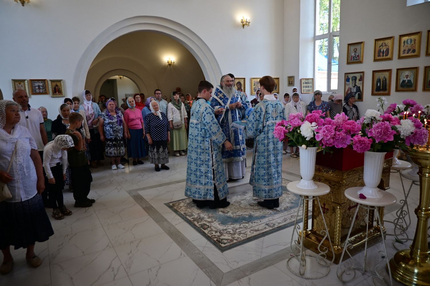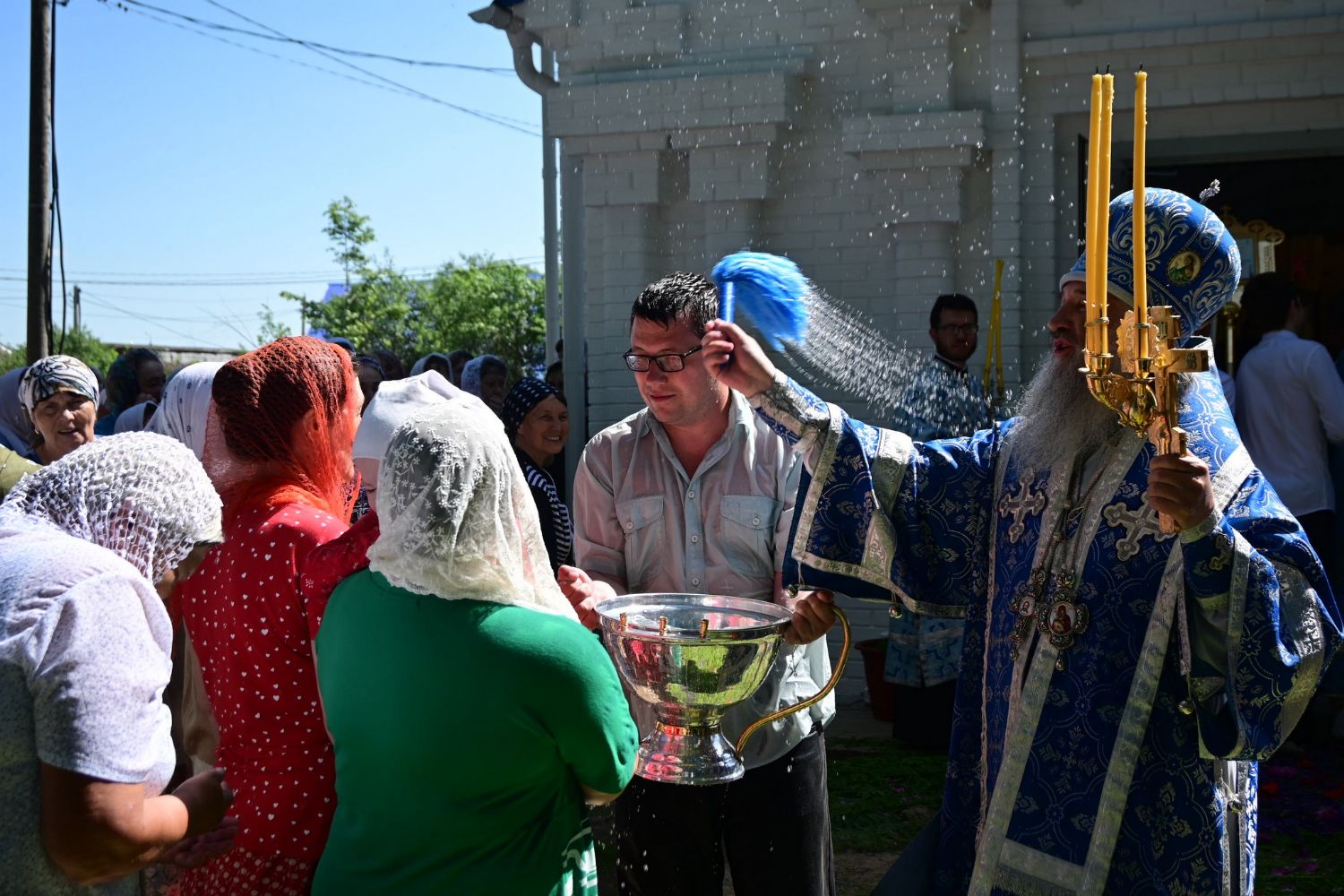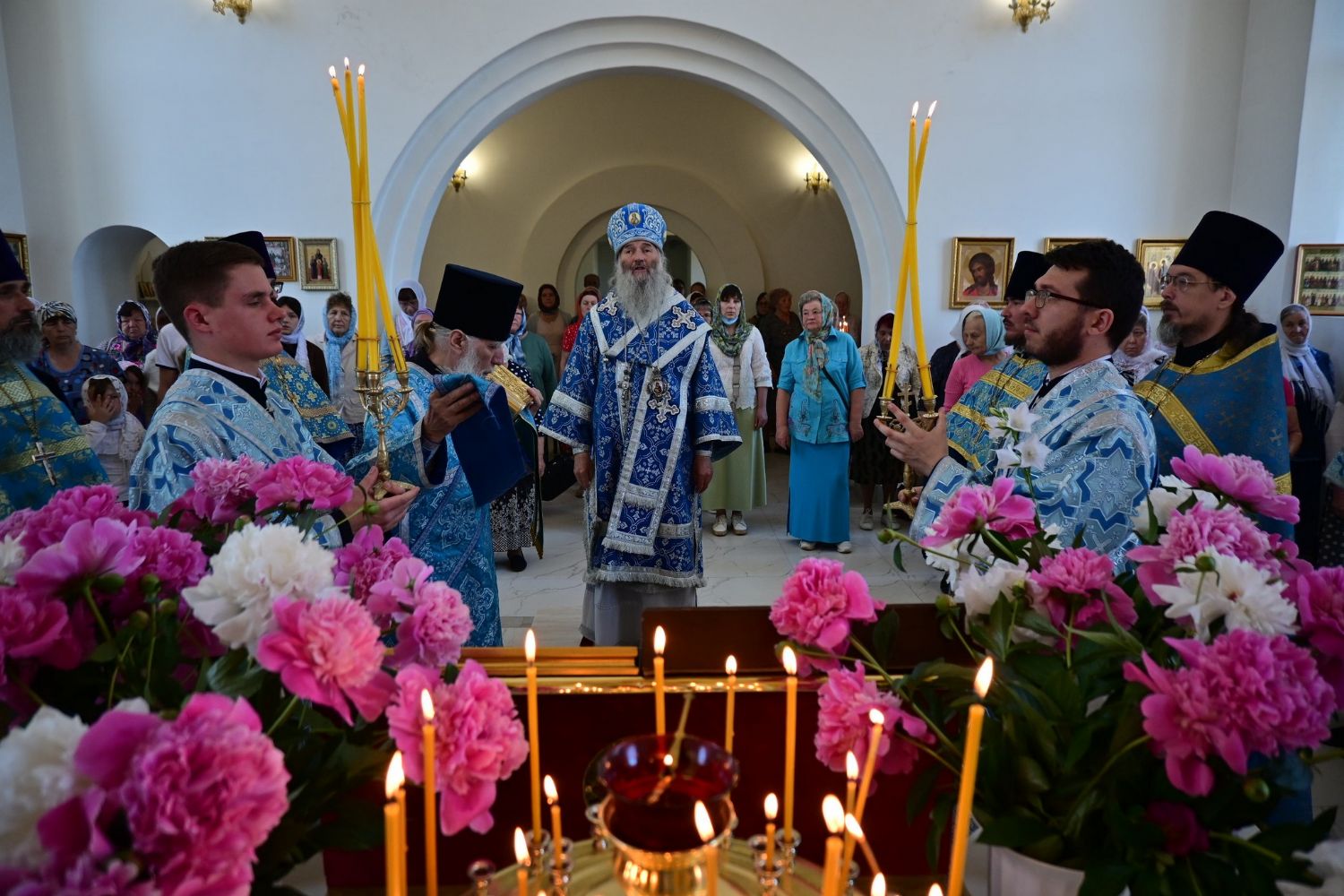 После Литургии по традиции престольных праздников прошел крестный ход вокруг храма со чтением Евангелия и кроплением святой водой. Затем митрополит Иоанн вознес молитву Пресвятой Богородице и обратился к верующим с проповедью.