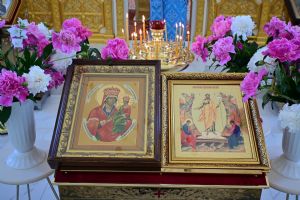 «Христос Воскресе! Неумолкаемо звучит этот ангельский благовест в святые пасхальные дни, прославляя Победителя смерти – Спасителя нашего Господа Иисуса Христа, Который Своим Воскресением всех нас совоскресил для вечной духовной радости. И в эти святые дни мы обращаем свой молитвенный взор к Преблагословенной нашей Владычице Богородице и Приснодеве Марии – той, Которая распиналась сердцем у Креста со Своим Сладчайшим Сыном, и знает наши скорби, недуги и болезни. К Которой первой явился Воскресший Христос, даровав ту несказанную духовную радость, которую Она в эти святые дни разделяет со всеми нами.