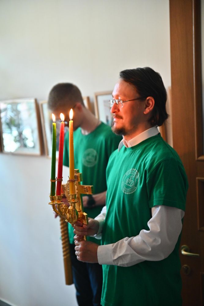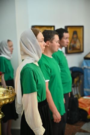 Владыке сослужили руководитель епархиального отдела по делам молодежи иерей Никита Иванов, духовник движения иерей Никита Смирнов, руководитель движения диакон Владимир Лихачев и протодиакон Михаил Козловский. Песнопения исполнял ДоброХор под управлением регента Любови Торощиной.