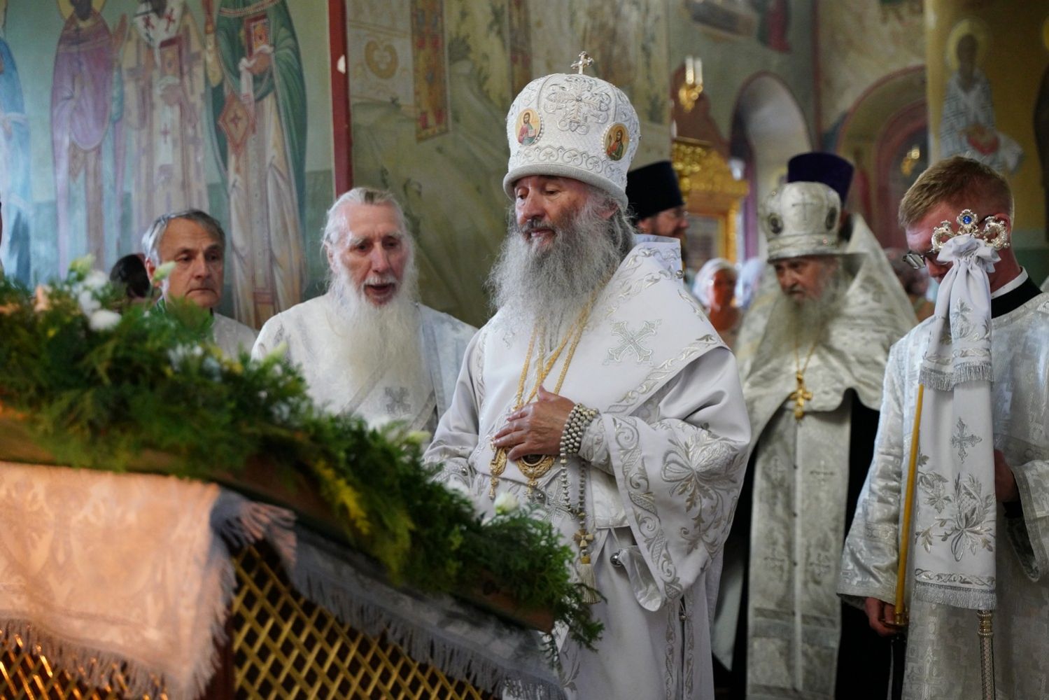 Архипастырю сослужили настоятель собора протоиерей Евгений Кутырев, благочинный Йошкар-Олинского церковного округа протоиерей Андрей Норкин, клирики собора иерей Владимир Камышев, иерей Олег Большаков, иерей Димитрий Копылов и диакон Владимир Лихачев, а также протодиакон Михаил Козловский. Песнопения исполнял хор собора под управлением Ангелины Бабиной.
