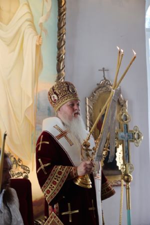 Архипастырю сослужили клирики собора, песнопения исполнял архиерейский хор под управлением Любови Михеевой.