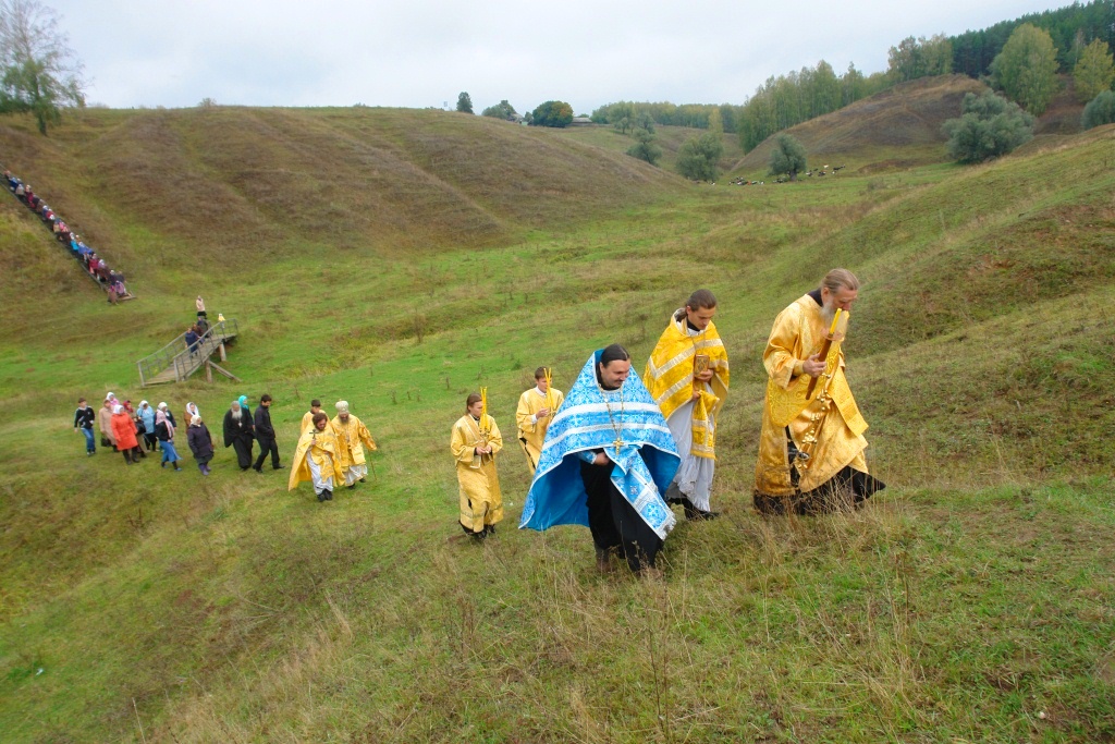 Как обычно в конце Божественной литургии был совершен водосвятный молебен на источнике освященном в честь иконы Божией Матери Казанская, который расположен на небольшом расстоянии от храма.