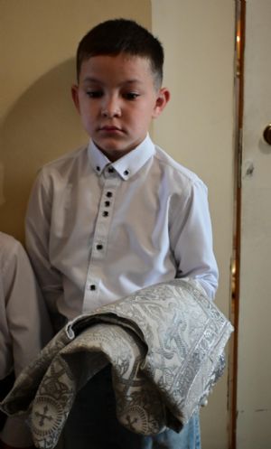Его Высокопреосвященству сослужили секретарь Йошкар-Олинского епархиального управления иерей Димитрий Дьяков, настоятель храма иерей Василий Яшмолкин и протодиакон Михаил Козловский Песнопения исполнял детско-юношеский хор «Благовест» под управлением регента Татьяны Черновой.