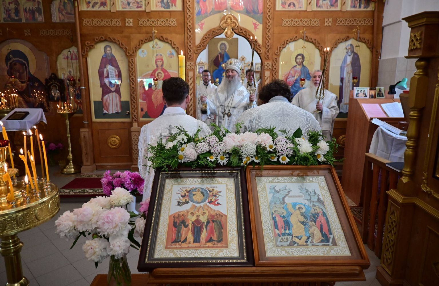 После Литургии прошел крестный ход вокруг храма со чтением Евангелия и кроплением святой водой. Затем владыка обратился к собравшимся с архипастырским словом, напомнив исторические события Первого Вселенского Собора, который в 325 году собрал в Никее 318 отцов Церкви, среди которых были Афанасий Великий, Александр Александрийский, Спиридон Тримифунтский, Николай Чудотворец, Василий Великий и многие другие исповедники веры Христовой, претерпевшие гонения и страдания.