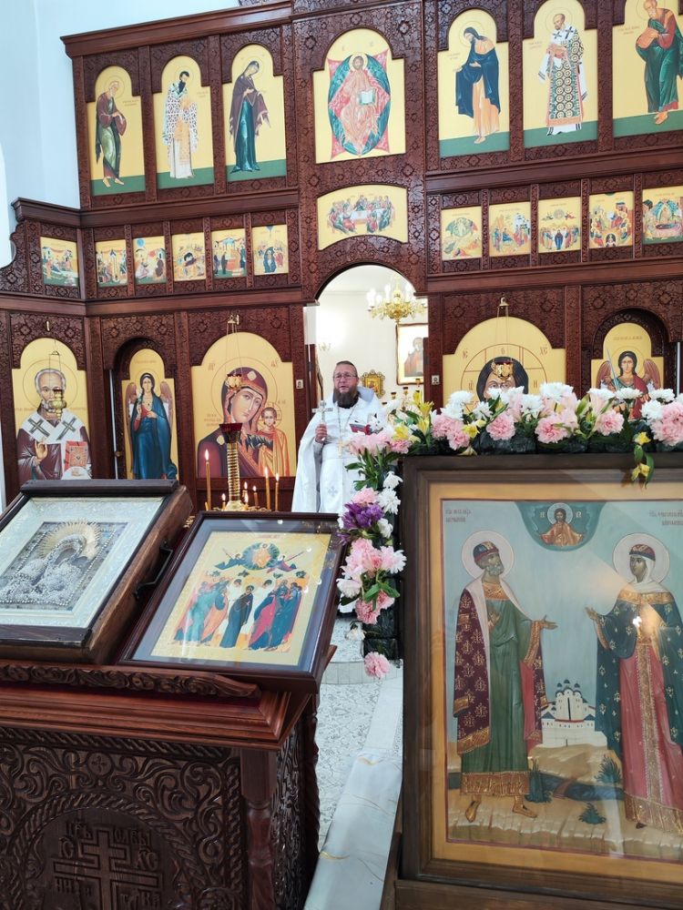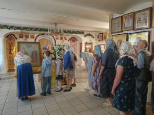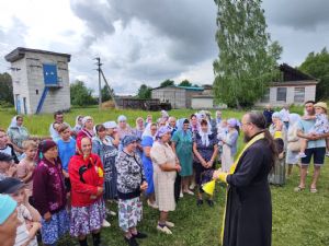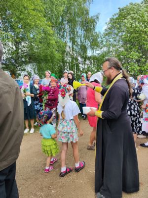 19 июня в Петропавловском храме с. Юдедур Куженерского района, куда накануне крестным ходом были принесены Седмиезерная икона Божией Матери и икона святых благоверных князей Петра и Февронии, настоятель храма иерей Матфей Сапаев совершил Божественную литургию.