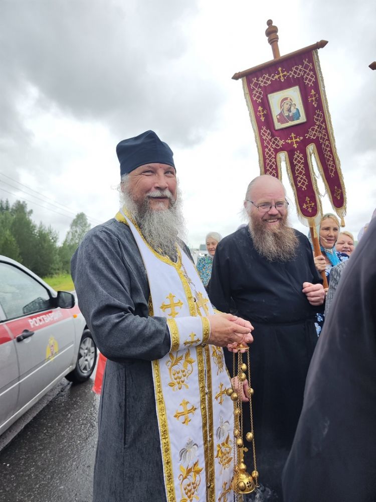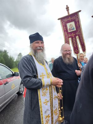 На подходе к Куженеру крестный ход с Седмиезерной иконой Божией Матери и иконой свв. Петра и Февронии встретился с крестным ходом, вышедшим из самого посёлка во главе с настоятелем Свято-Никольского храма протоиереем Вячеславом Михайловым. После этого все вместе проследовали к Свято-Никольскому храму, где было совершено вечернее богослужение.